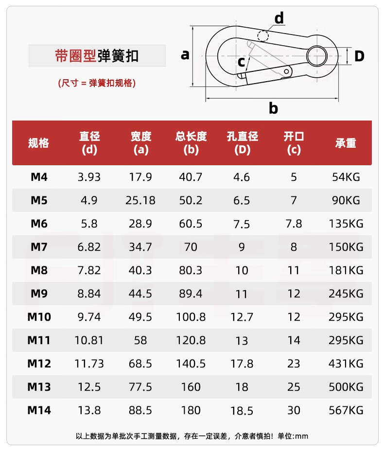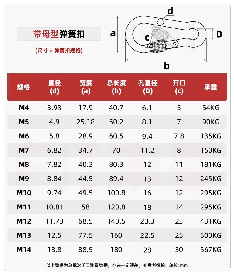 Fengji 304 stainless steel spring buckle carabiner safety buckle key chain gourd buckle nut spring belt ring buckle dog chain buckle M8 (standard type) 1 piece