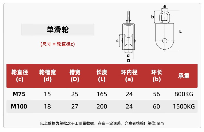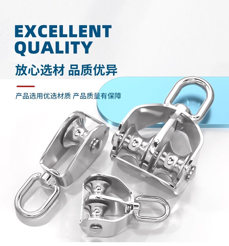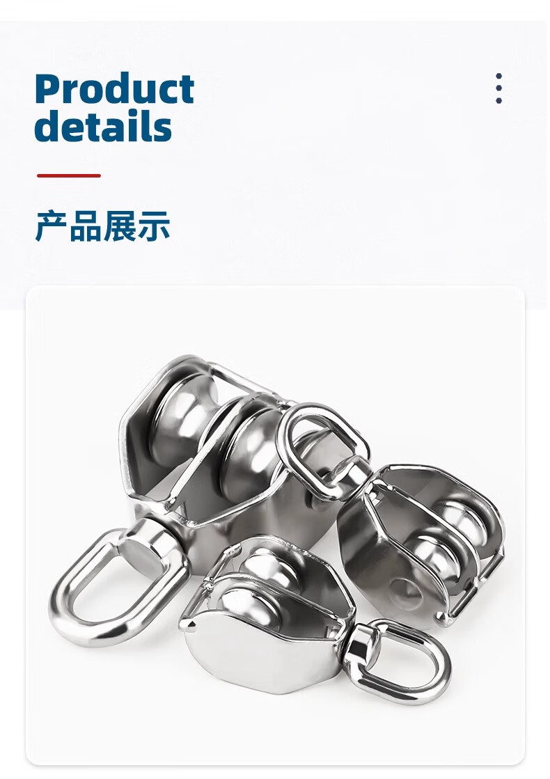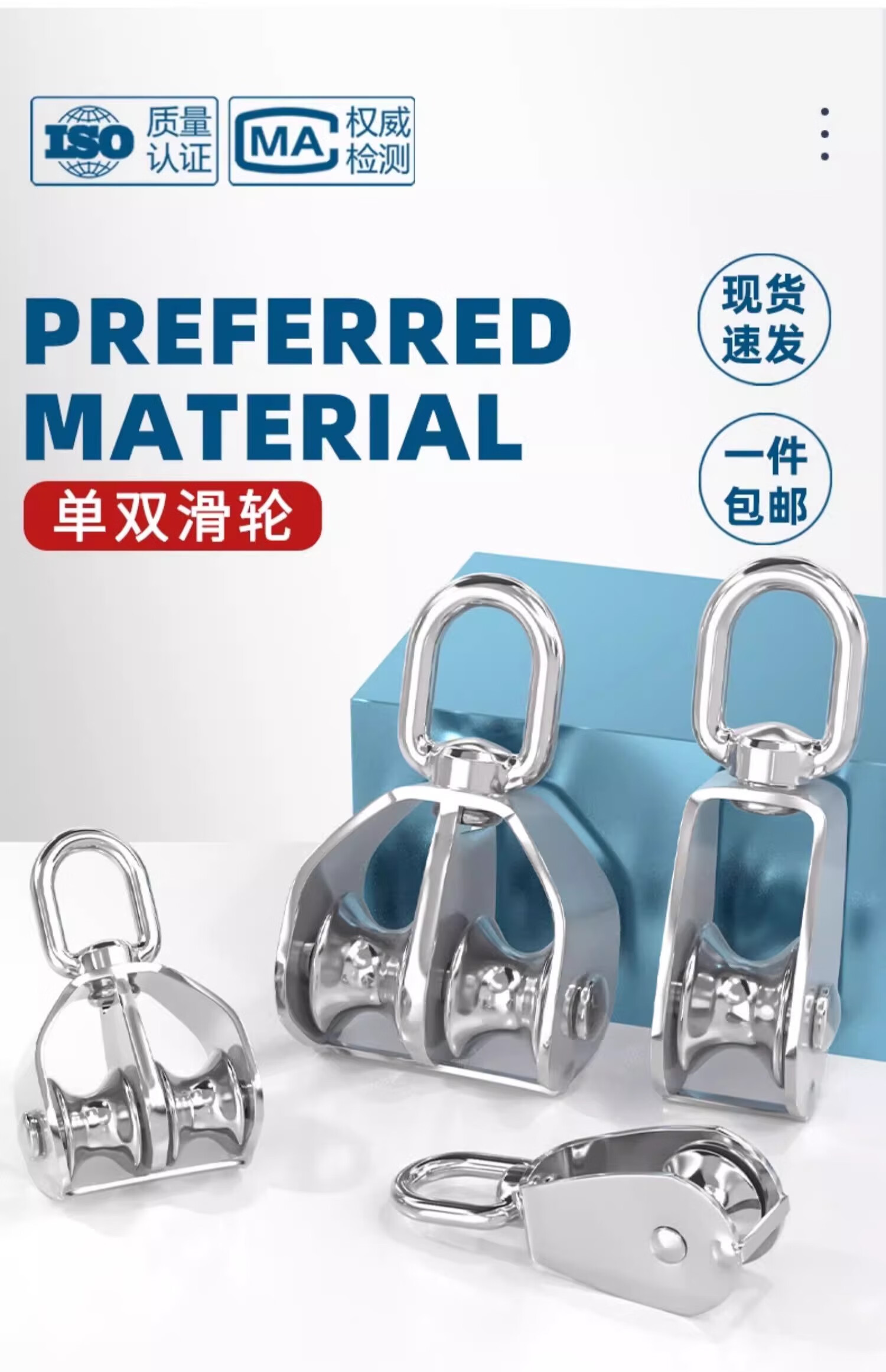 Fengji 304 stainless steel pulley, wire rope, U-shaped lifting ring, fixed pulley, single and double wheels, lifting pulley, hook, labor-saving tool, M15 single wheel