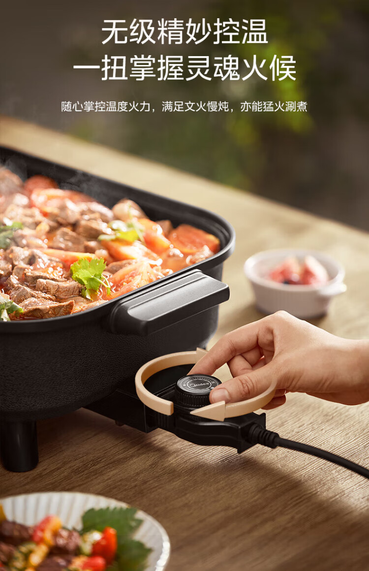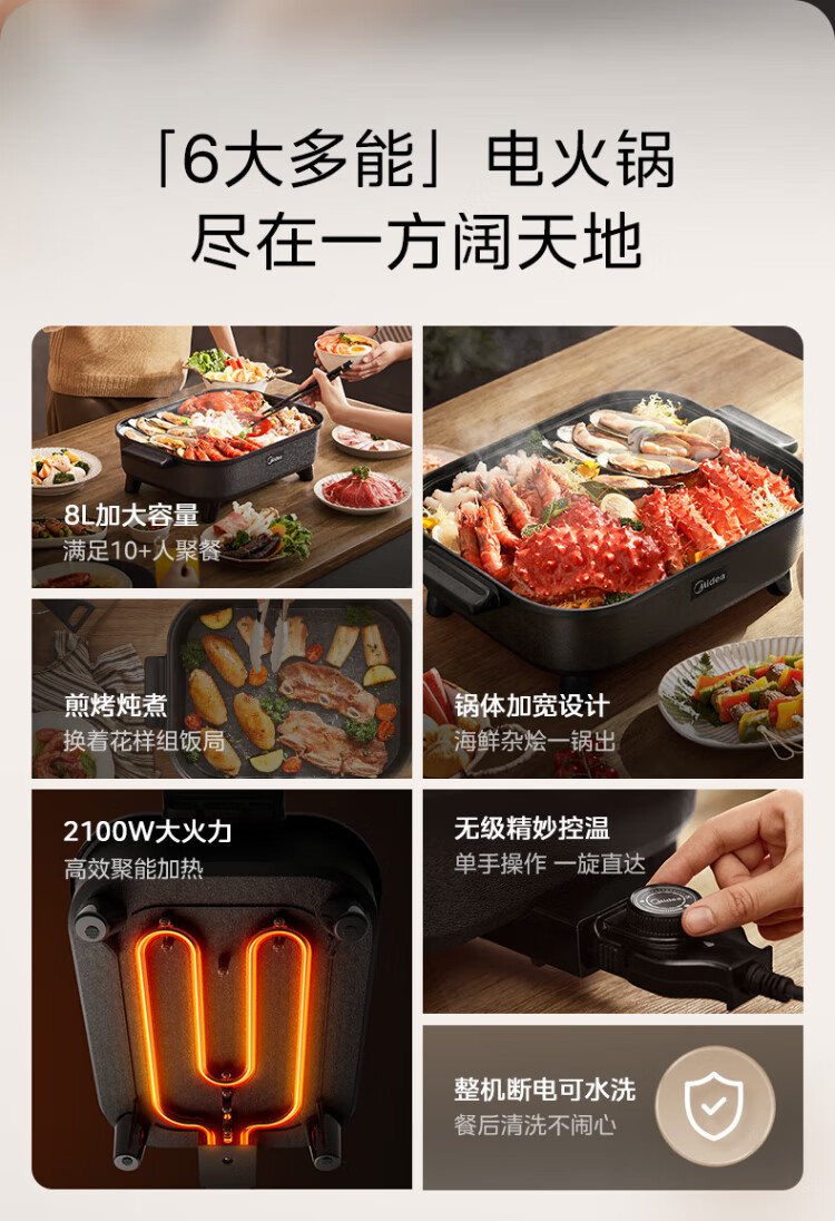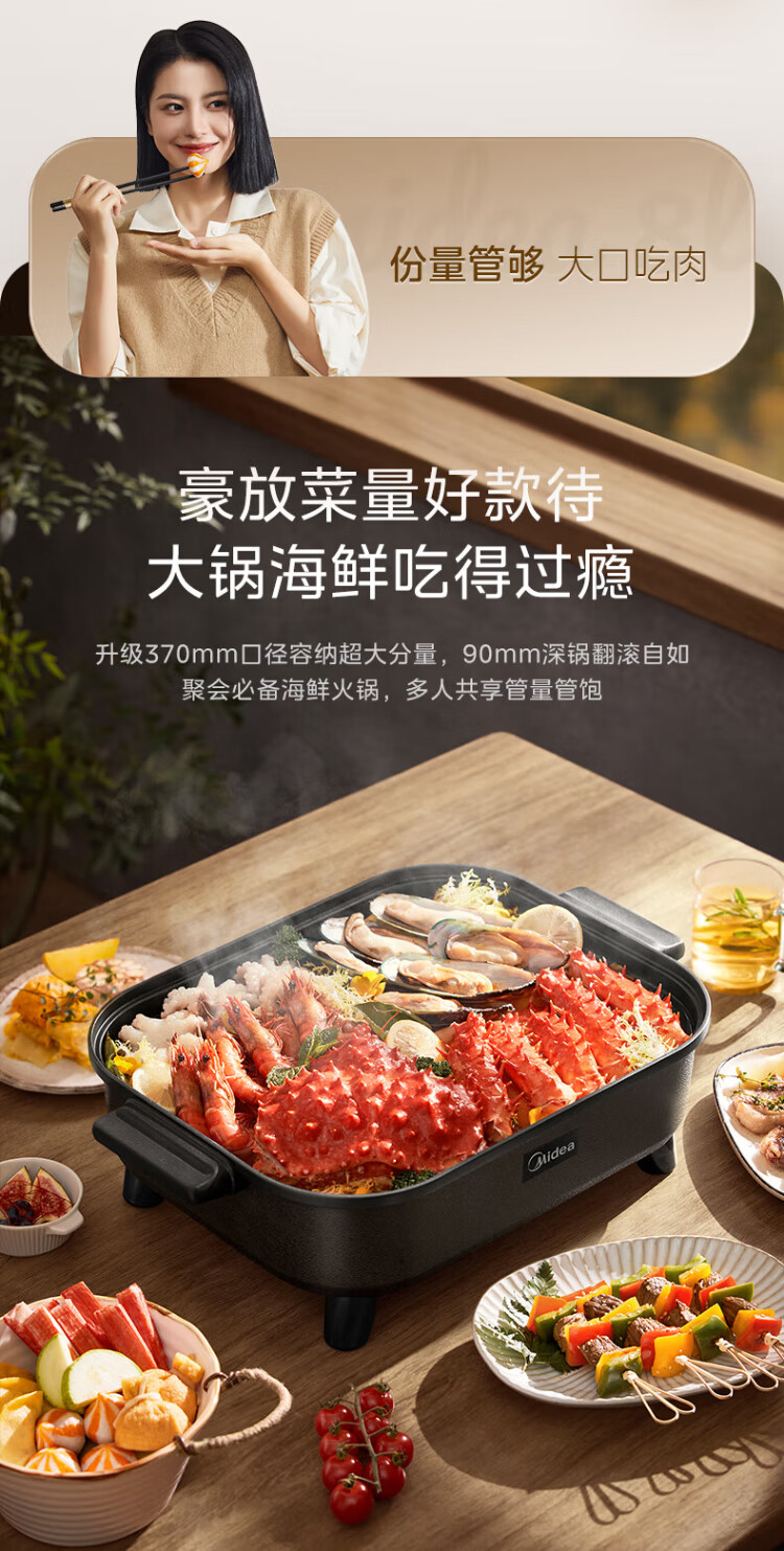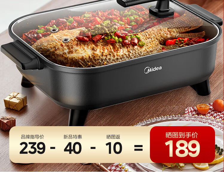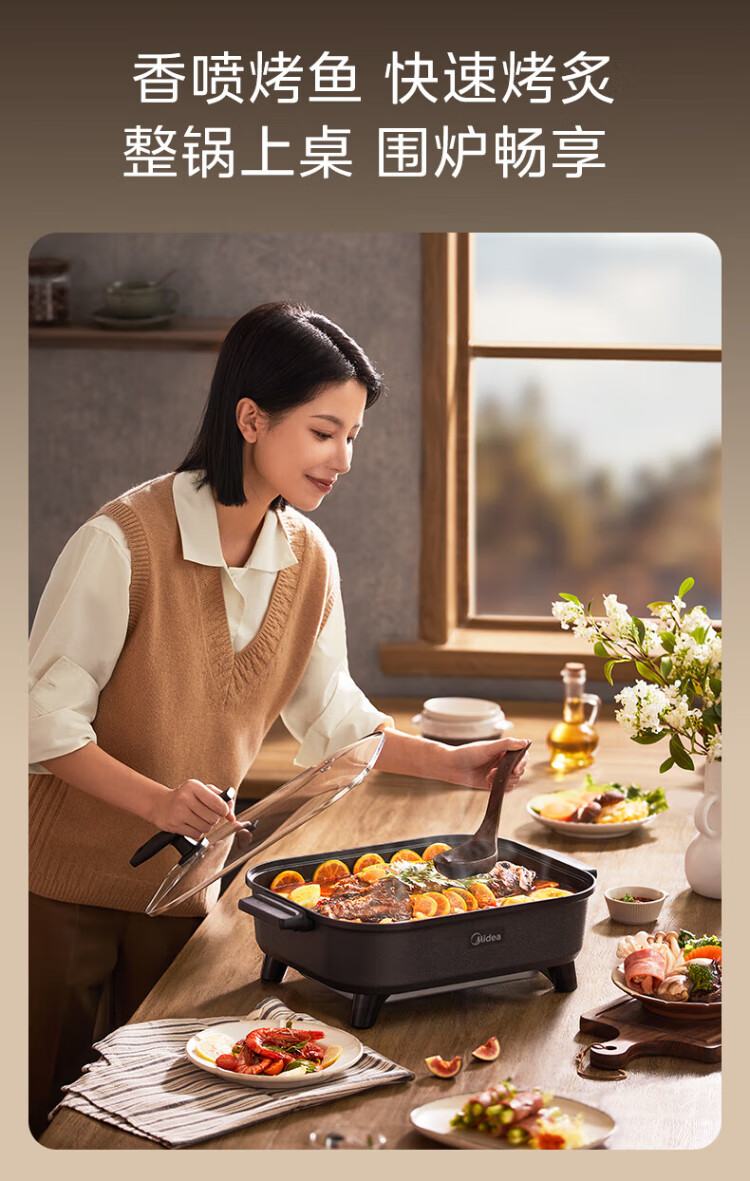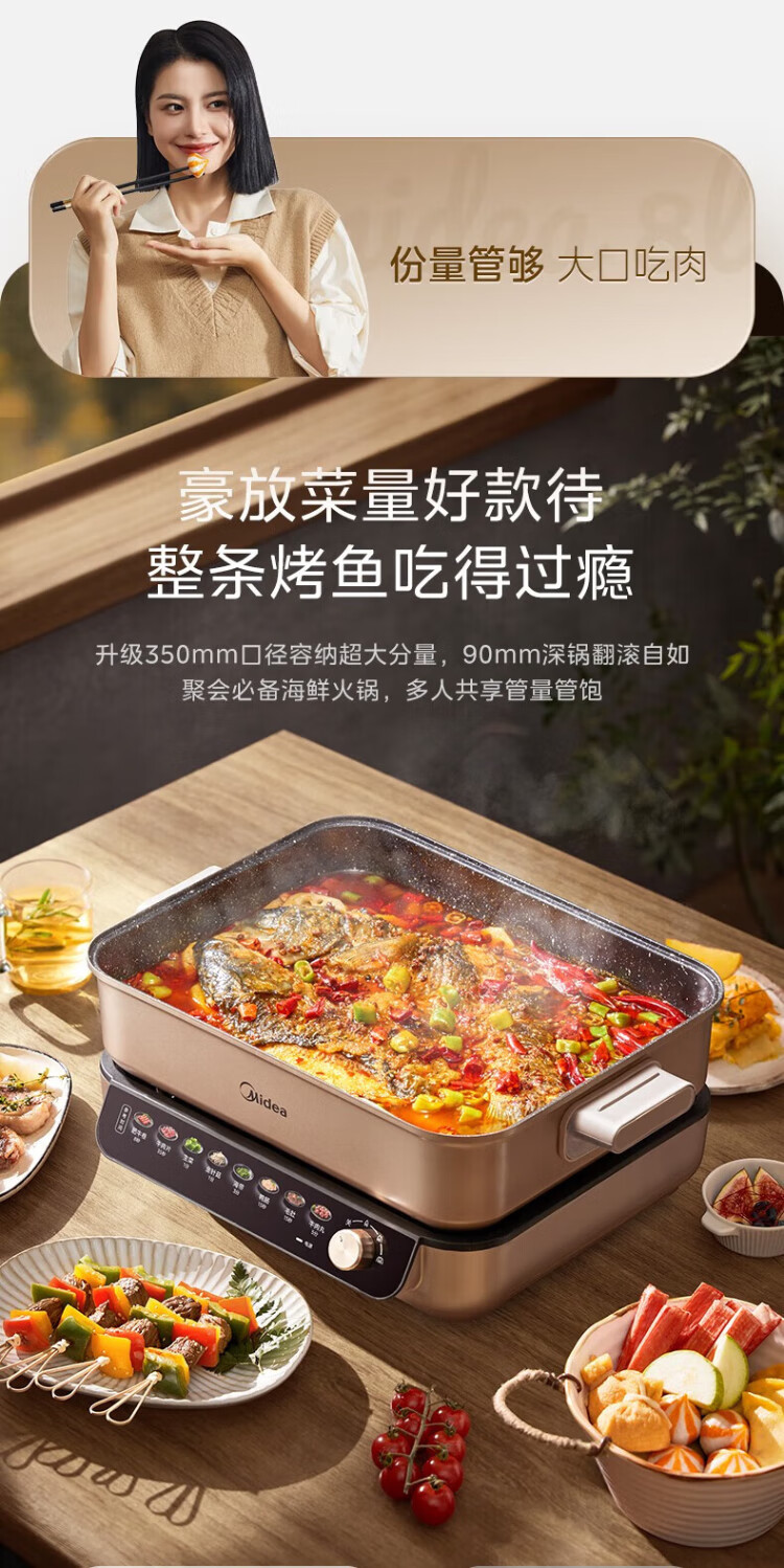 Midea electric hot pot, special pot for grilled fish, 8L large-capacity barbecue pot, multi-functional electric cooking pot for frying, roasting and shabu-shabu, two-purpose multi-purpose pot, rectangular fish stove, 8L, can hold a whole fish