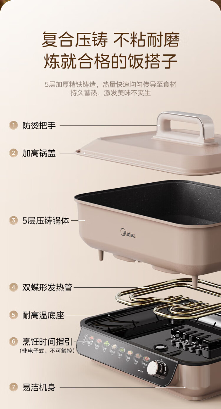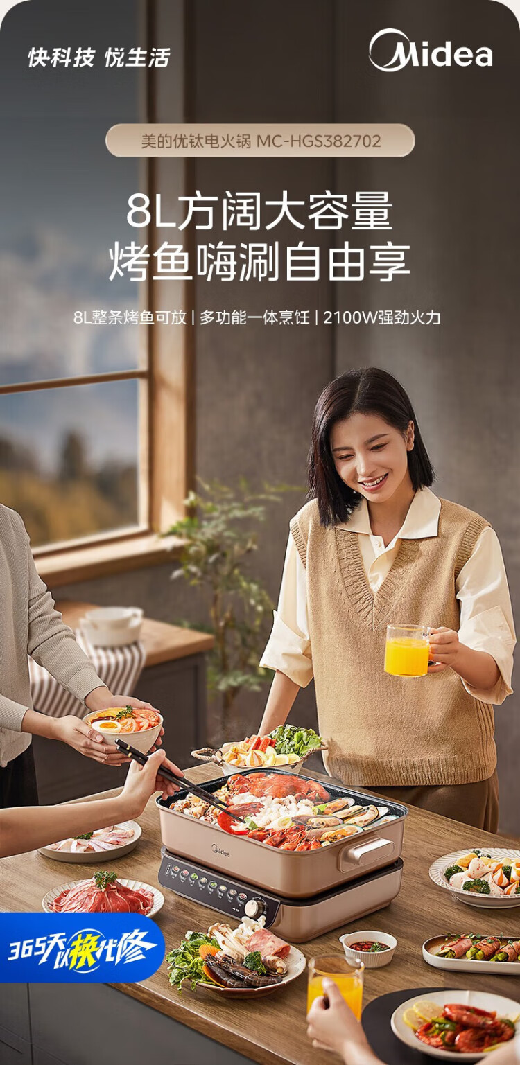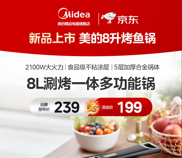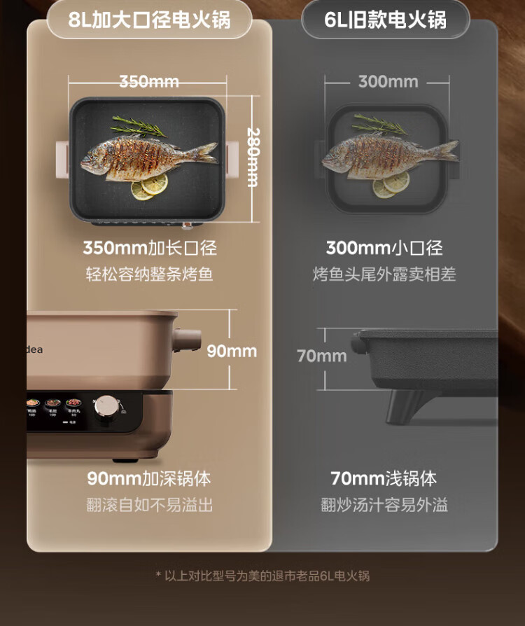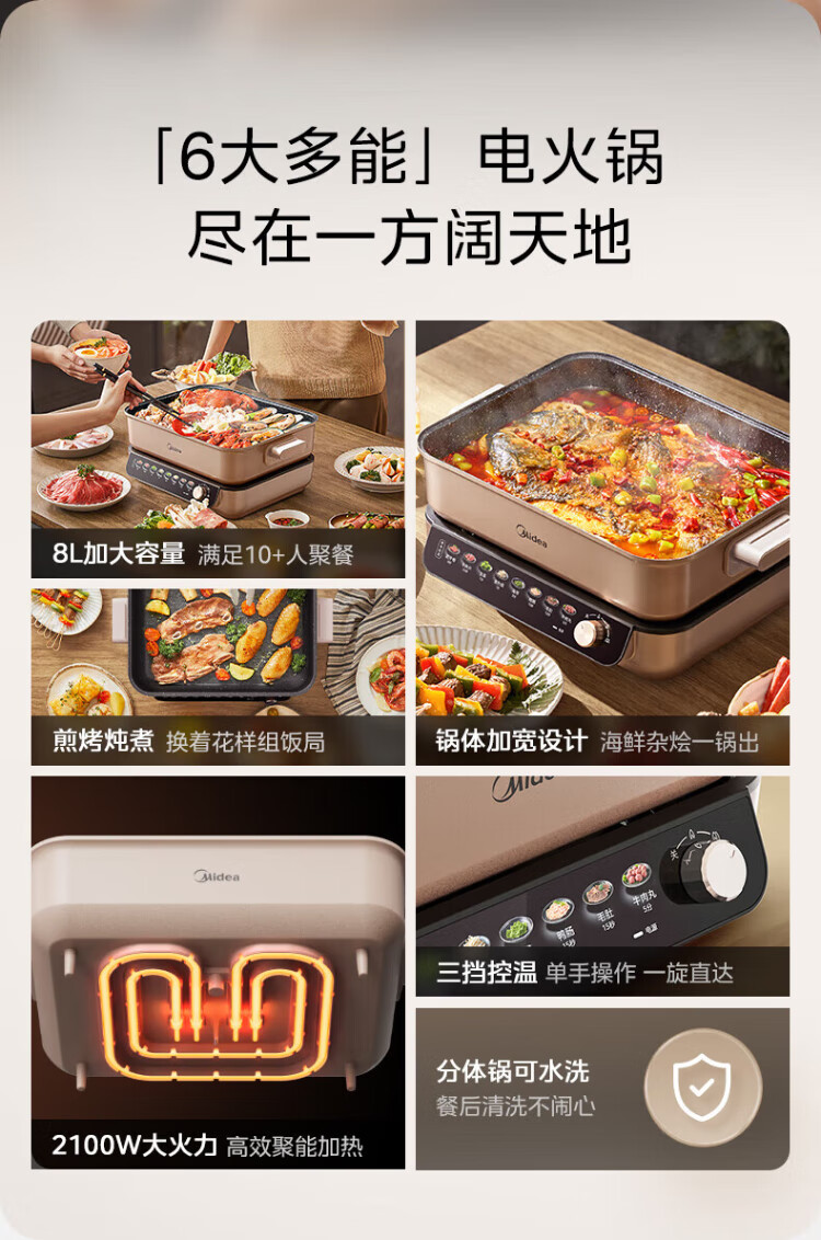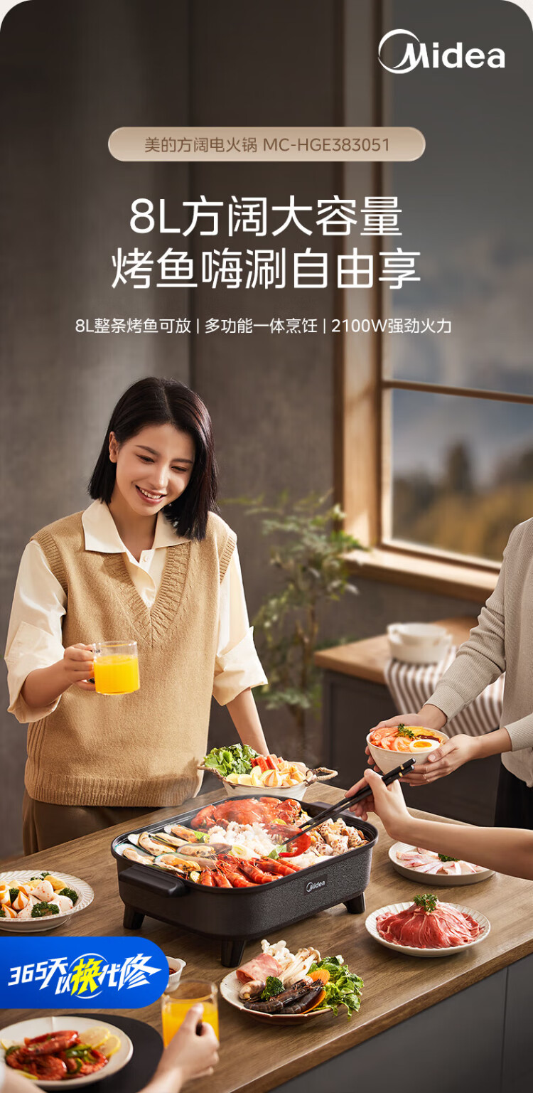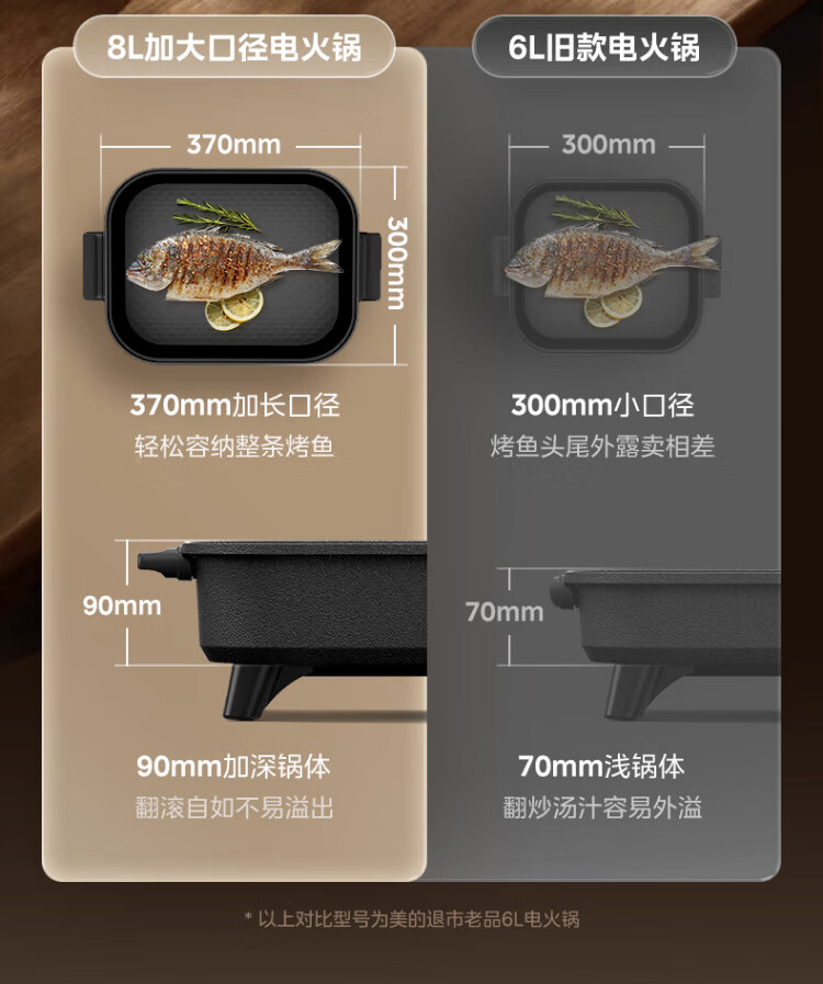 Midea electric hot pot, special pot for grilled fish, 8L large-capacity barbecue pot, multi-functional electric cooking pot for frying, roasting and shabu-shabu, two-purpose multi-purpose pot, rectangular fish stove, 8L, can hold a whole fish