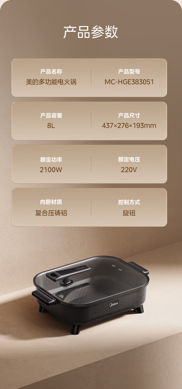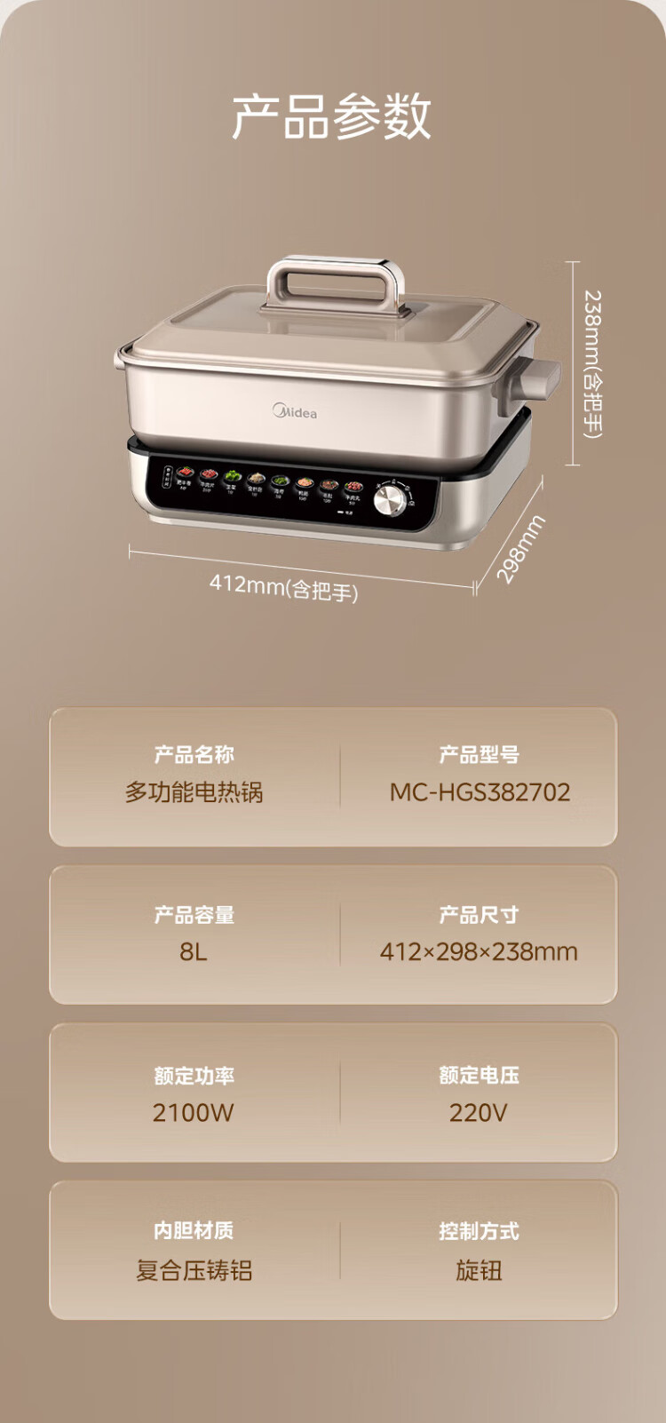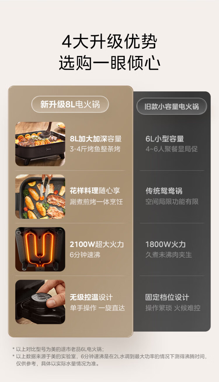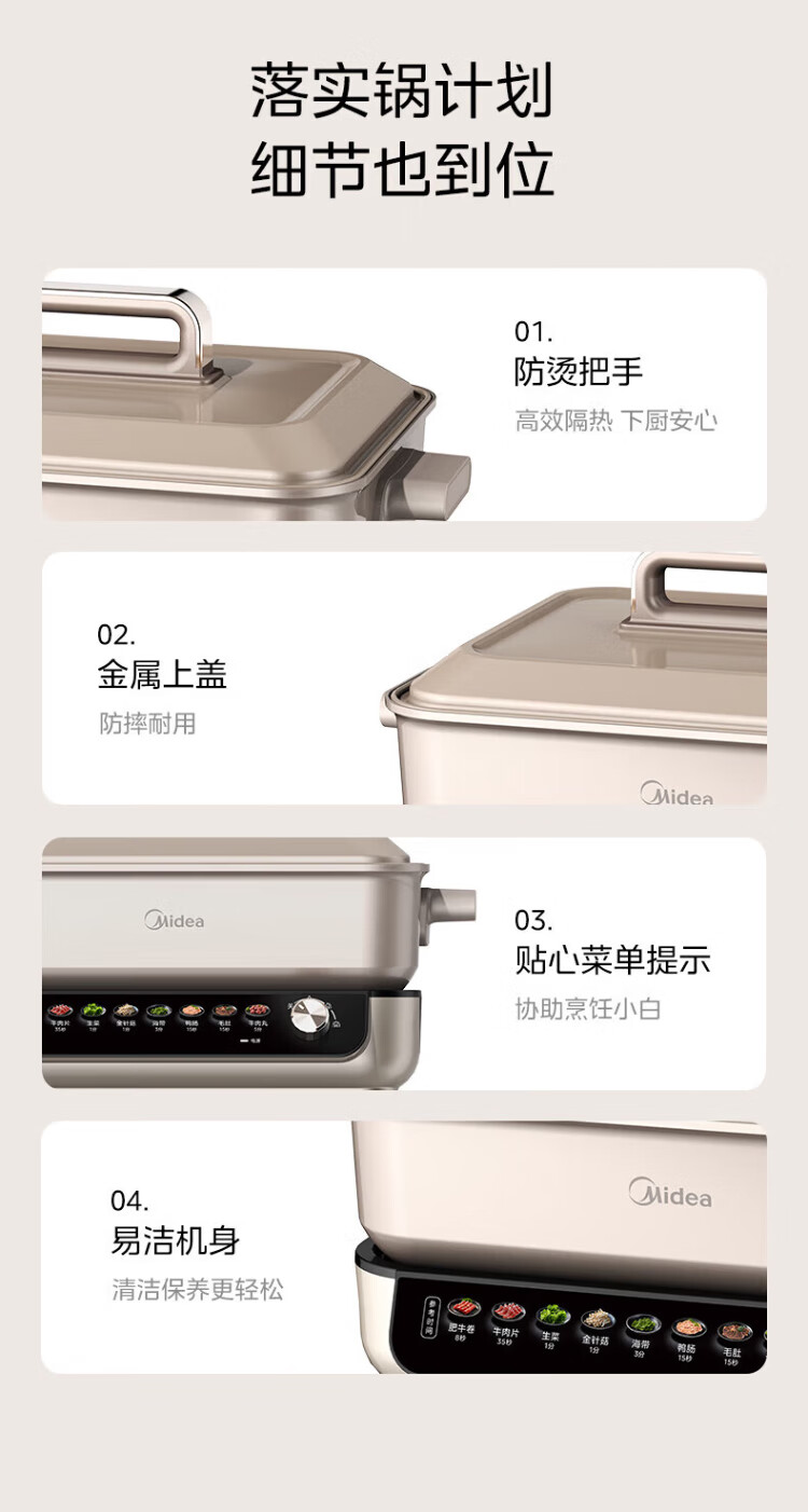 Midea electric hot pot, special pot for grilled fish, 8L large-capacity barbecue pot, multi-functional electric cooking pot for frying, roasting and shabu-shabu, two-purpose multi-purpose pot, rectangular fish stove, 8L, can hold a whole fish