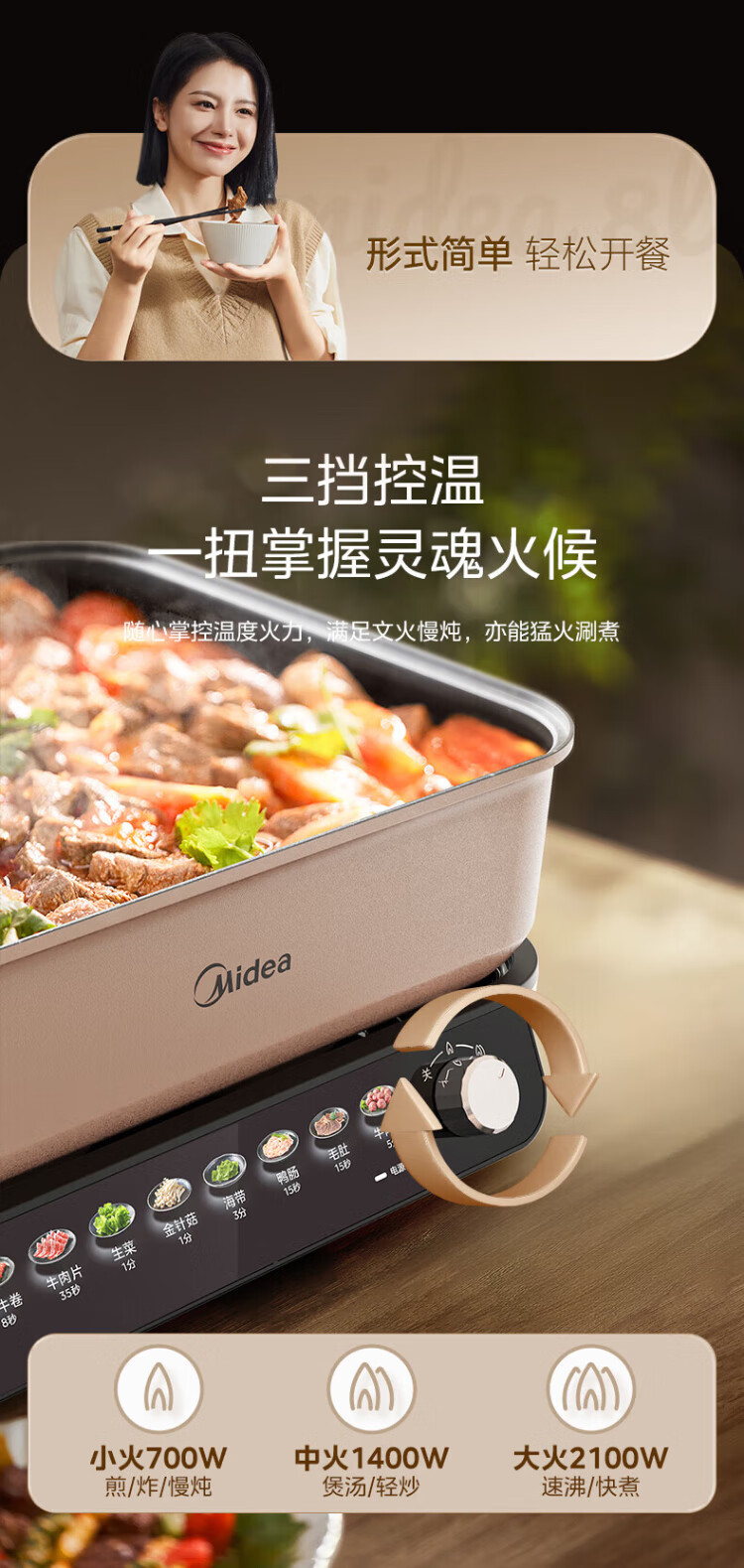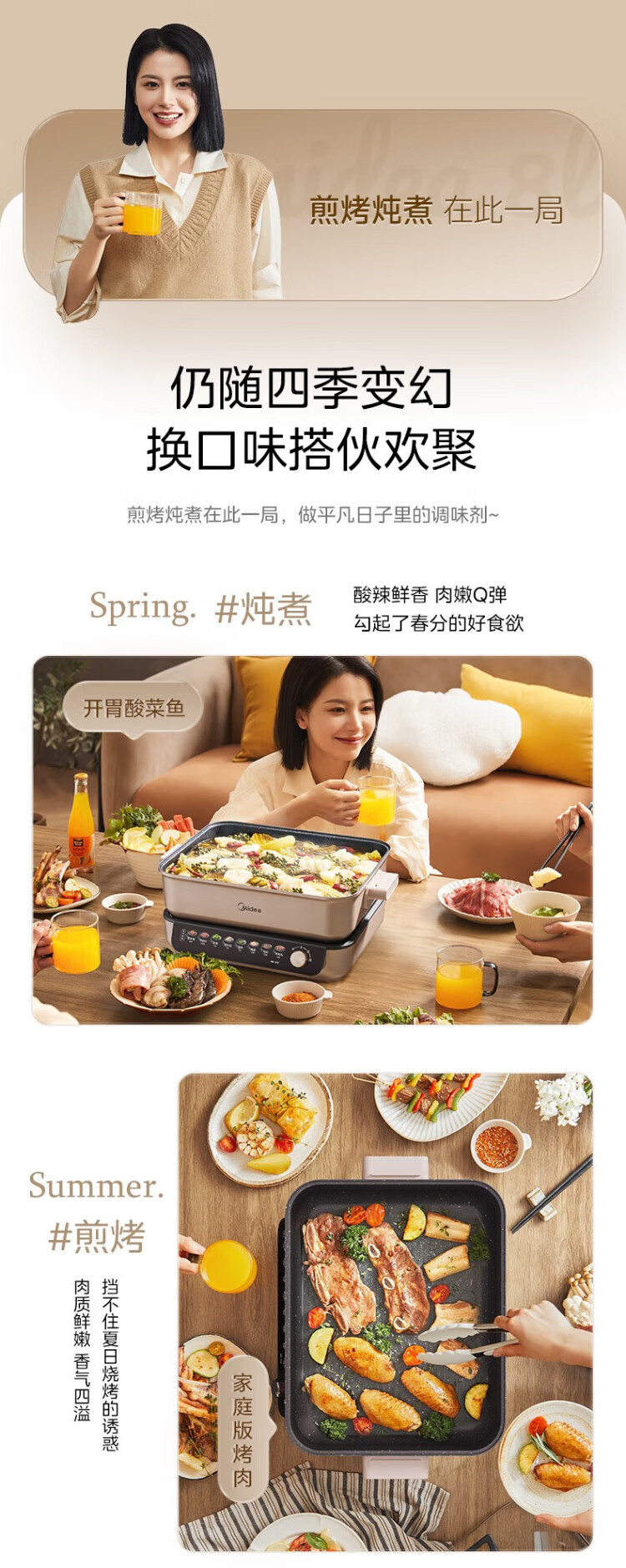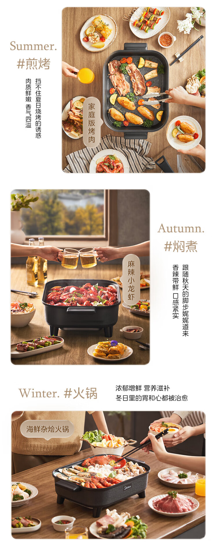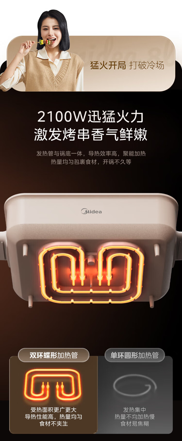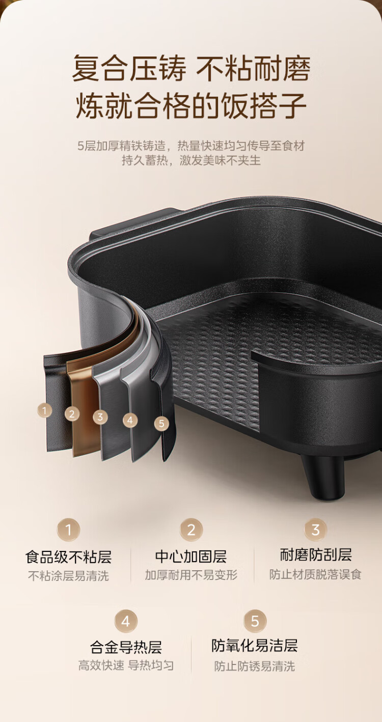 Midea electric hot pot, special pot for grilled fish, 8L large-capacity barbecue pot, multi-functional electric cooking pot for frying, roasting and shabu-shabu, two-purpose multi-purpose pot, rectangular fish stove, 8L, can hold a whole fish