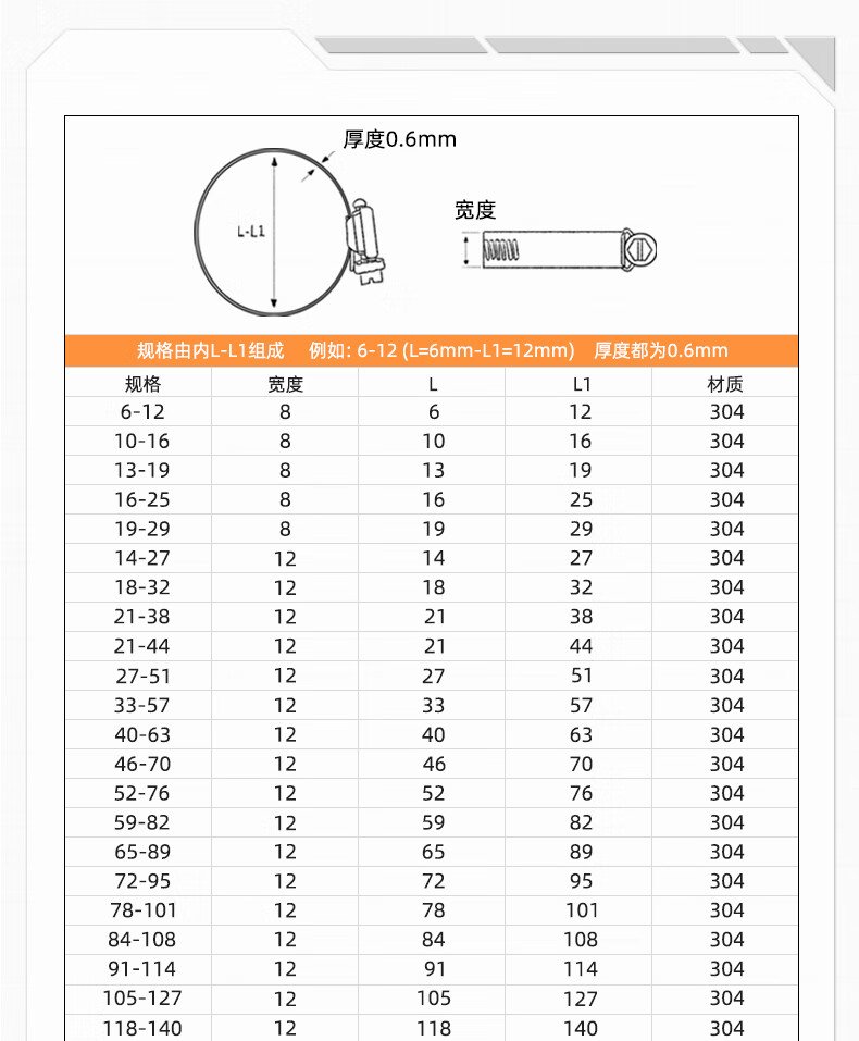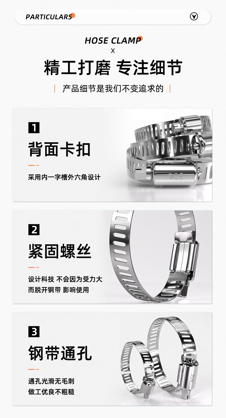 Fengji 304 stainless steel hose clamp pipe clamp pipe clamp pipe clamp live clamp water pipe range hood washing machine gas pipe 232-254 2 304