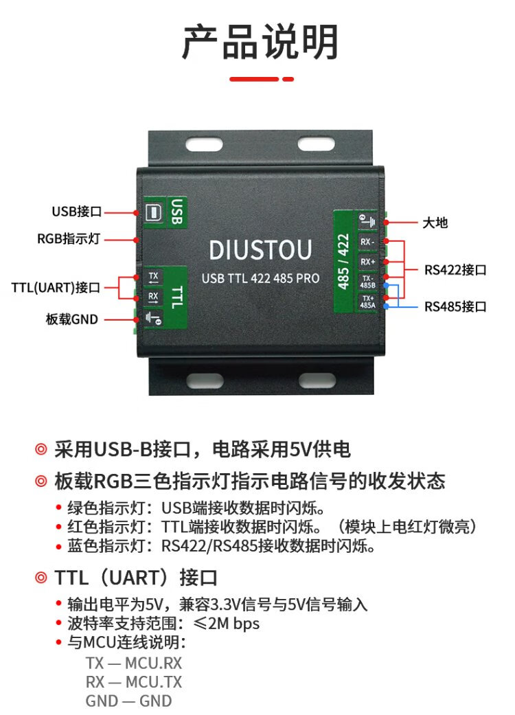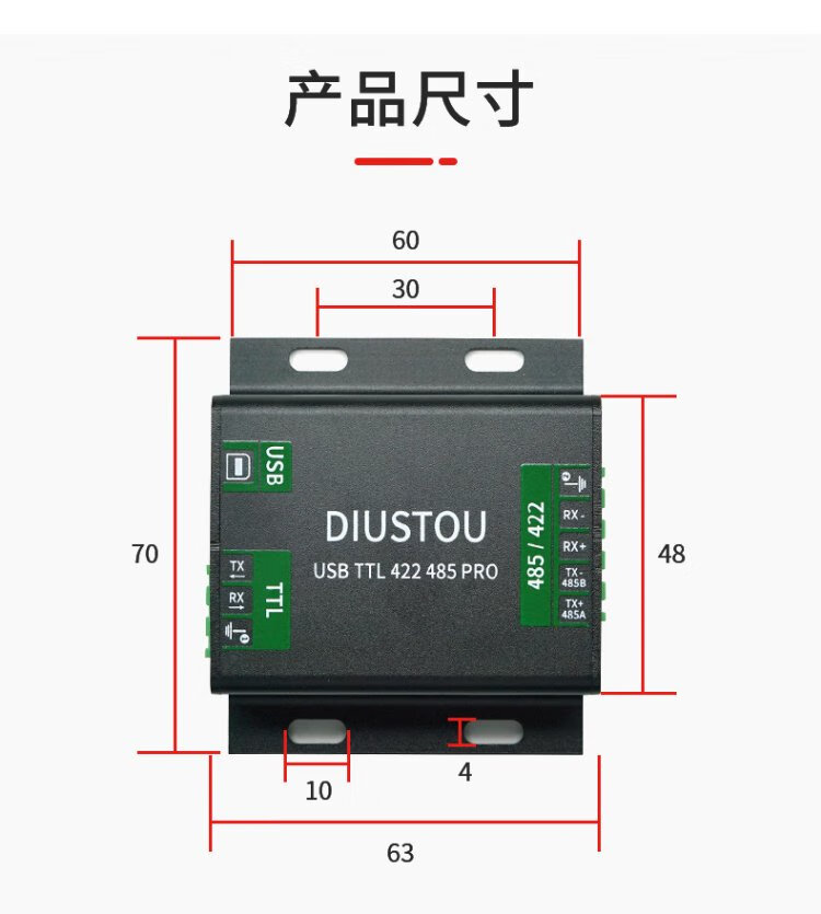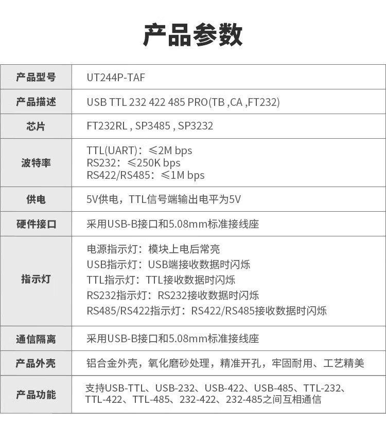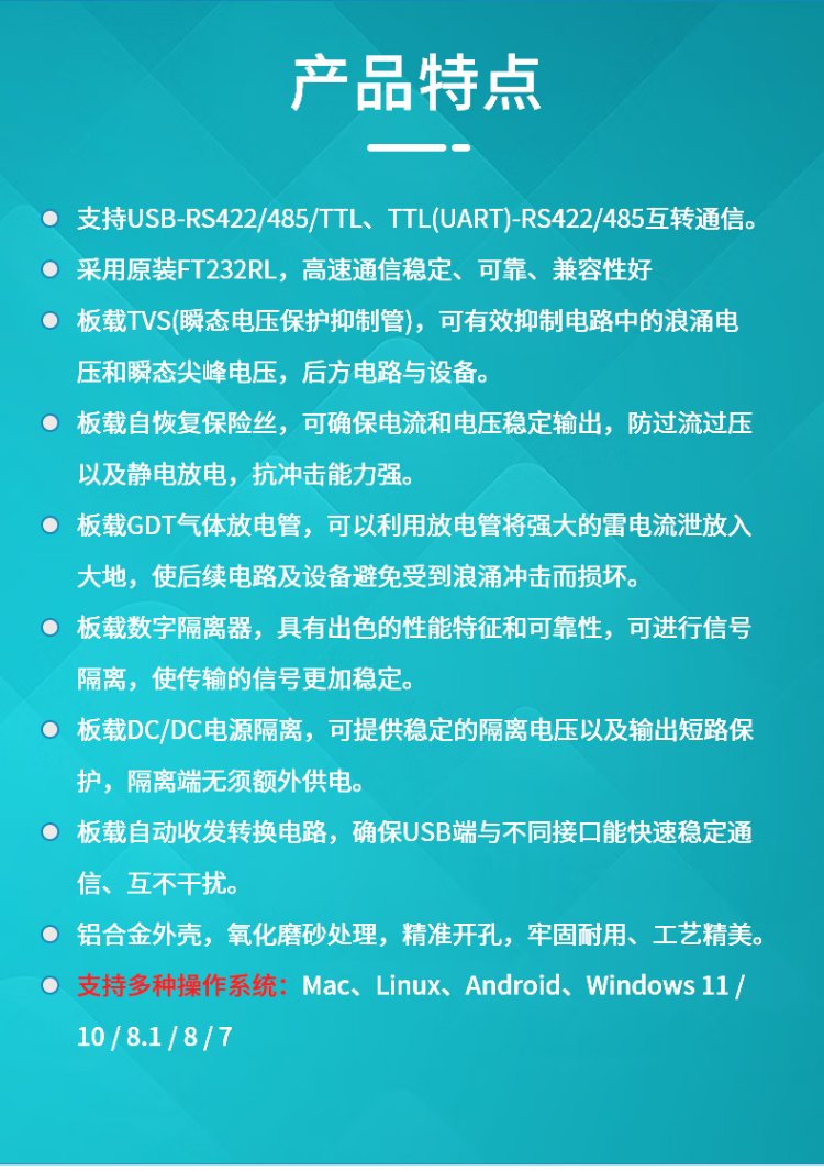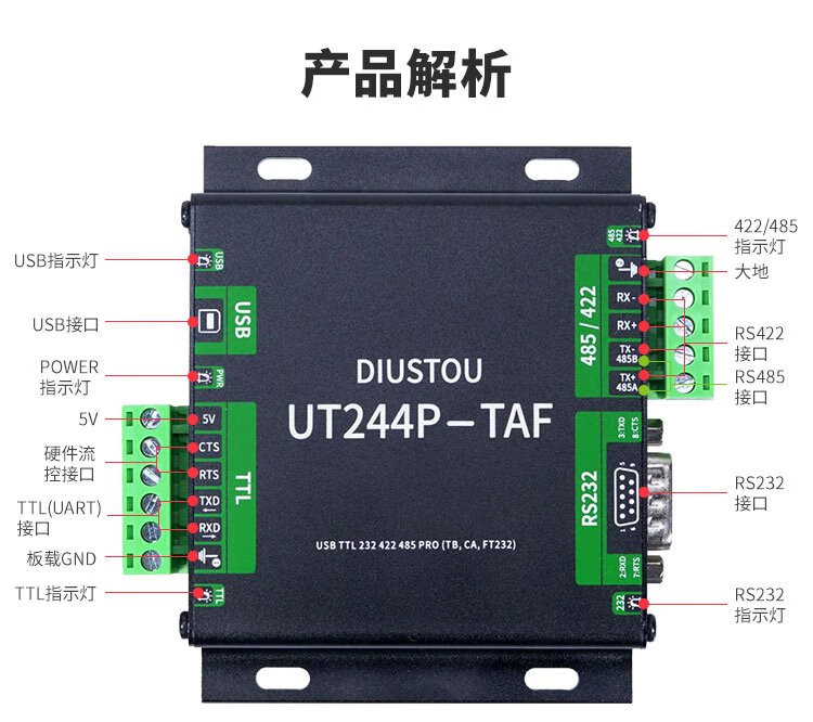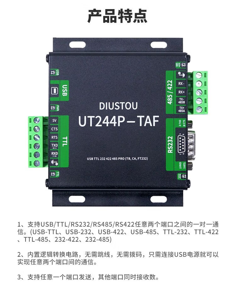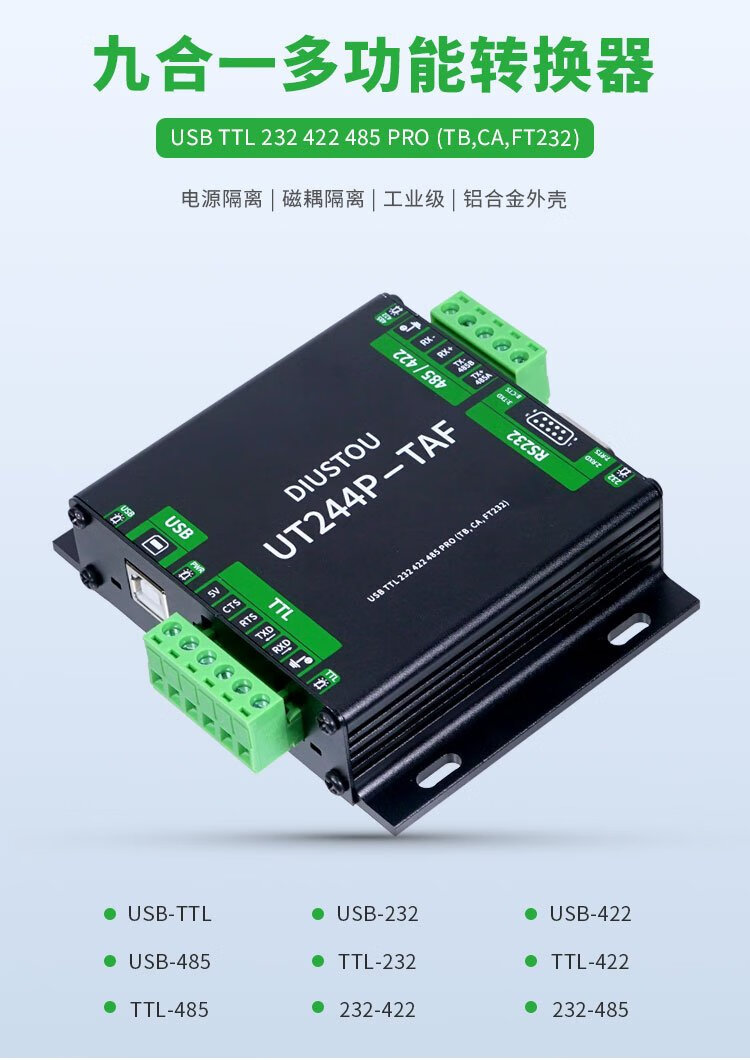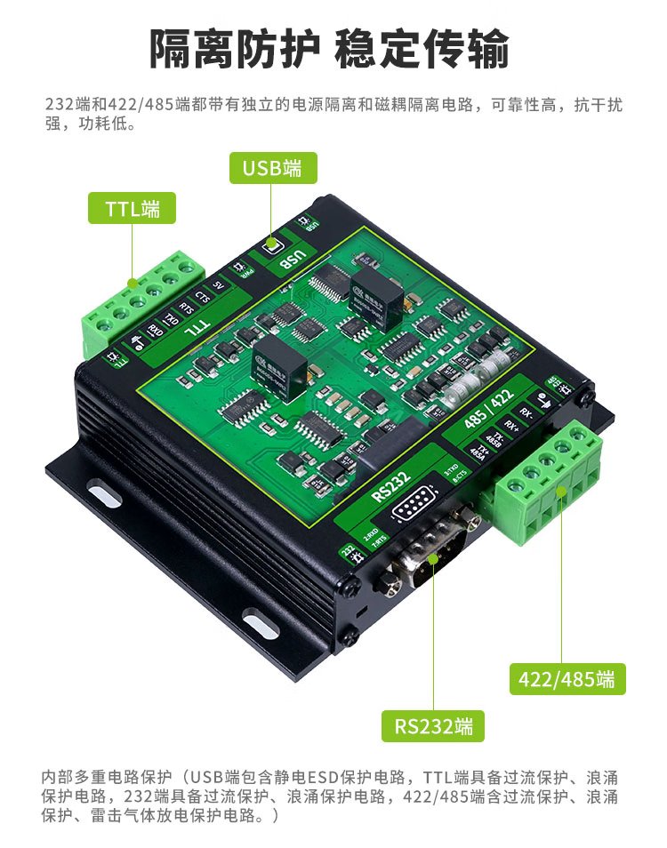 Throwing stones USB/TTL/RS232/422/485 multi-functional interconversion communication with isolated industrial-grade serial port module supports one transmission and multiple transmissions original FT232RL chip stable communication USB/TTL/RS232/422/485 interconversion communication 5 boxes