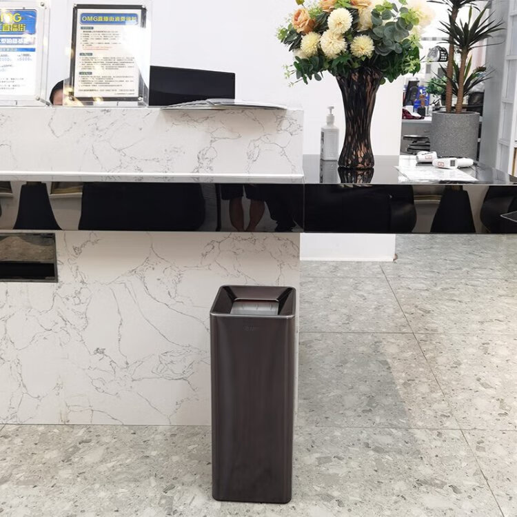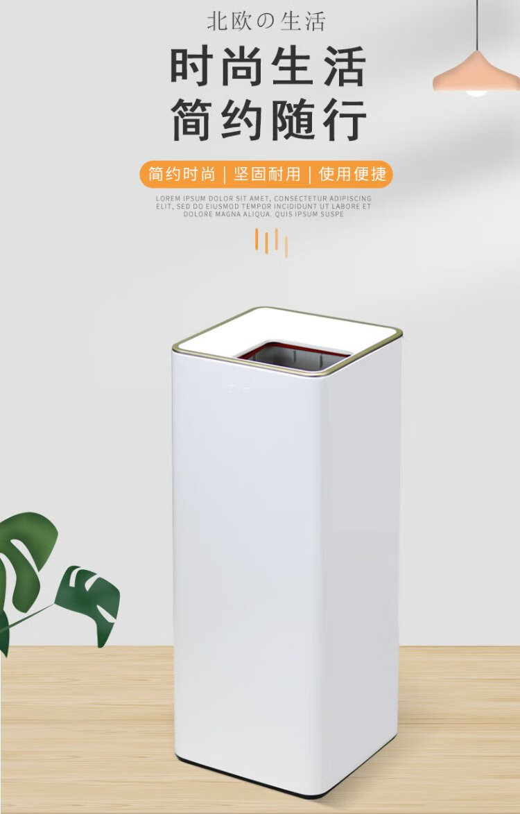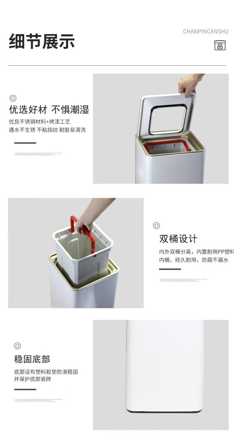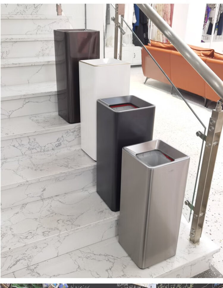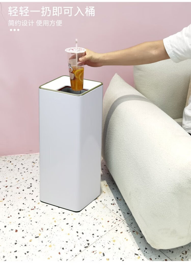 Stainless steel trash can narrow high-end living room kitchen large capacity white business extremely simple modern lidless commercial sand steel