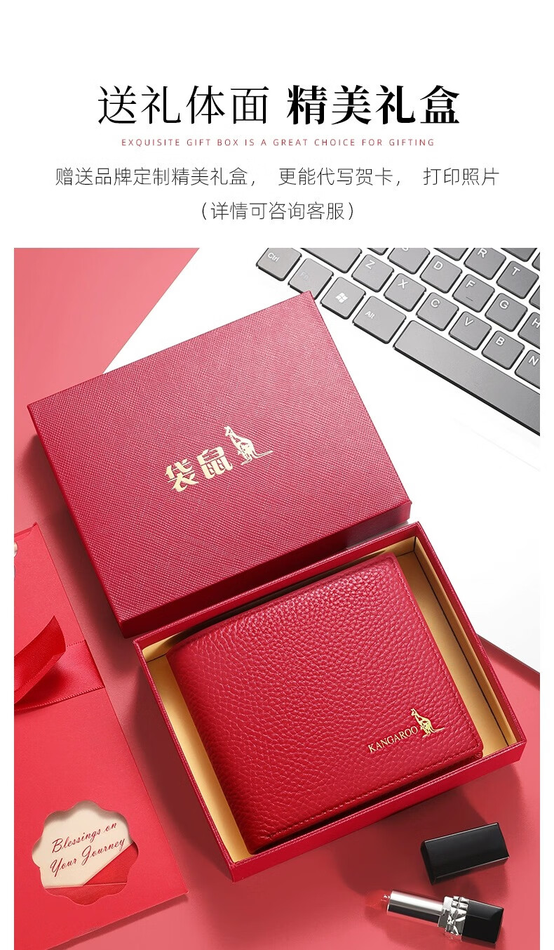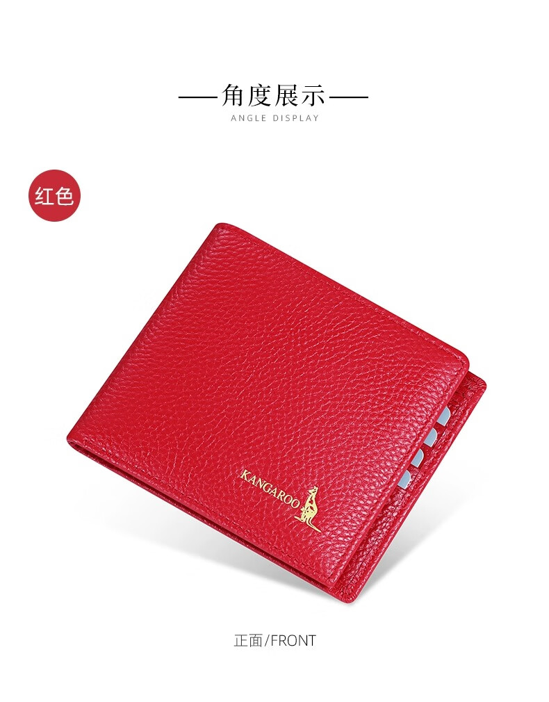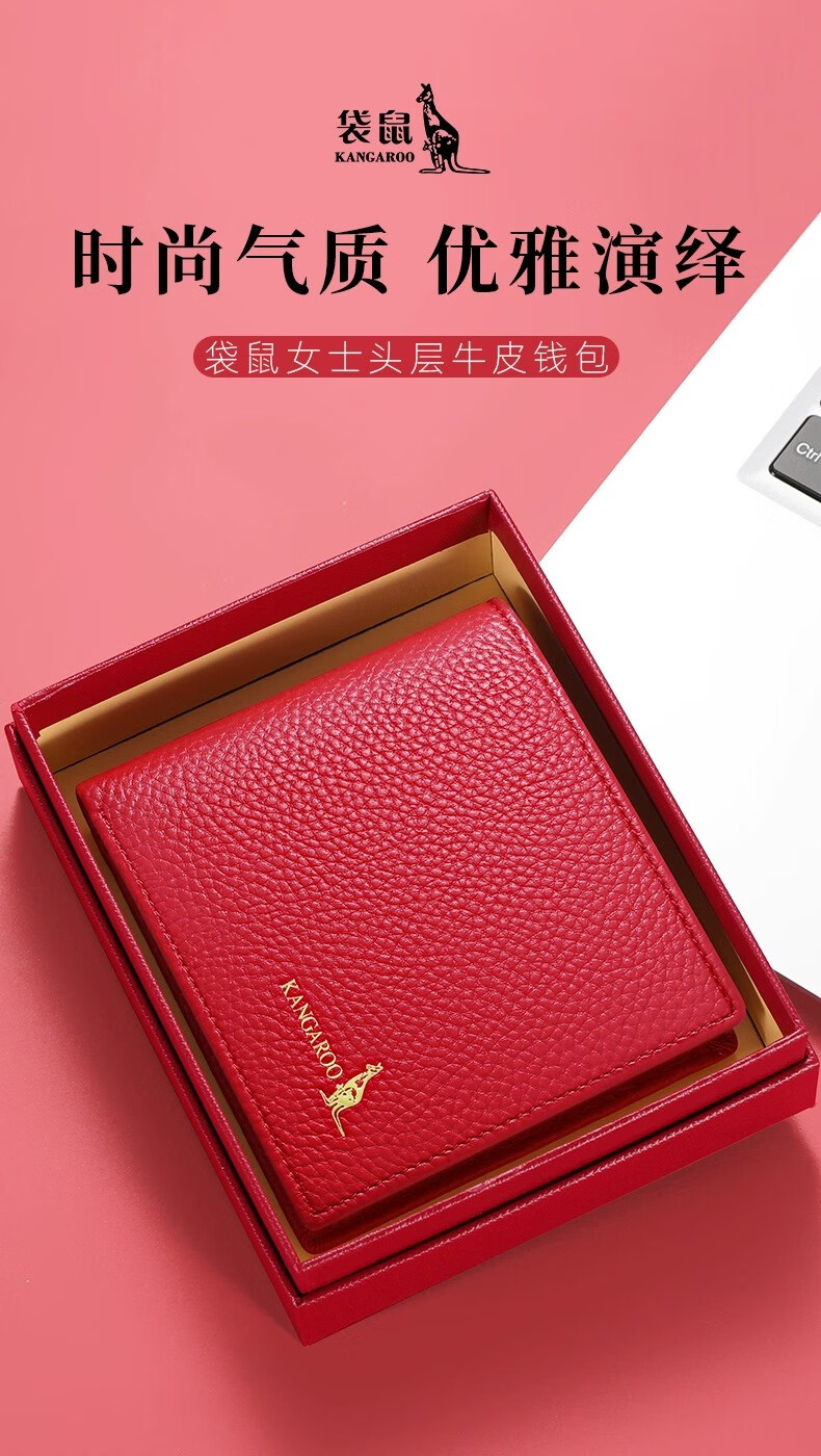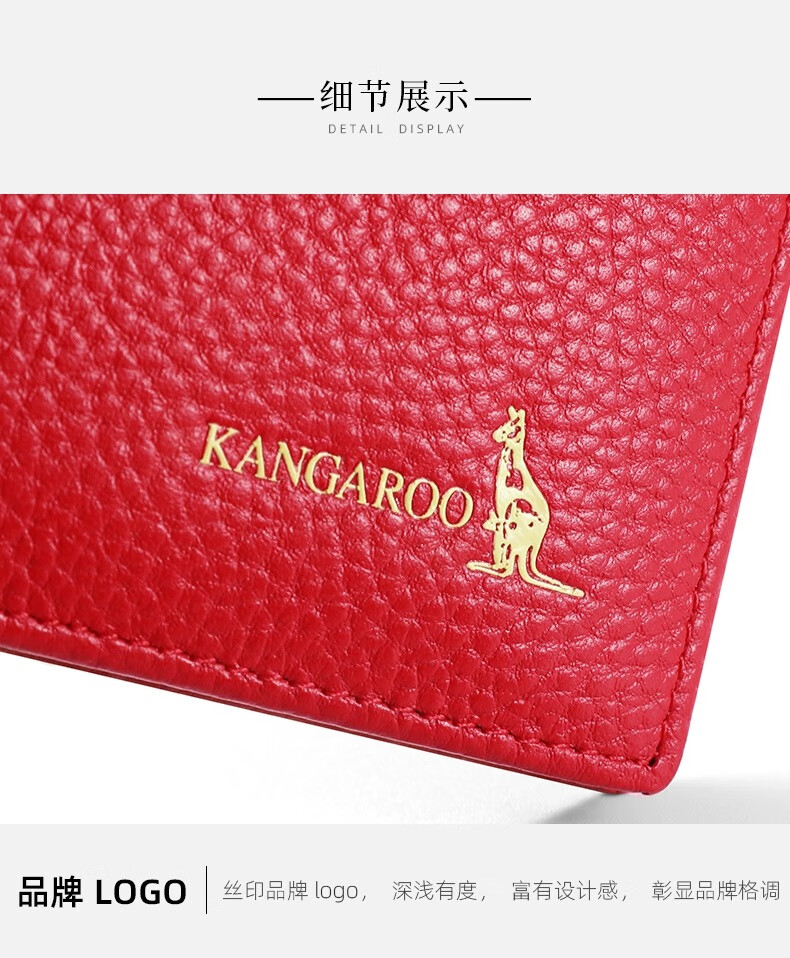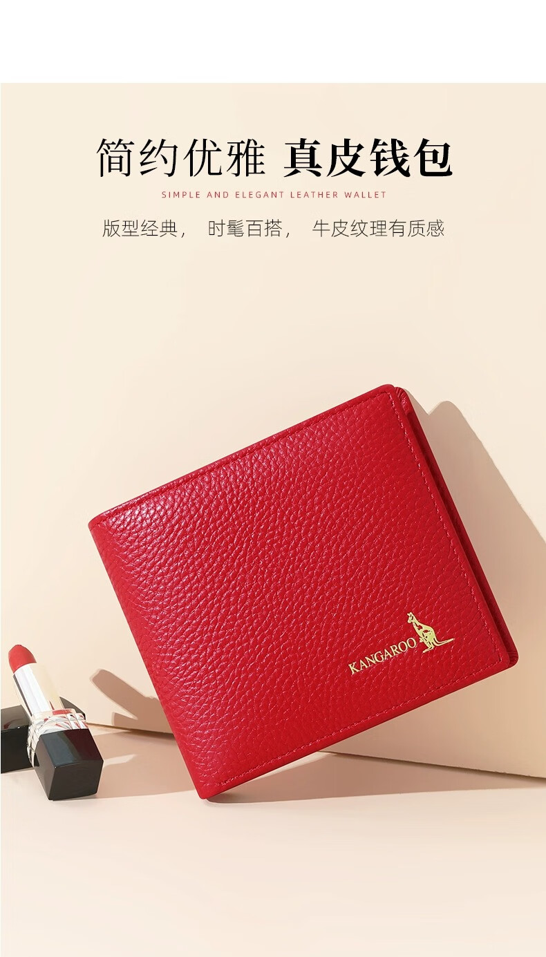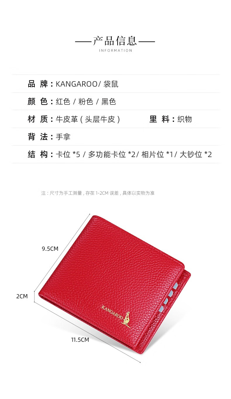 Kangaroo Women's Wallet Genuine Leather Short Wallet 2025 New Style Small Cute Simple Student Ultra-Thin Folding Wallet Pink Horizontal Style