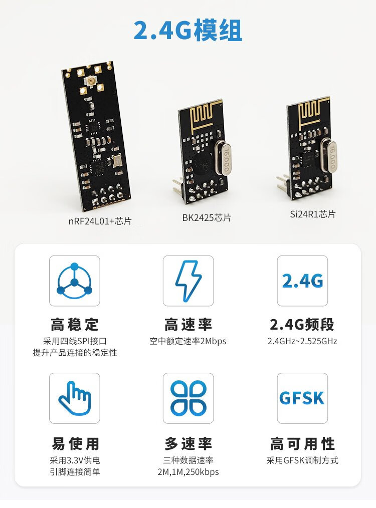 Throwing stones 2.4G wireless module nRF24L01+ chip communication module data transparent transmission transceiver power enhancement long distance transmission NF-03 Si24R1 SMD patch type 10 boxes