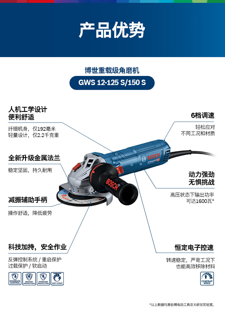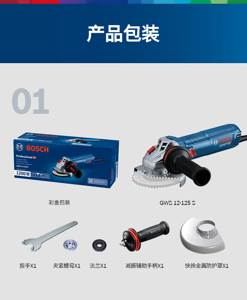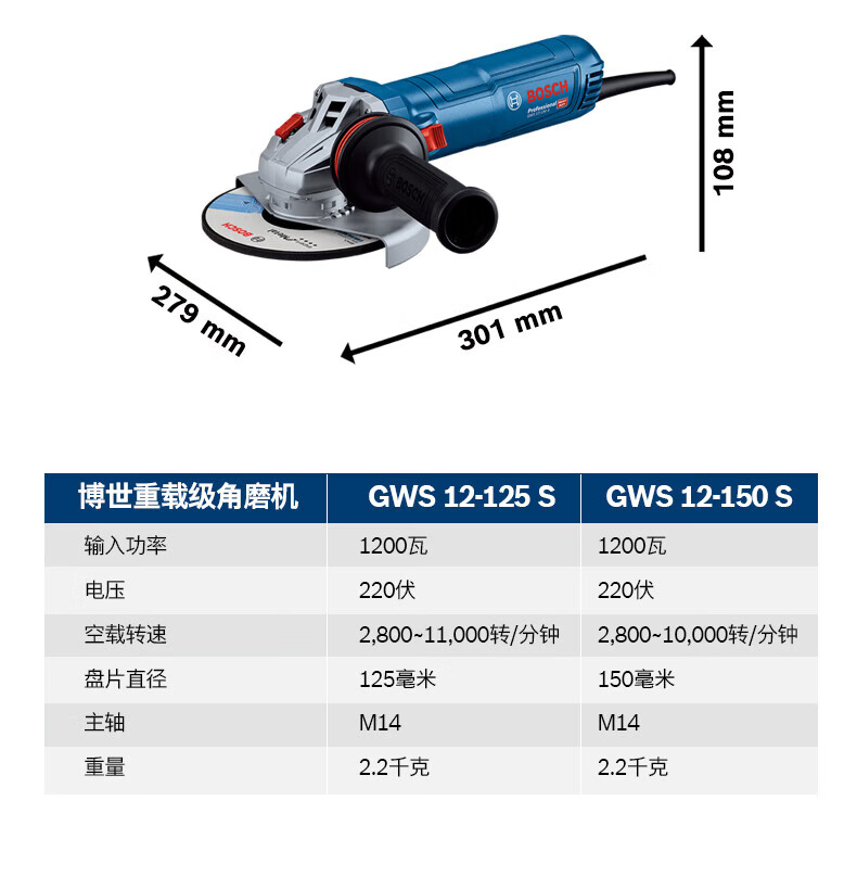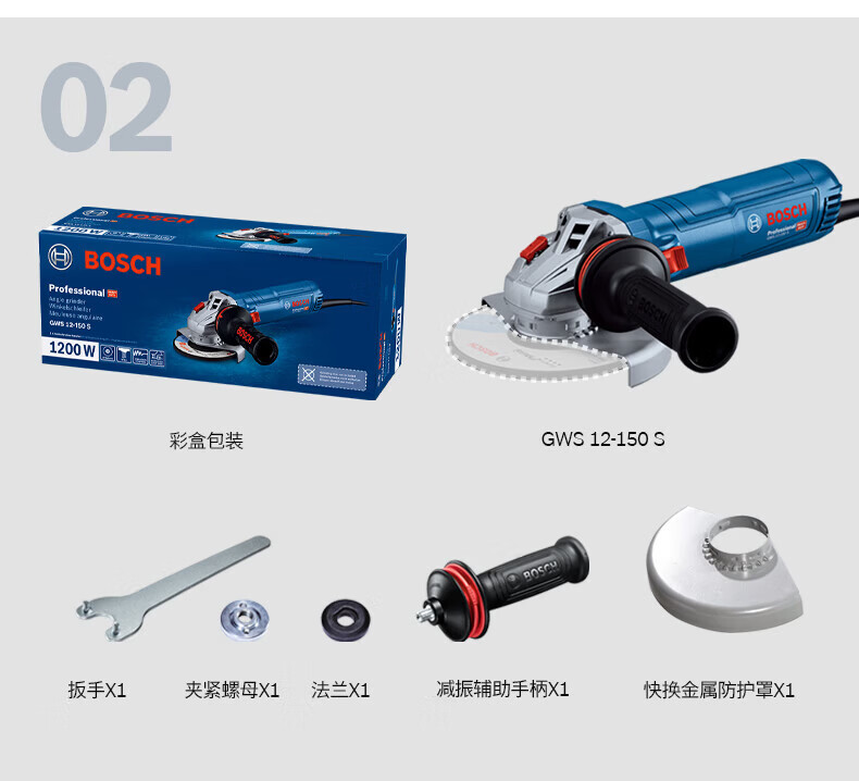 Bosch (BOSCH) 1200W angle grinder hand grinding wheel angle grinder GWS12-125S cutting machine adjustable speed 125/150 mm GWS12-150S angle grinder 1200W diameter 150mm