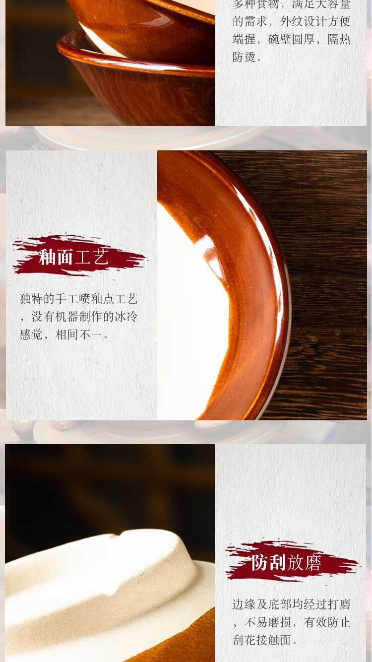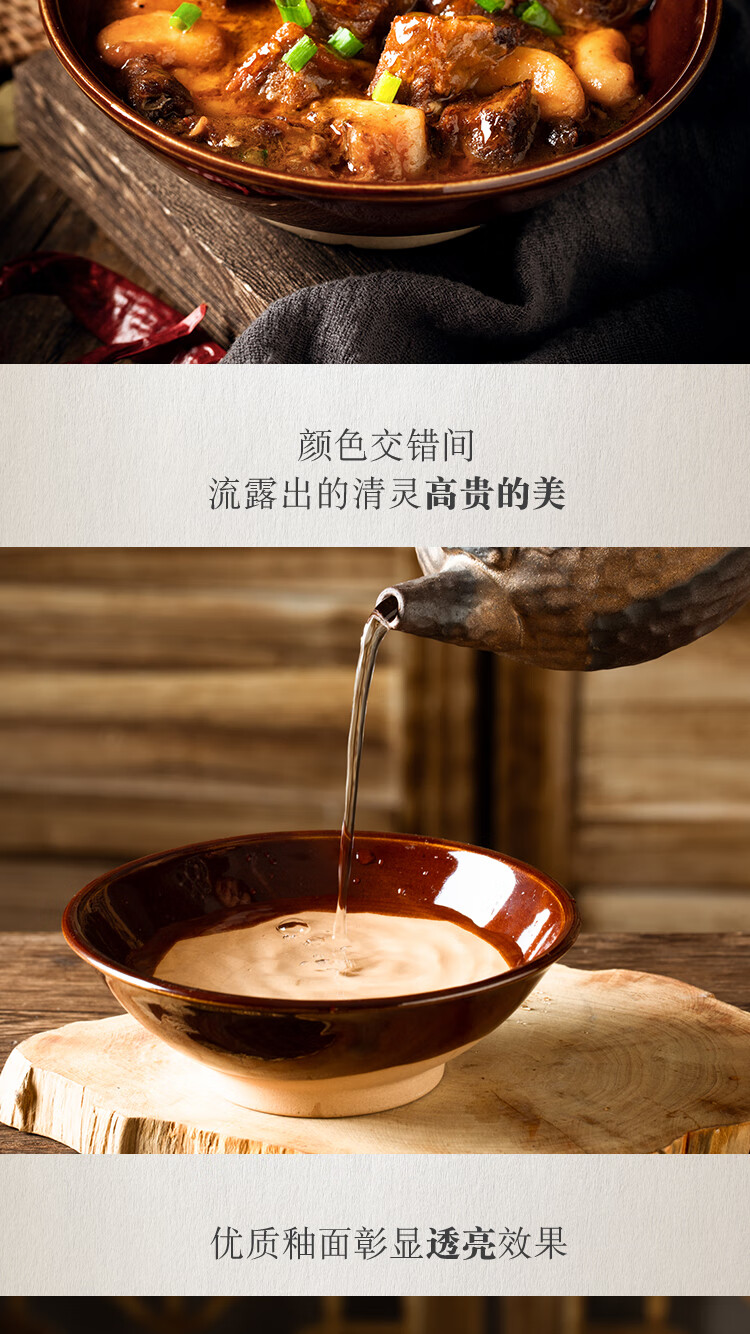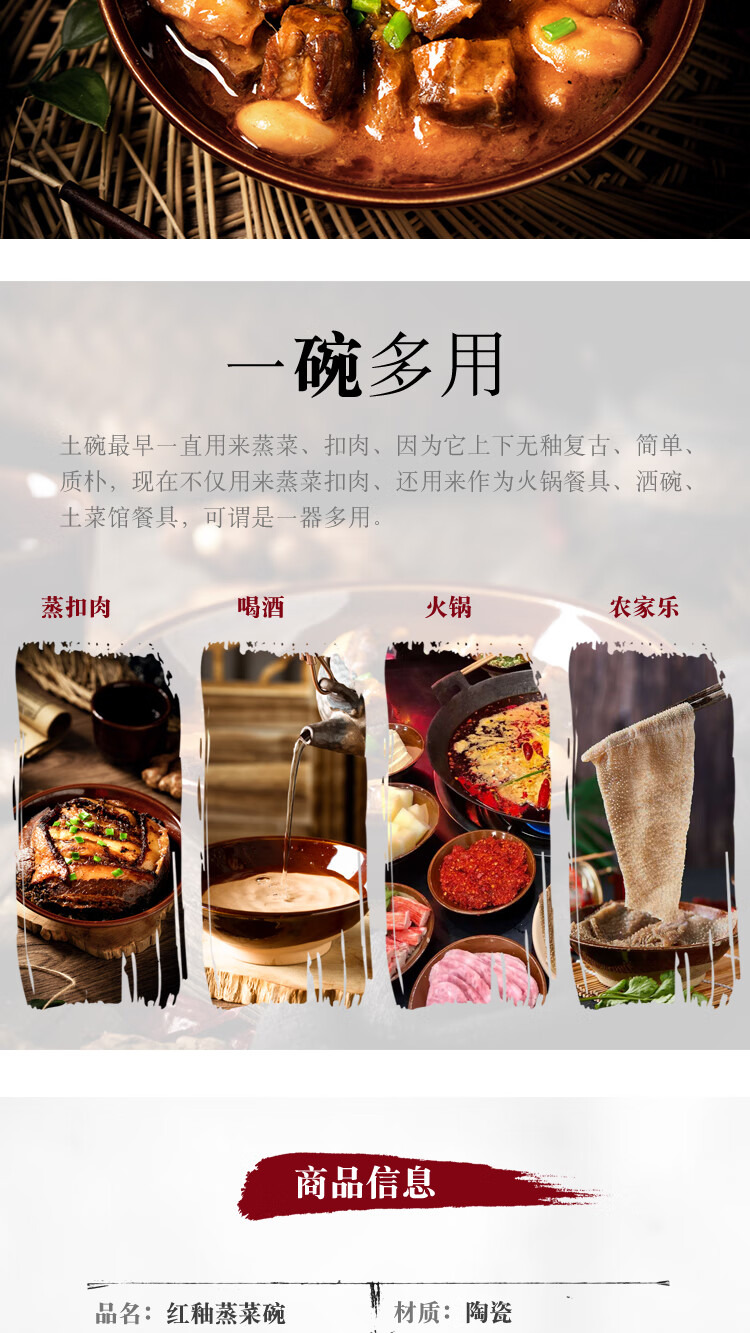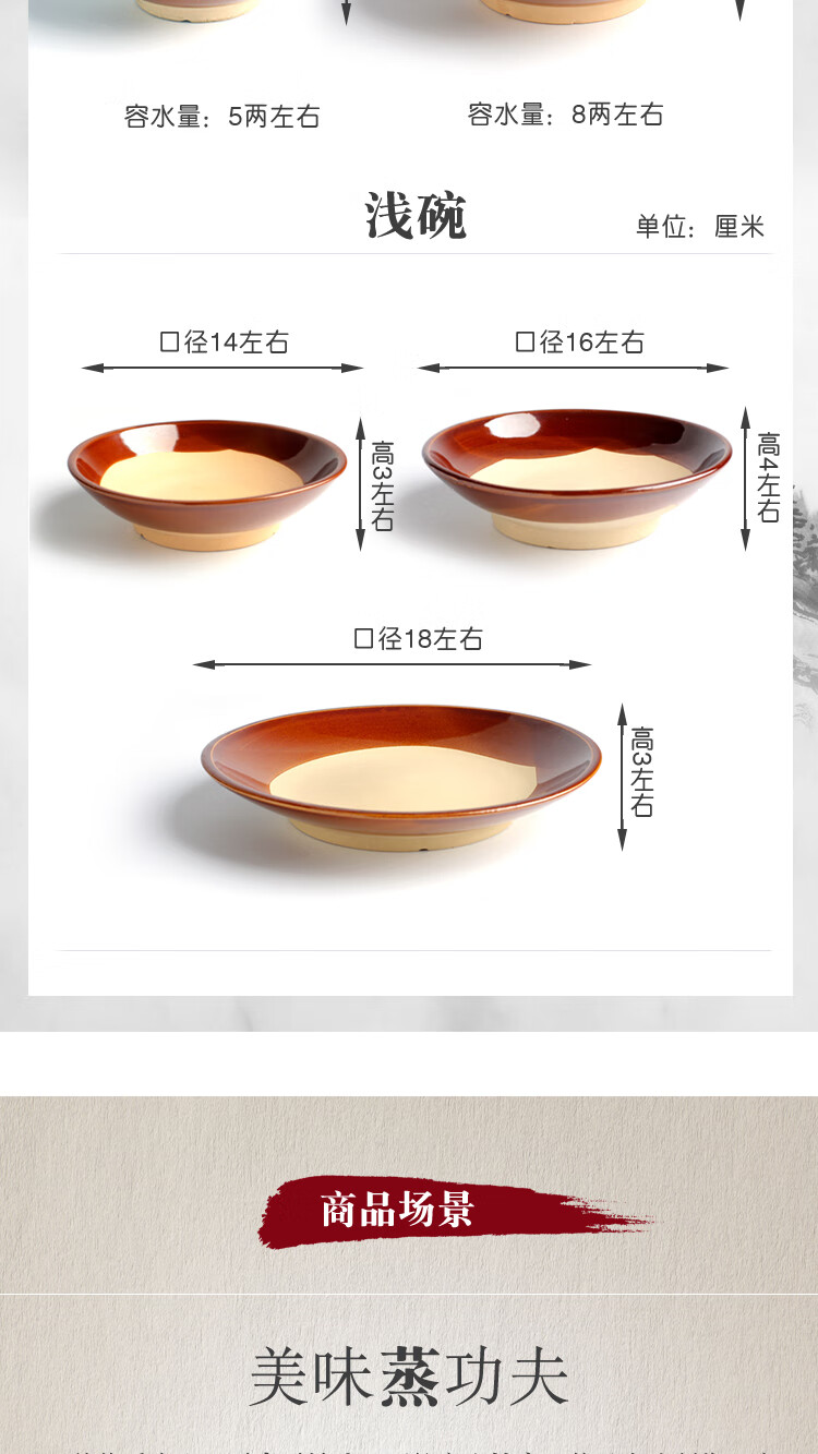 Tian Yajing steamed vegetable bowl, old-fashioned earthen bowl, hot pot seasoning bowl, steamed braised pork belly, steamed vegetable bowl, water bowl, eight large bowls of stoneware, deep bowl diameter 16.5cm (steamed vegetable bowl)