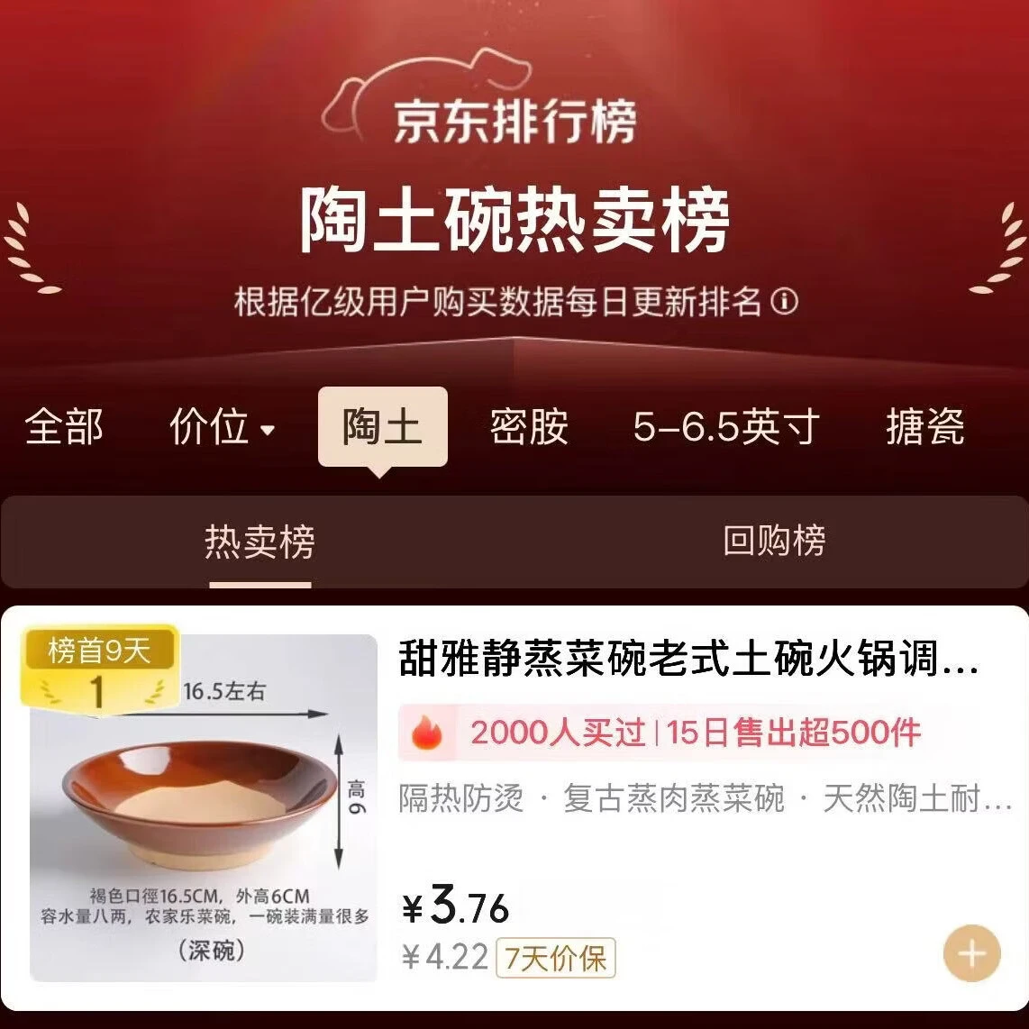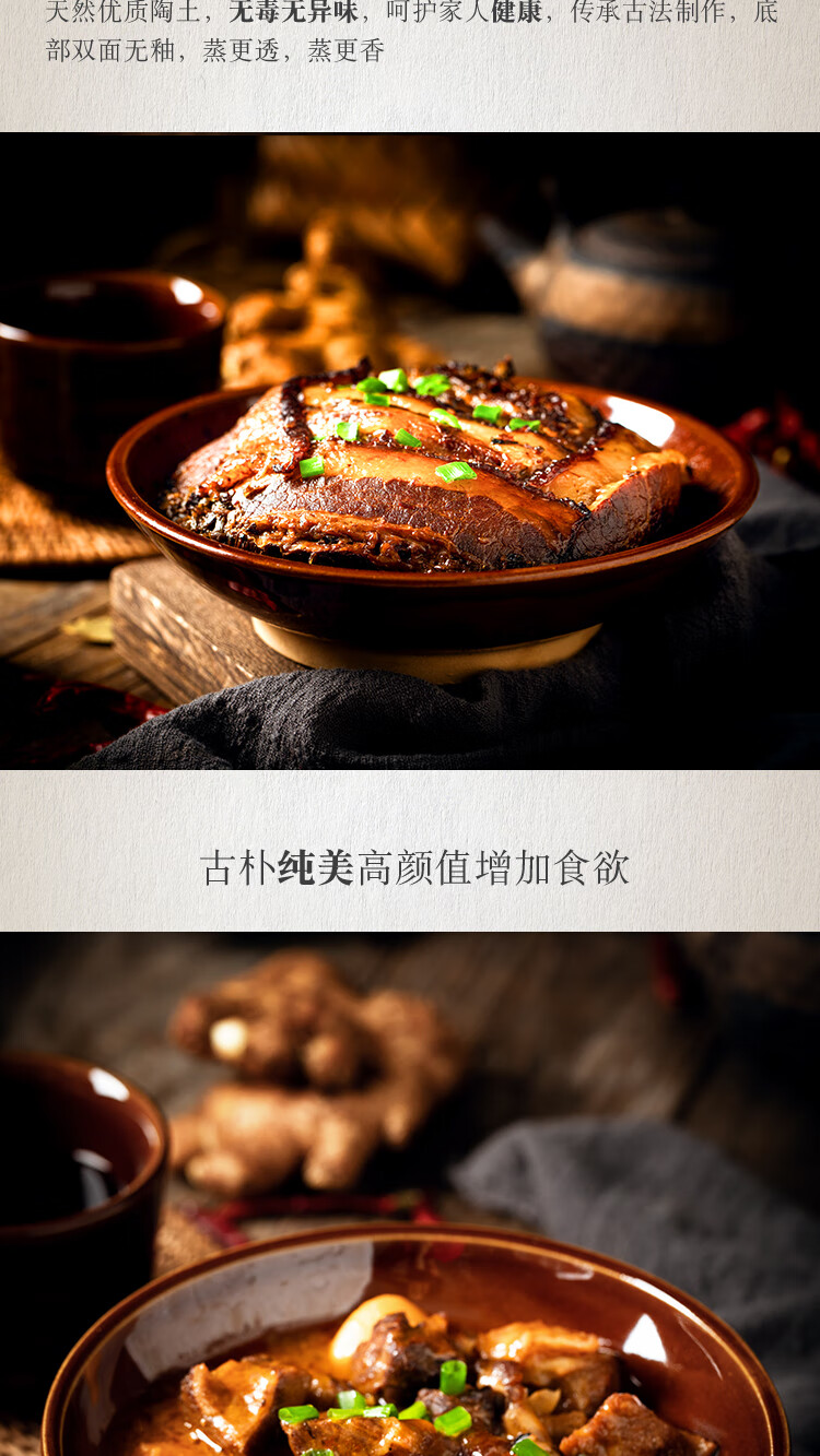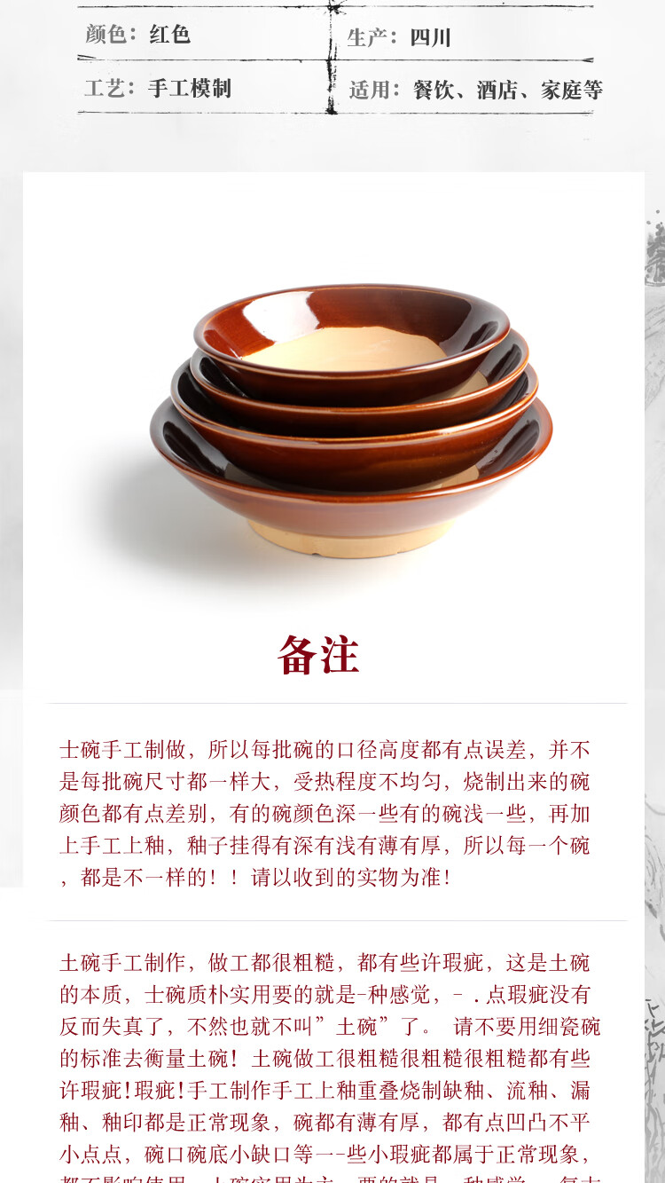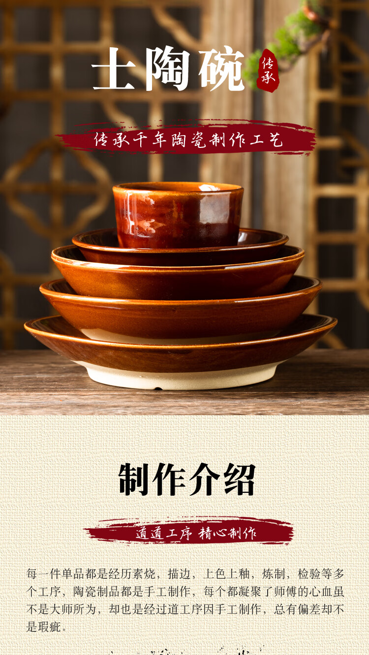 Tian Yajing steamed vegetable bowl, old-fashioned earthen bowl, hot pot seasoning bowl, steamed braised pork belly, steamed vegetable bowl, water bowl, eight large bowls of stoneware, deep bowl diameter 16.5cm (steamed vegetable bowl)