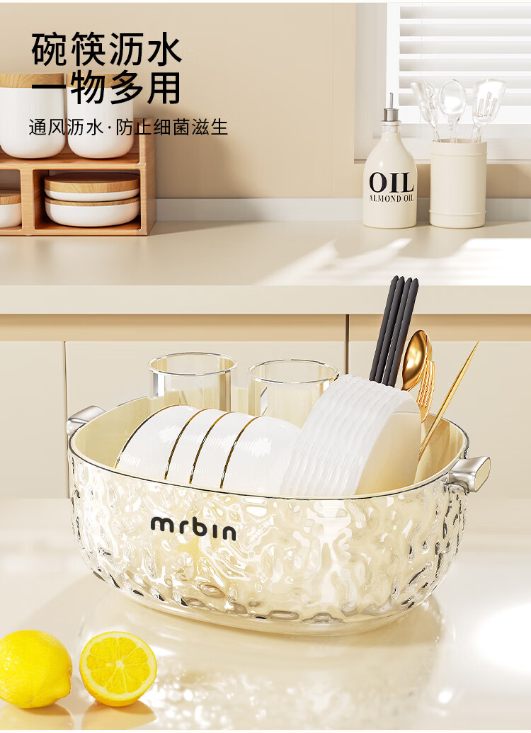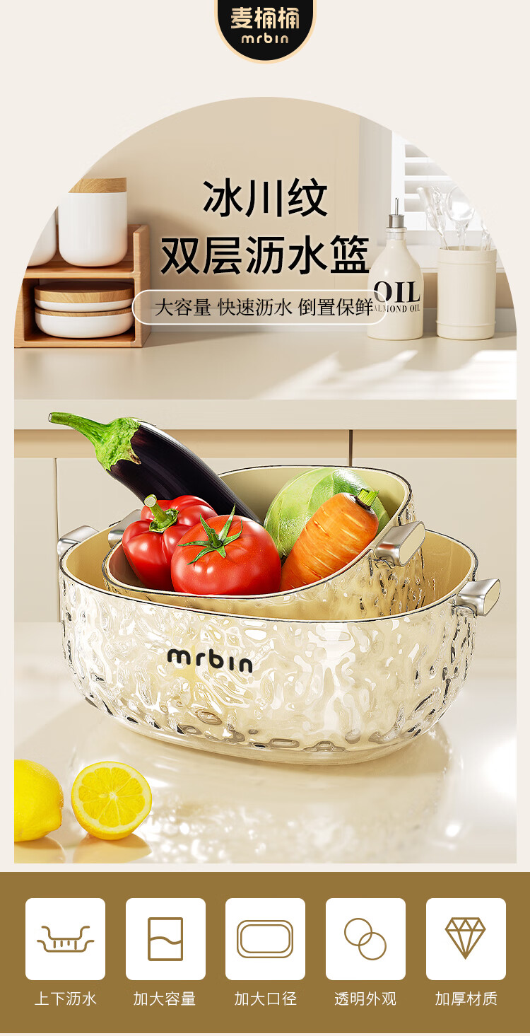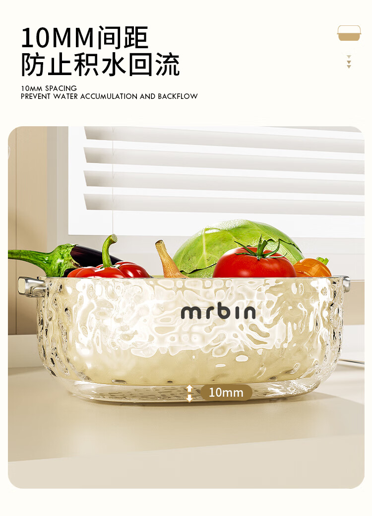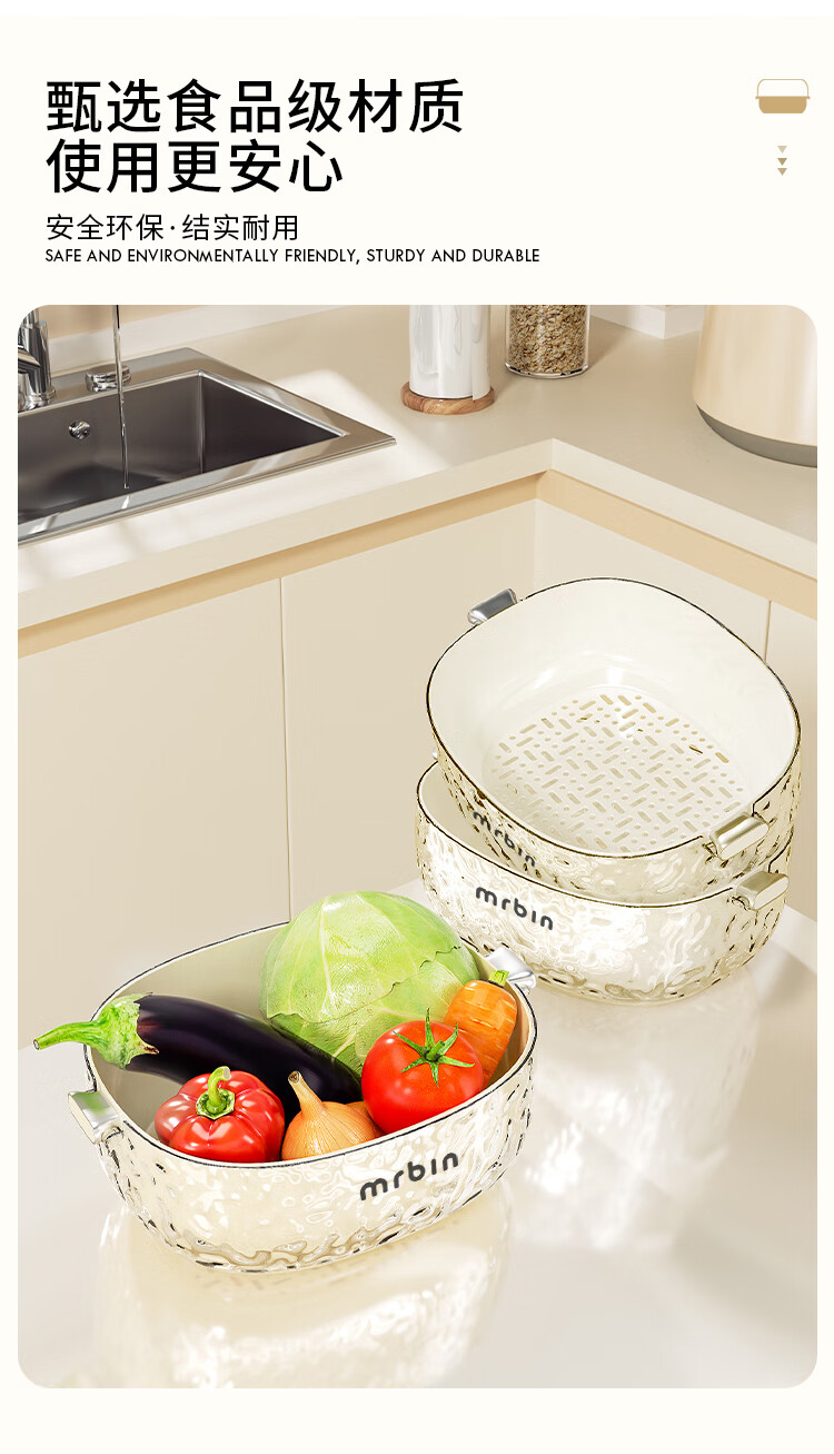 Wheat bucket (Mr.Bin) kitchen sink drain basket vegetable double-layer water filter vegetable basket fruit plate living room coffee table storage basket large capacity fresh-keeping large # upper layer draining | lower layer water storage