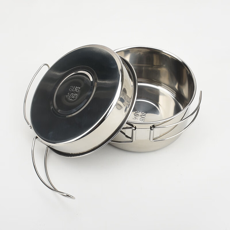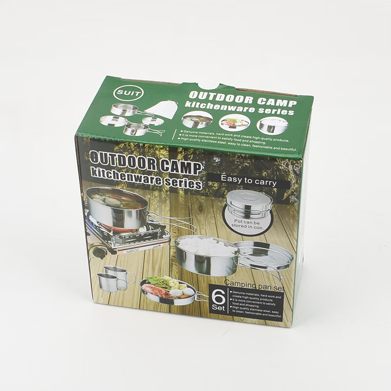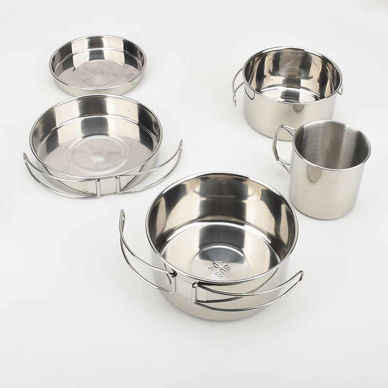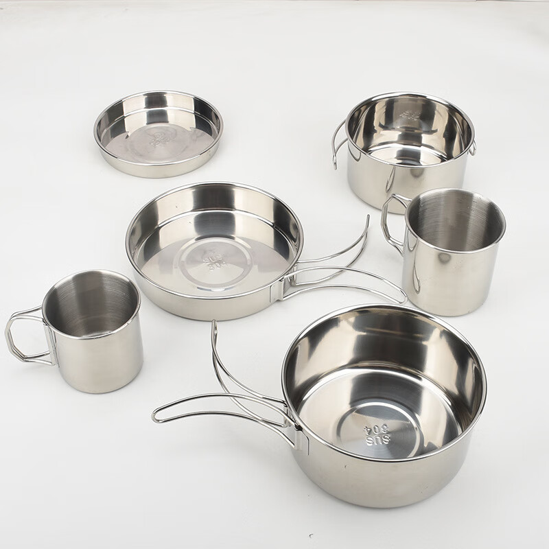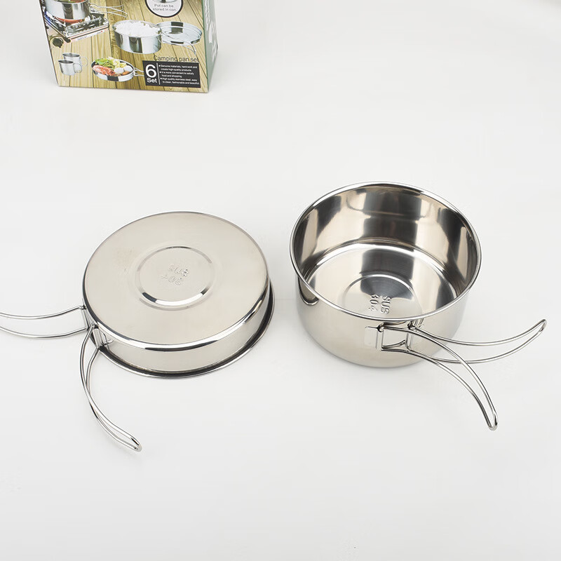 Jingdian 304 stainless steel outdoor pot set camping camping soup pot portable set pot set pot cooking pot foldable handle outdoor set 6-piece set + storage bag + color box