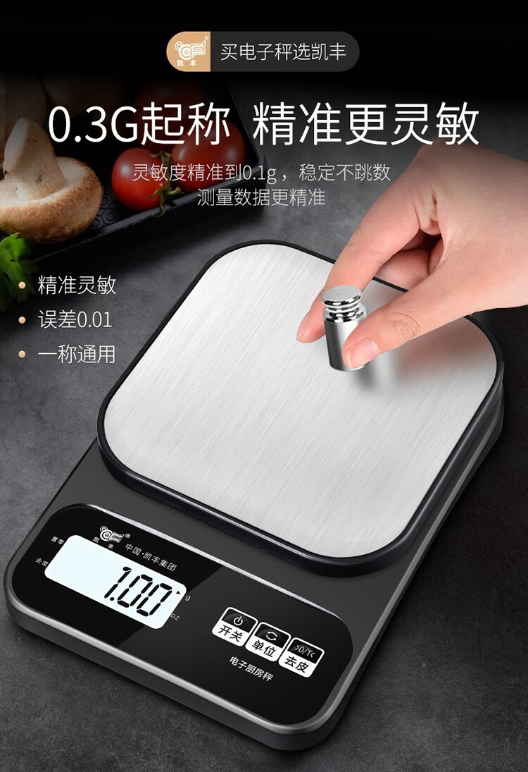 Kaifeng kitchen scale electronic scale household high-precision small gram baking precision weigher Chinese medicine weighing food scale recommended charging 3kg/0.1g tray + package