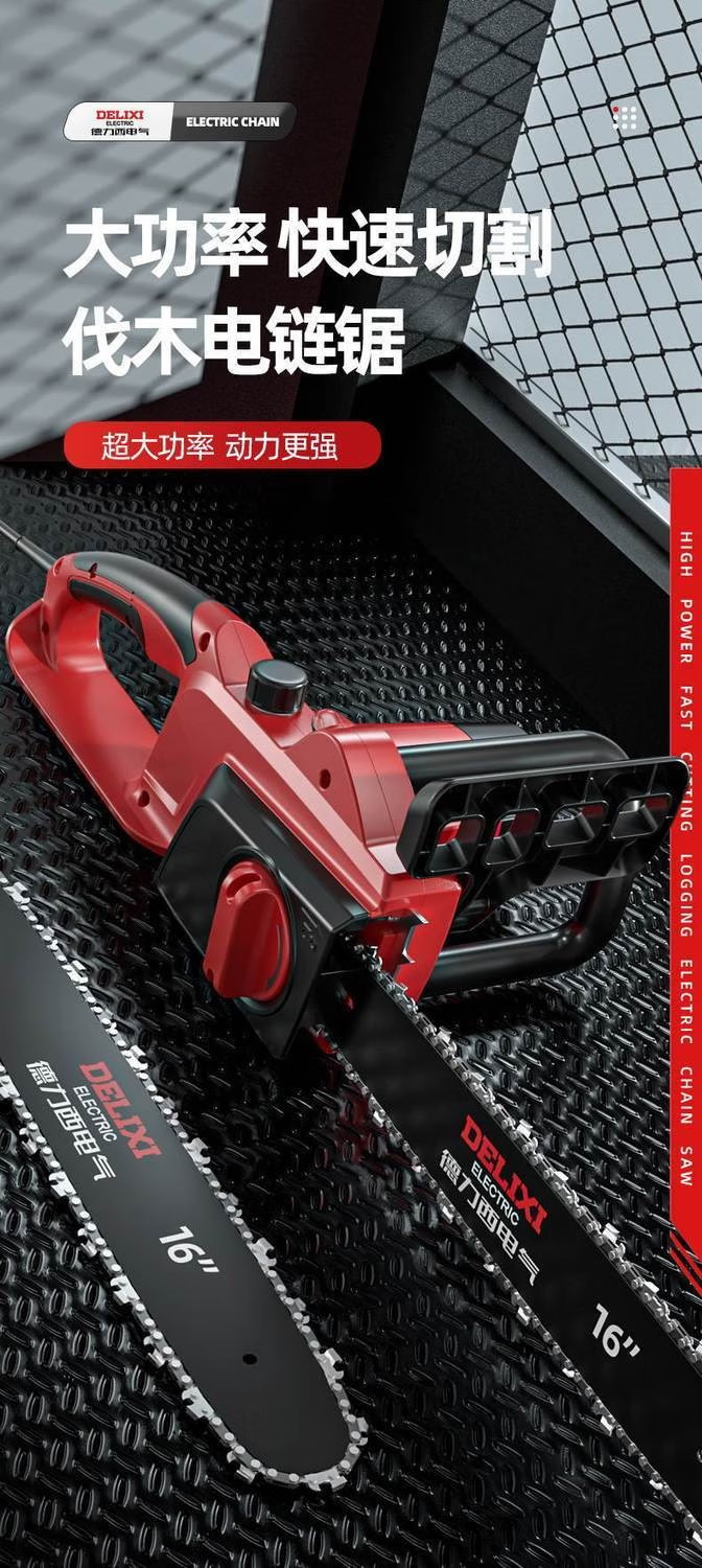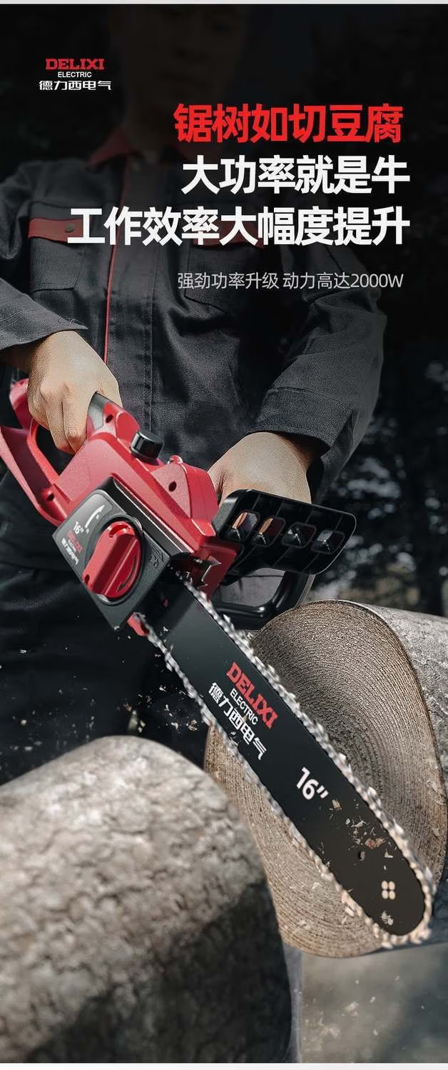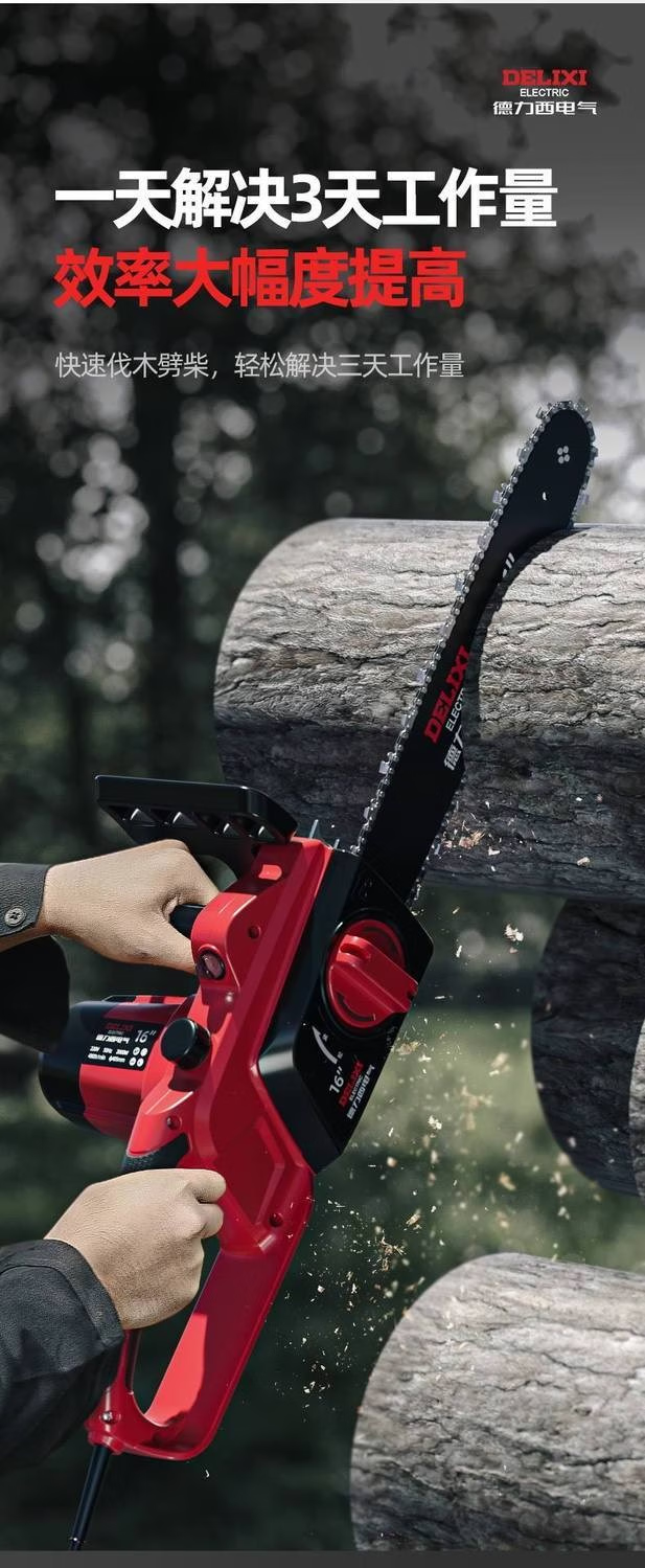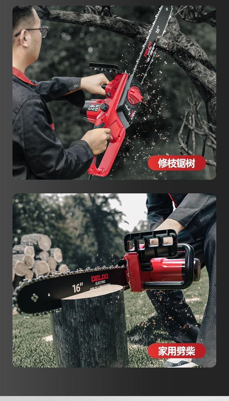 DELIXI ELECTRIC plug-in electric saw for cutting wood, plug-in household 220V electric saw, handheld portable electric chain saw, high-power wired electric saw, 8-inch upgraded model - 2 chains