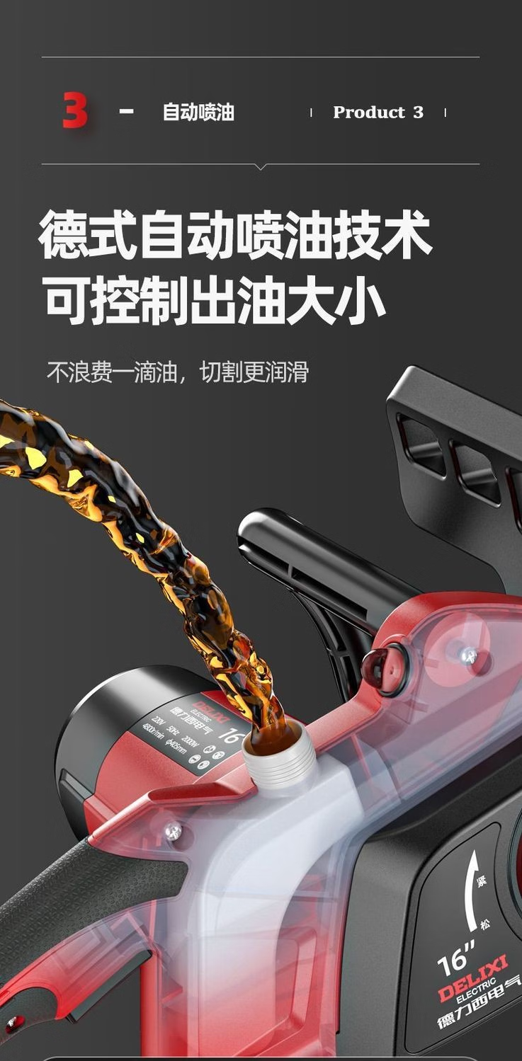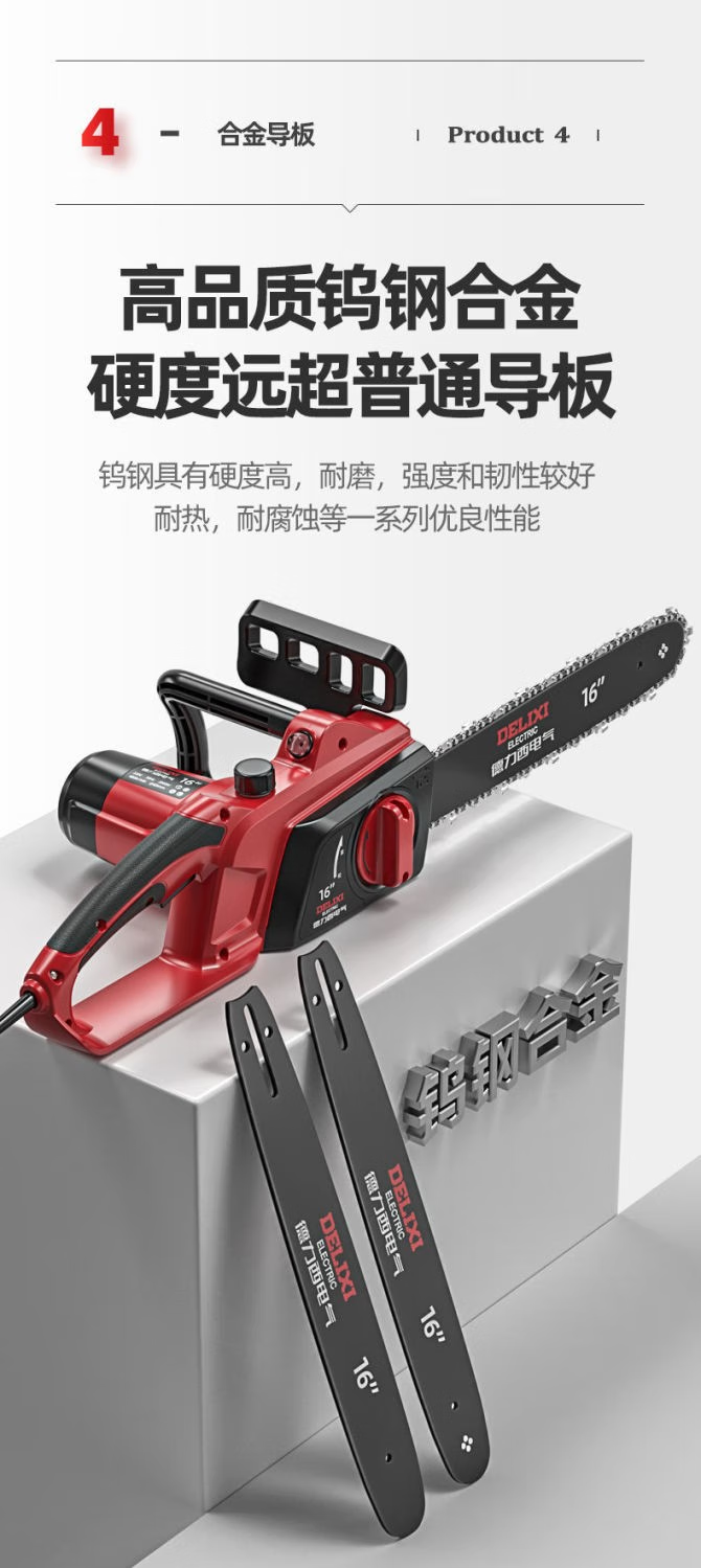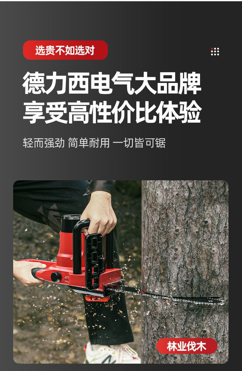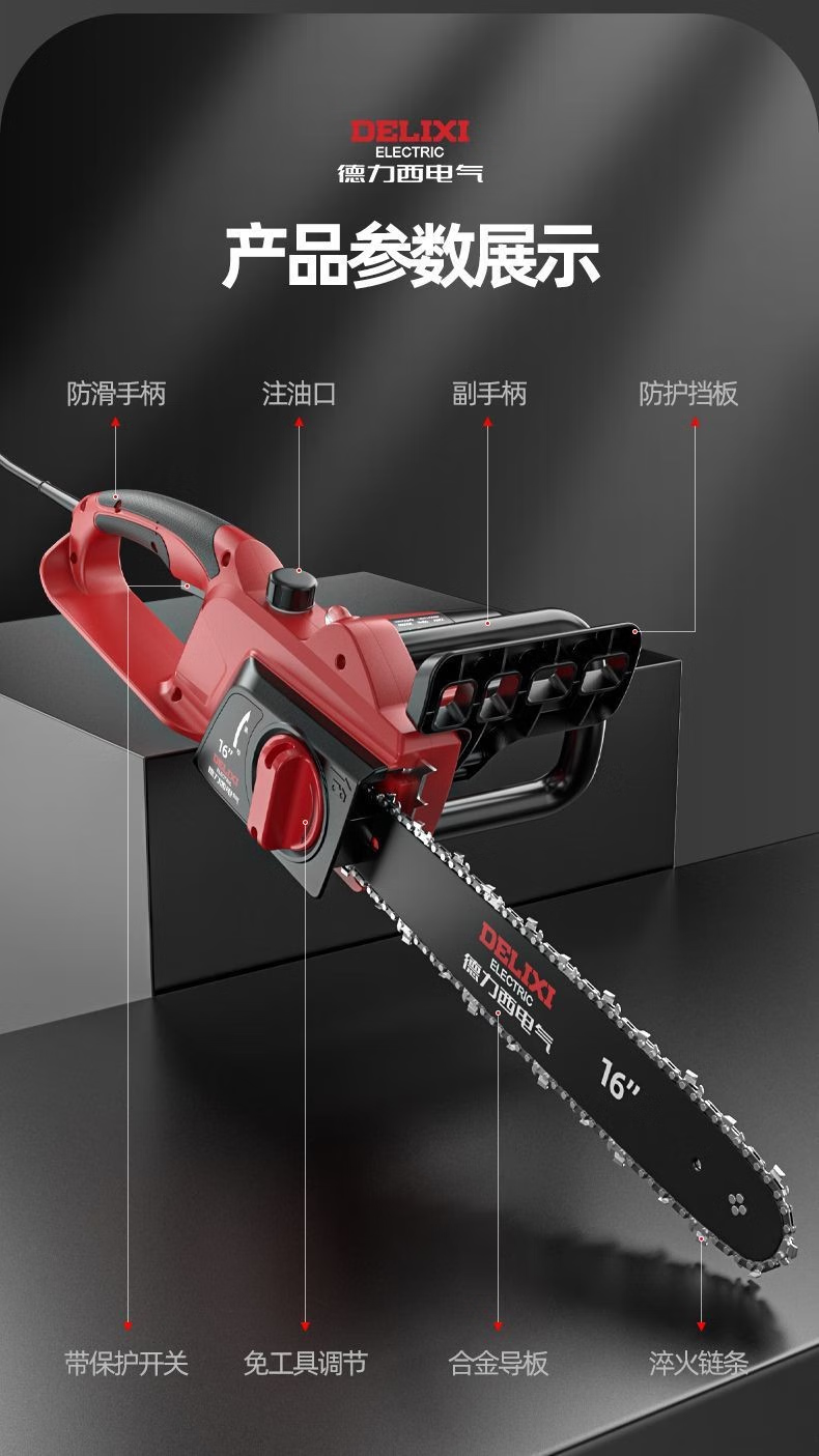 DELIXI ELECTRIC plug-in electric saw for cutting wood, plug-in household 220V electric saw, handheld portable electric chain saw, high-power wired electric saw, 8-inch upgraded model - 2 chains