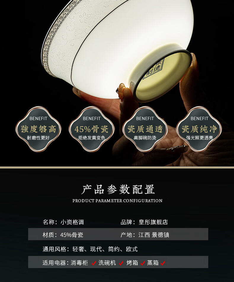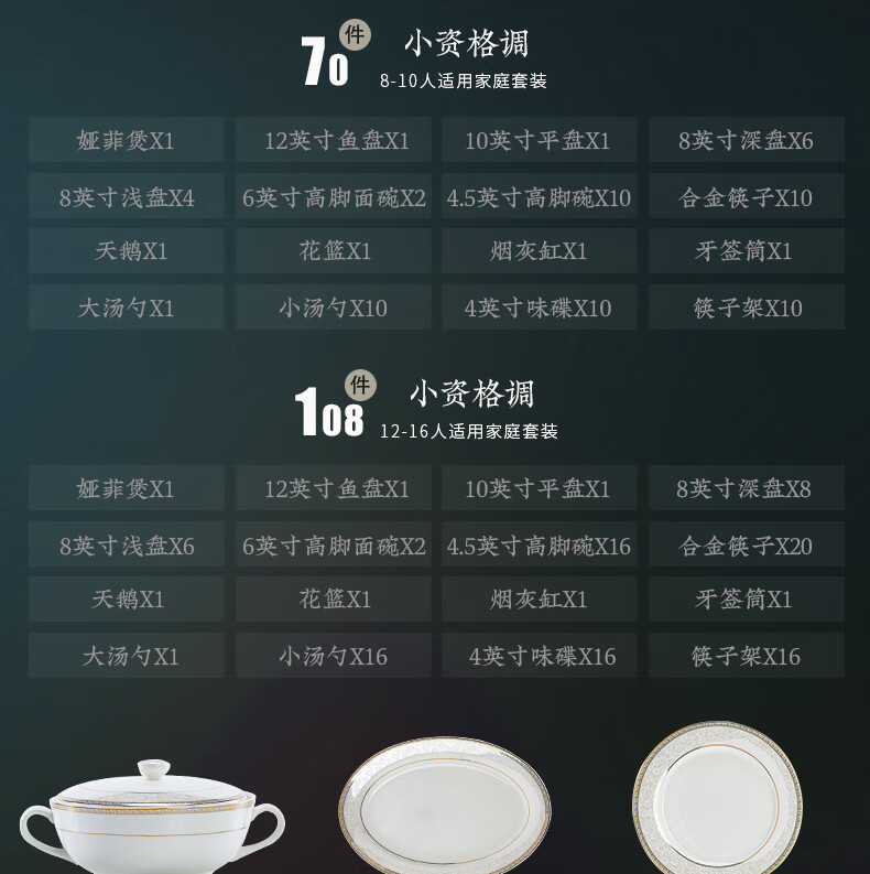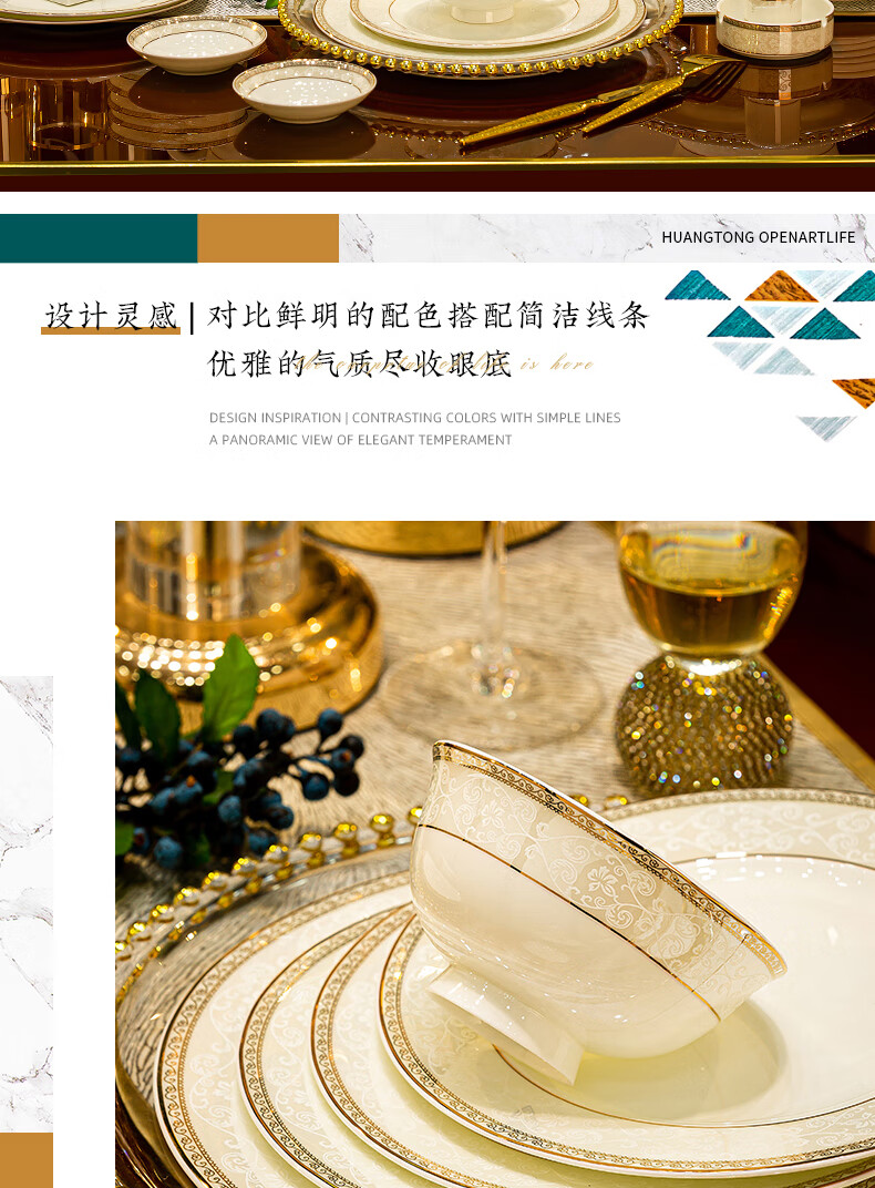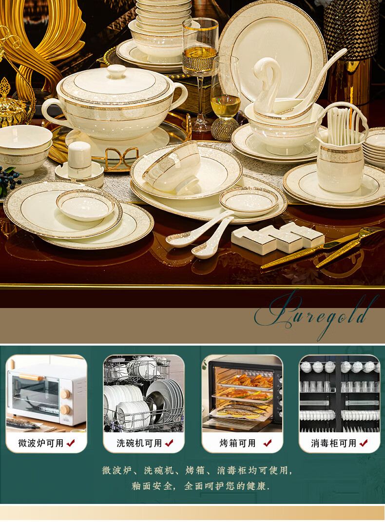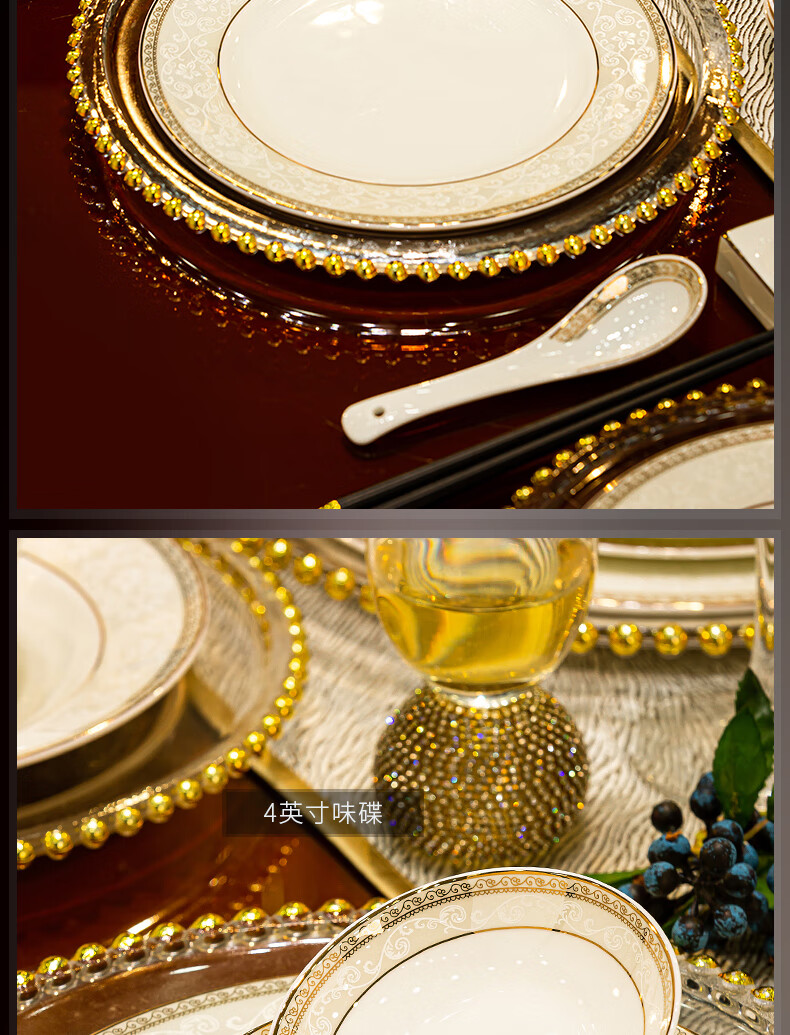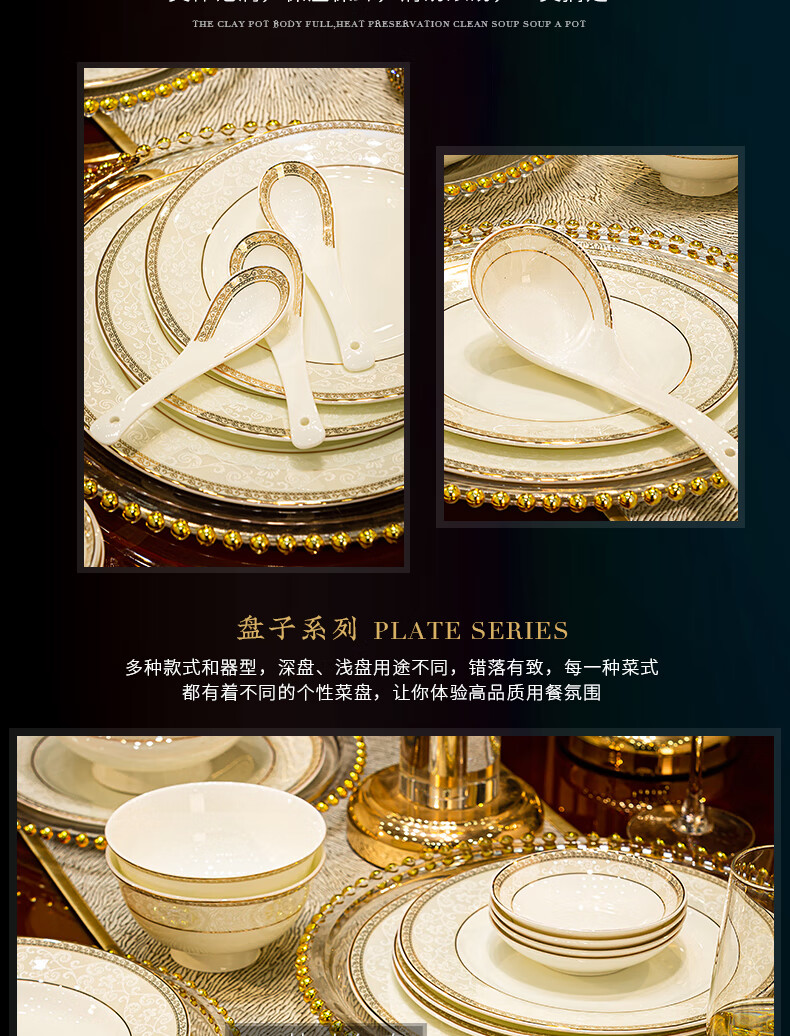 Jingqiu high temperature underglaze color bowl and plate set household European style Jingdezhen high-end bone china tableware complete set of bowl and plate set for housewarming underglaze color small qualification transfer 10 people suitcase 60 pieces