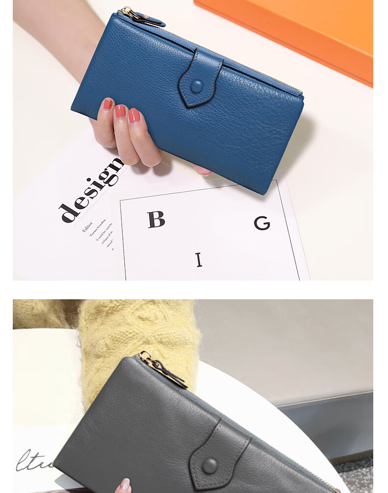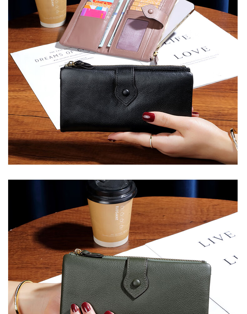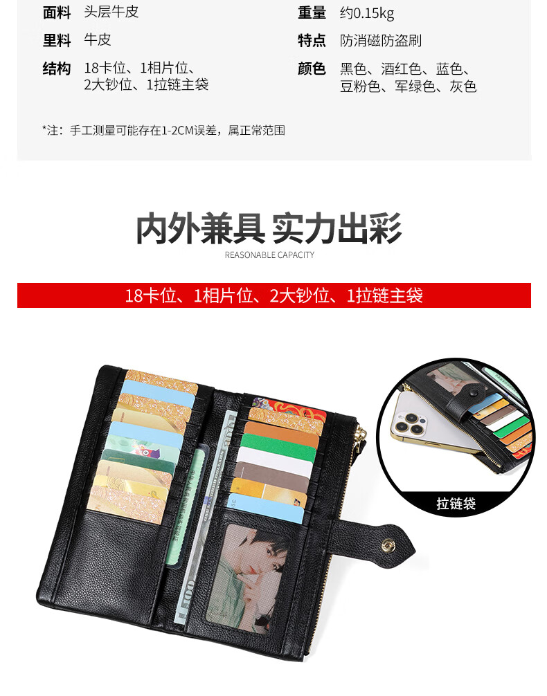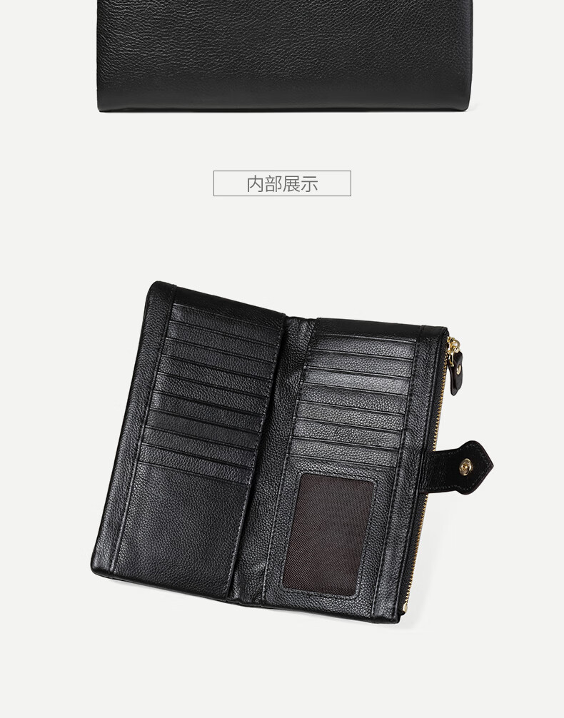 Sephoron New Year's Leather Inside and Outside 18 Card Slots Long Wallet Ultra-Thin Large Bill Holder Soft Cowhide Leather Folding Wallet Simple Black - Genuine Leather Inside and Out 18 Card Slots Ultra Thin Style