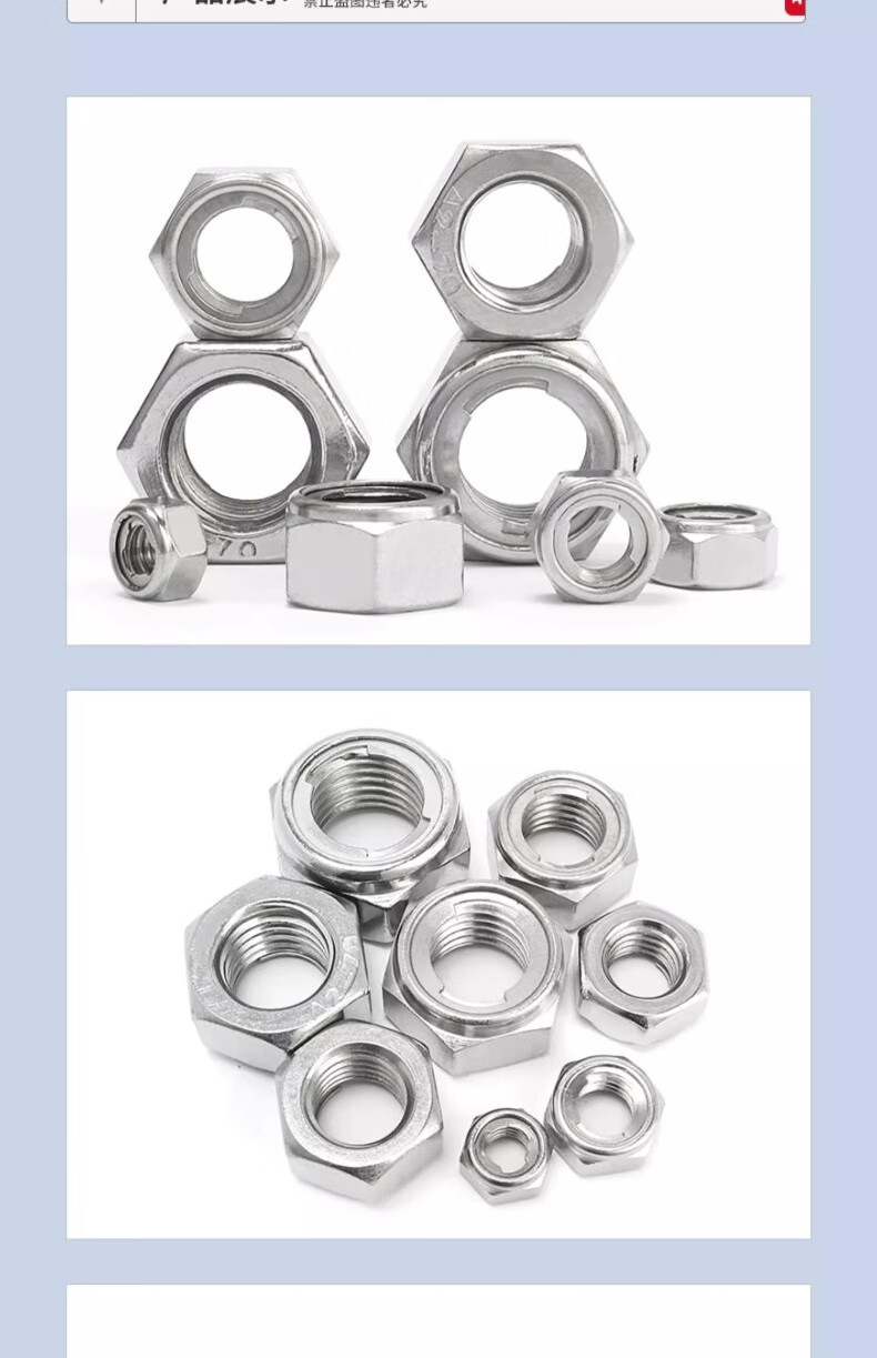 Jinchao 304 stainless steel metal self-locking nut anti-loosening nut M3M4M5M6M8M10 M6 (5 pieces) 316