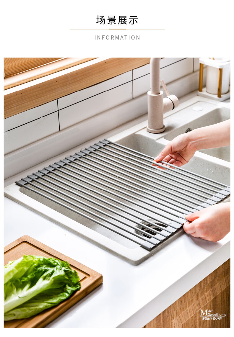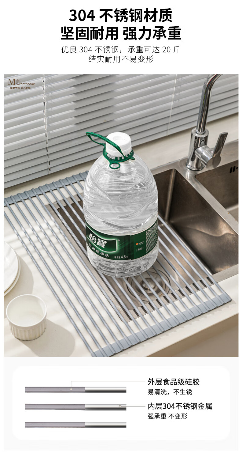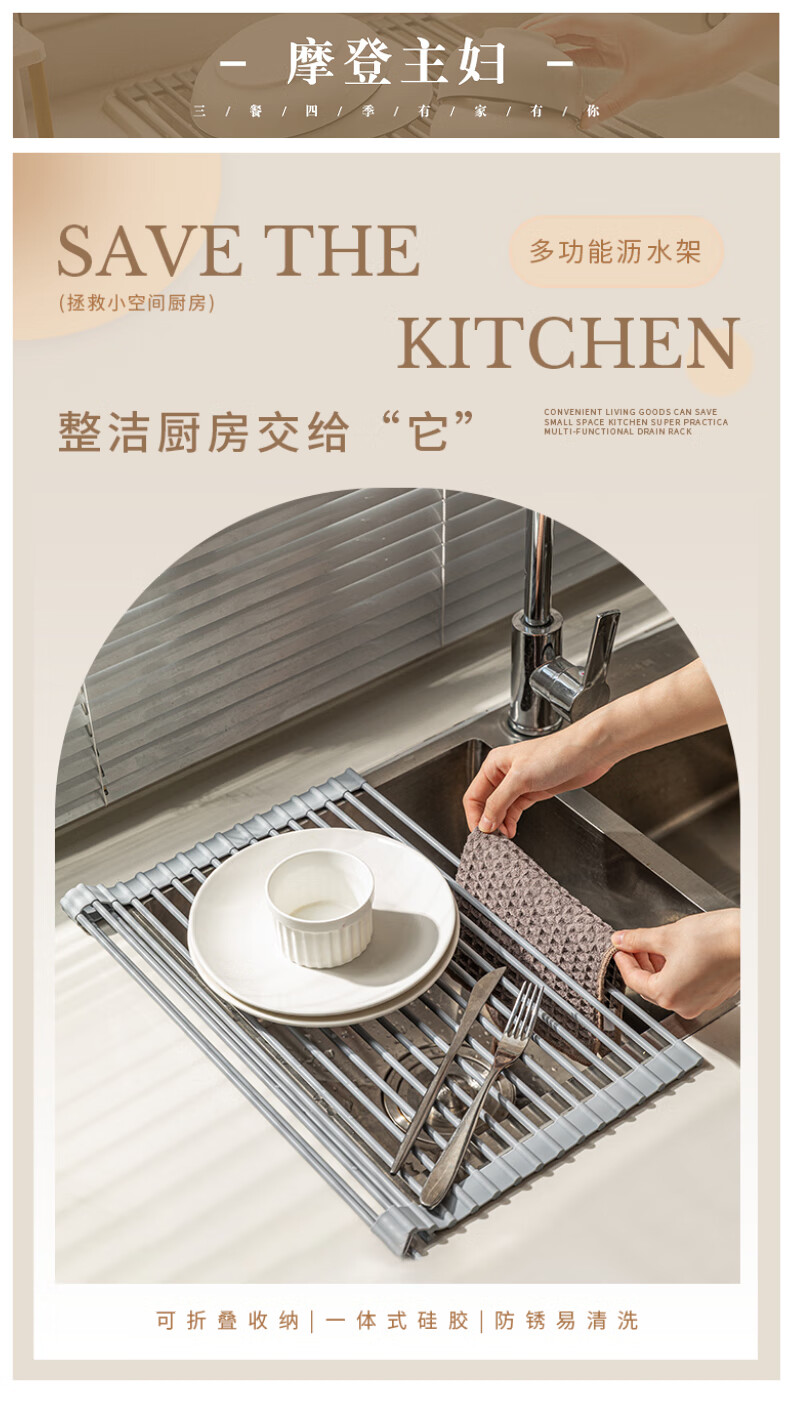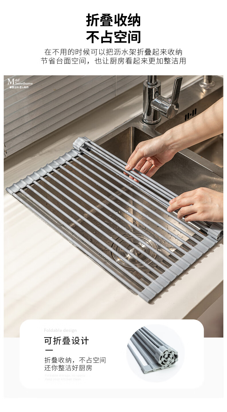 Modern Housewife Kitchen Sink Drain Rack Dish Plate Storage Rack Washing Sink Pool Rack Foldable Storage Rack Silicone Gray Short Rod Drain Rack 18 Rods