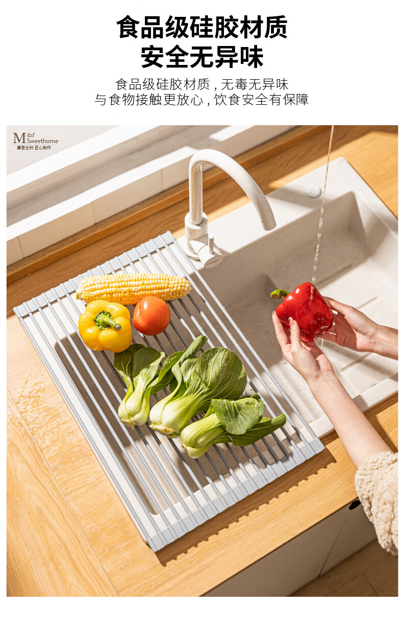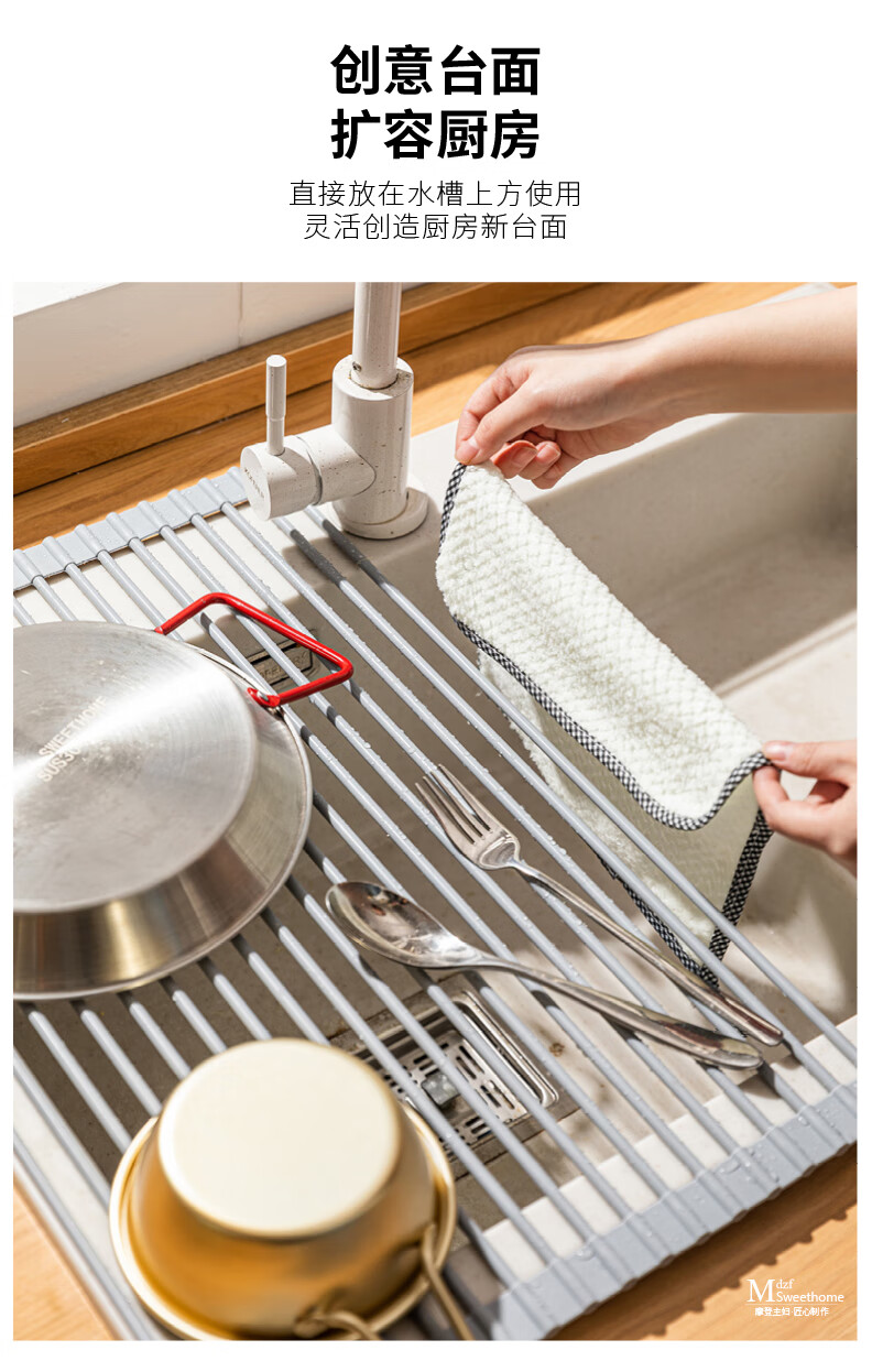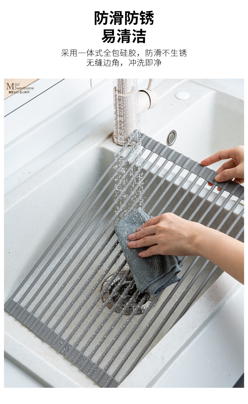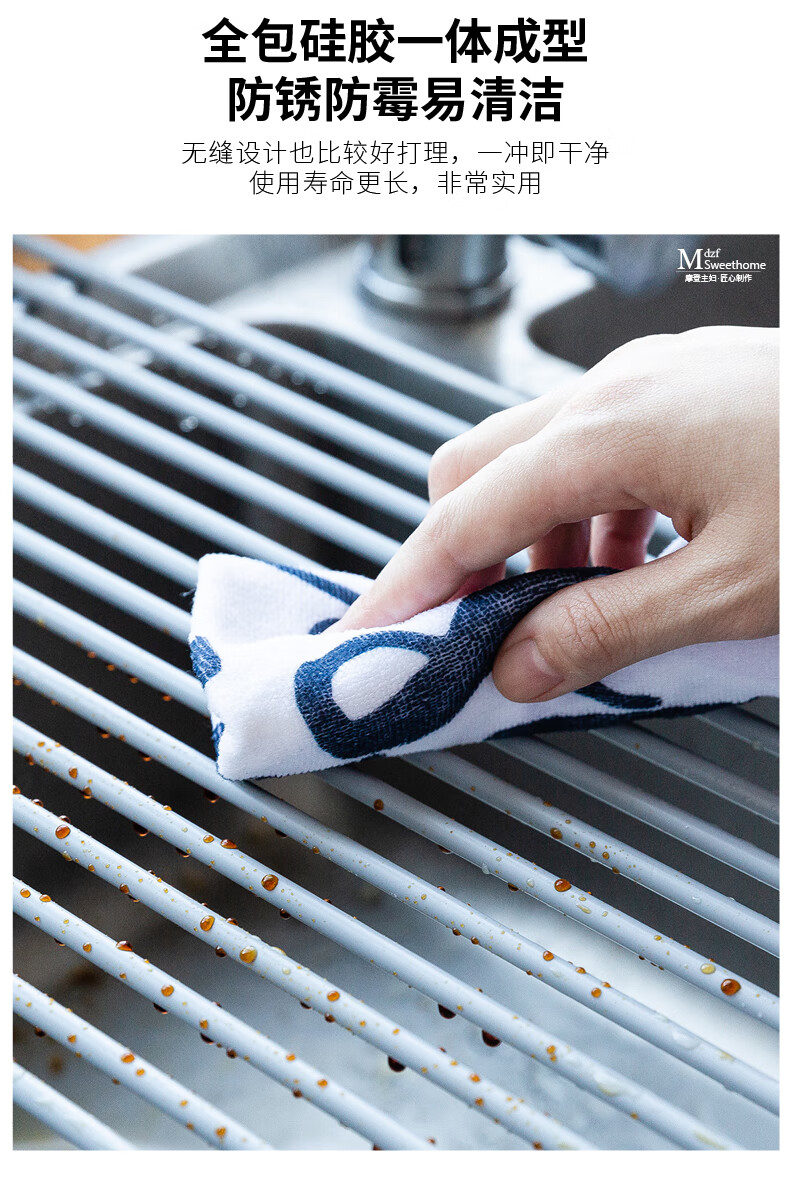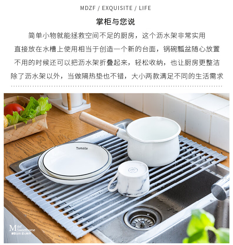 Modern Housewife Kitchen Sink Drain Rack Dish Plate Storage Rack Washing Sink Pool Rack Foldable Storage Rack Silicone Gray Short Rod Drain Rack 18 Rods