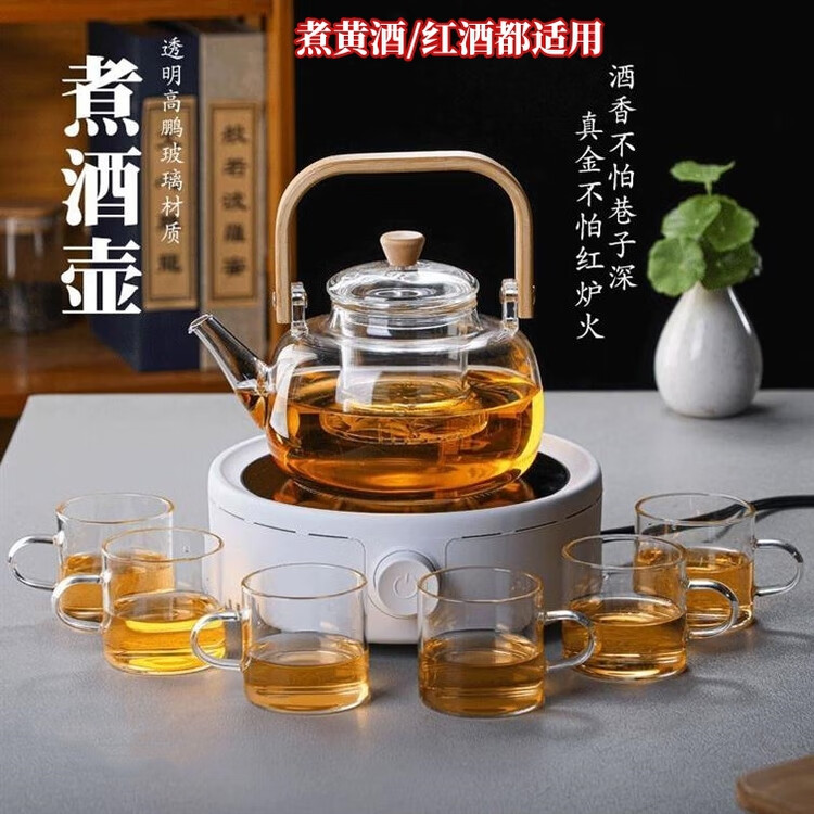 Bei Jingjie yellow wine warmer household hot wine kettle glass nostalgic old-fashioned hot wine kettle red wine boiler electric heating wine kettle handle hot wine kettle 1000ml