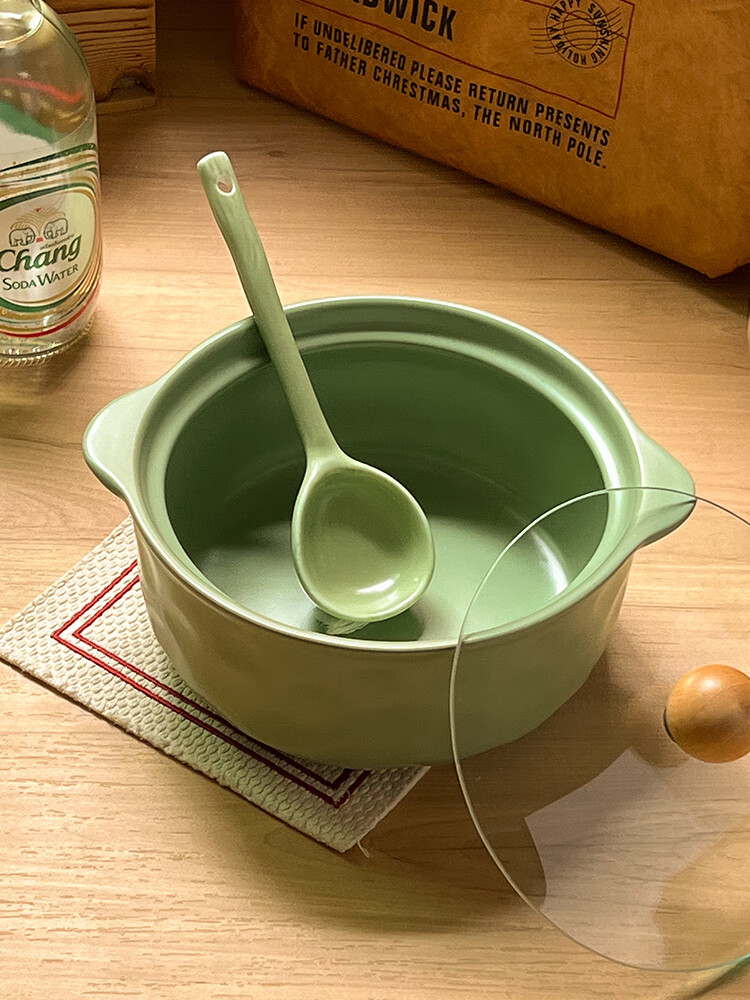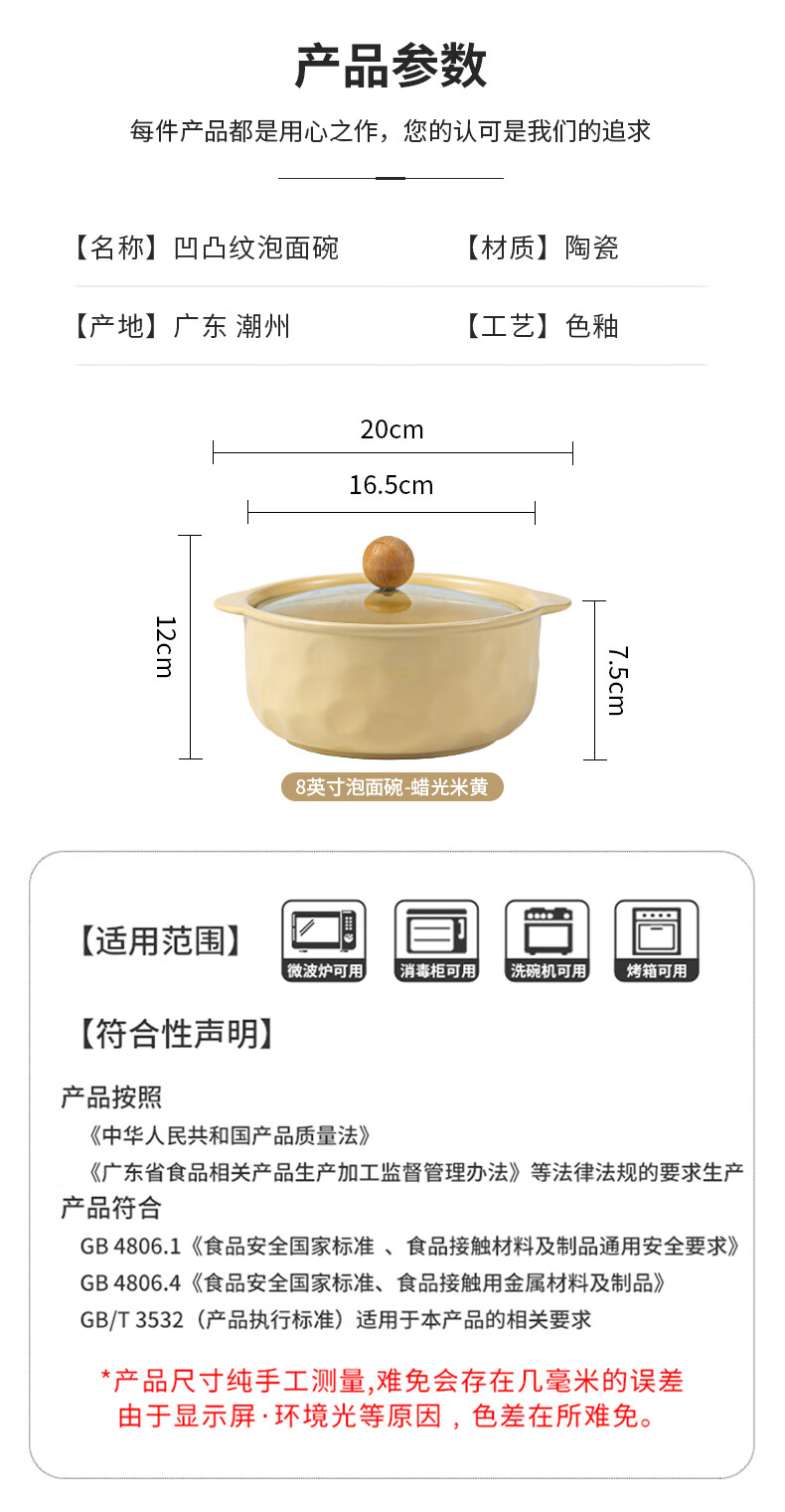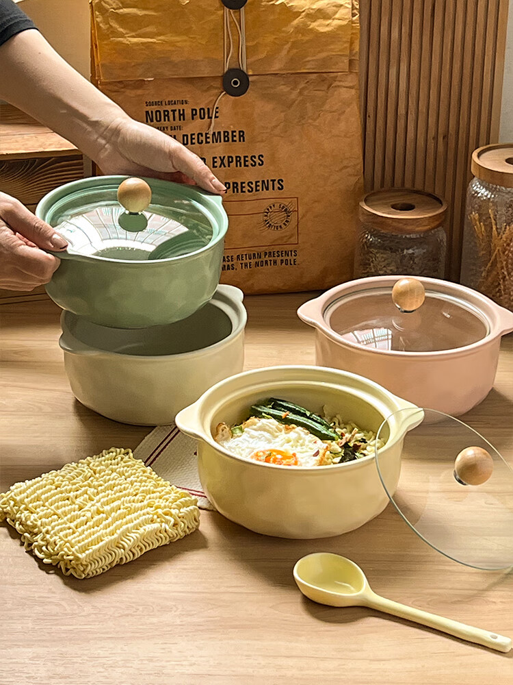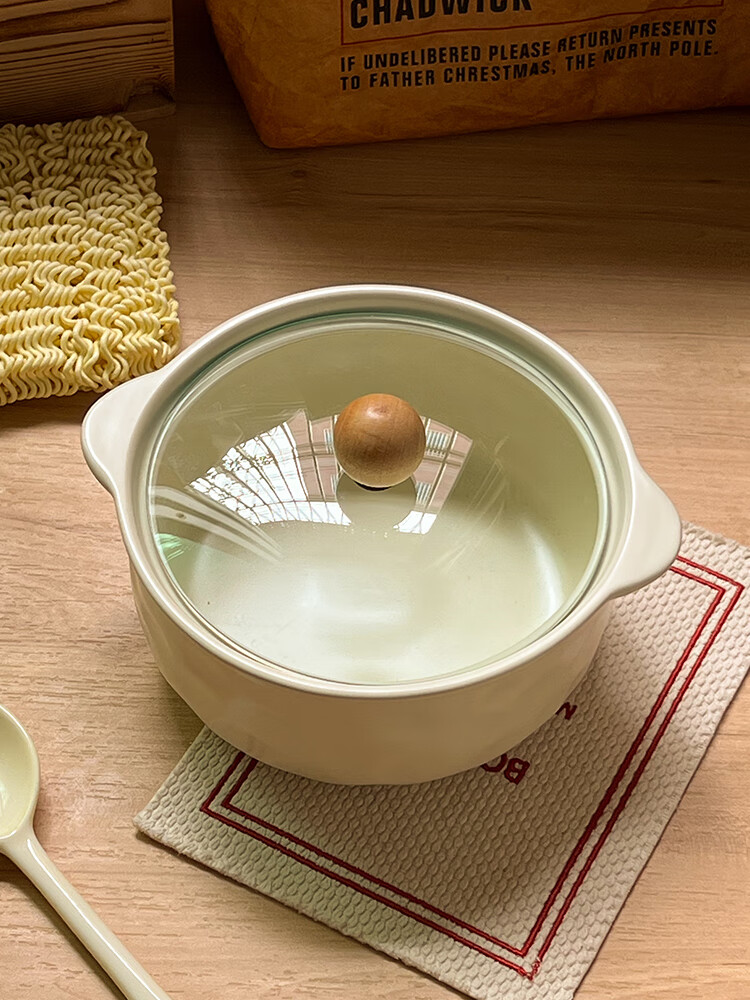 Persson (CERAMICS) cream-style double-eared bowl ceramic instant noodle bowl with lid for snail noodles student dormitory large soup bowl for one person at home double-eared bowl with lid (cream yellow)