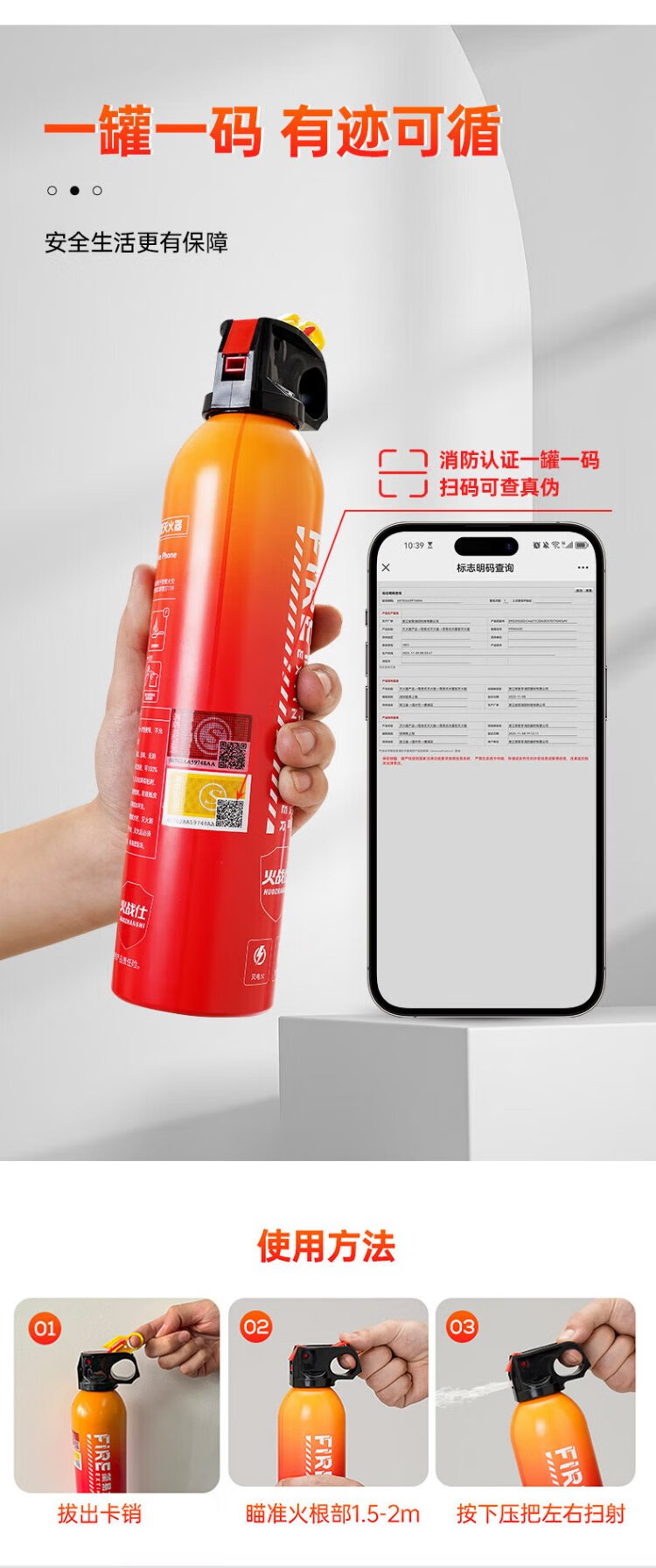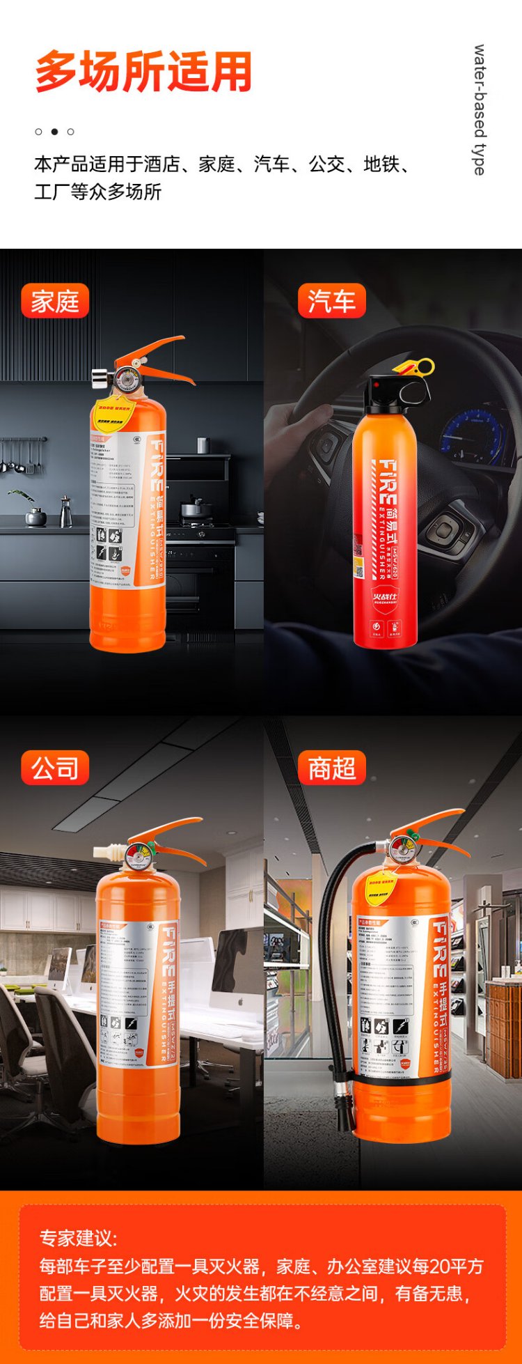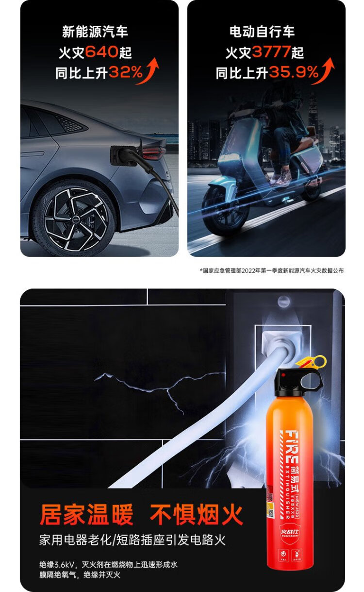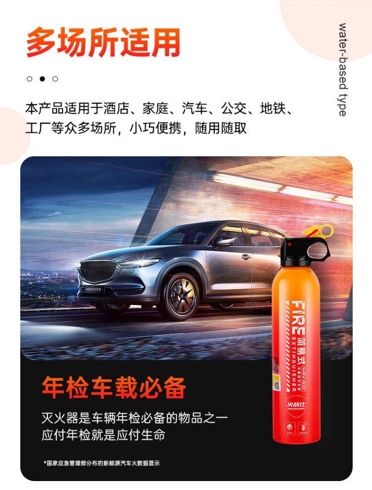 Huozhanshi vehicle-mounted fire extinguisher portable water-based fire extinguishing bottle for private cars 3C certified firefighting vehicle water extinguishing new energy firefighting 620ml water-based vehicle-mounted environmental protection