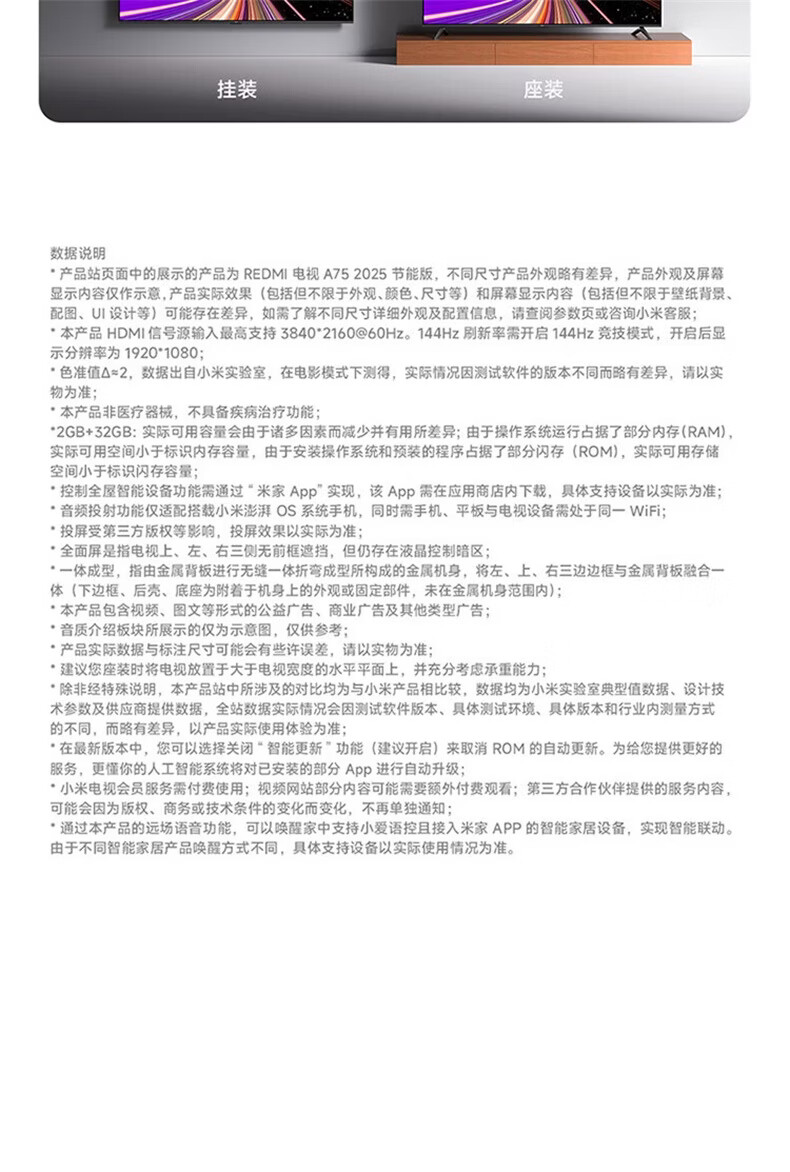 Xiaomi (MI) TV 75-inch 2025 LCD flat-panel TV first-class energy efficiency 4K ultra-high definition Redmi Redmi home living room HDR smart projection screen game color TV trade-in 75-inch super subsidy 4K ultra-high definition 144Hz ultra-high refresh
