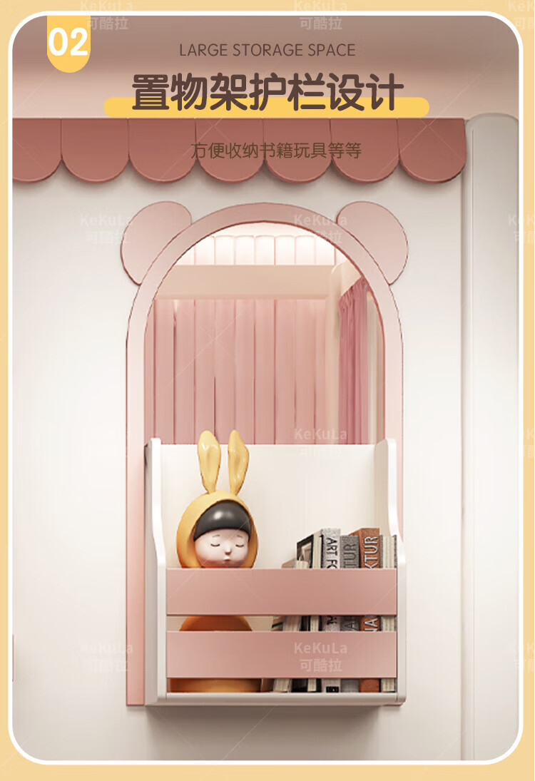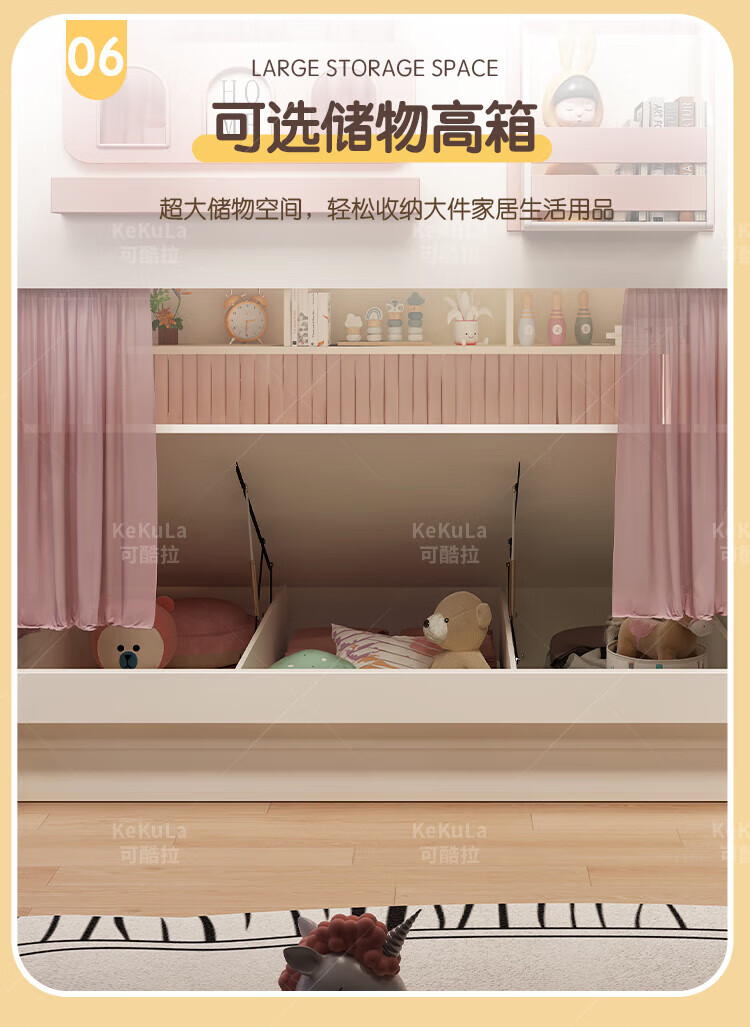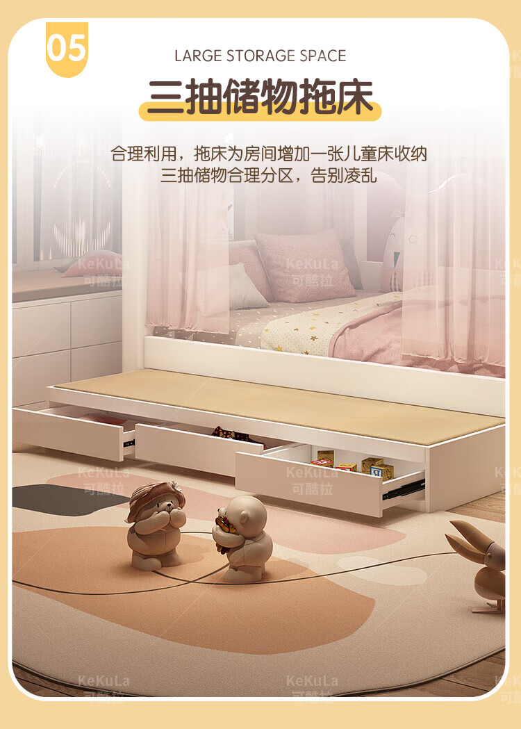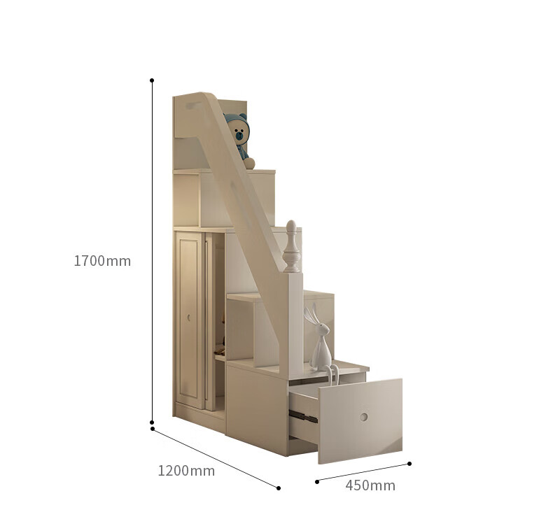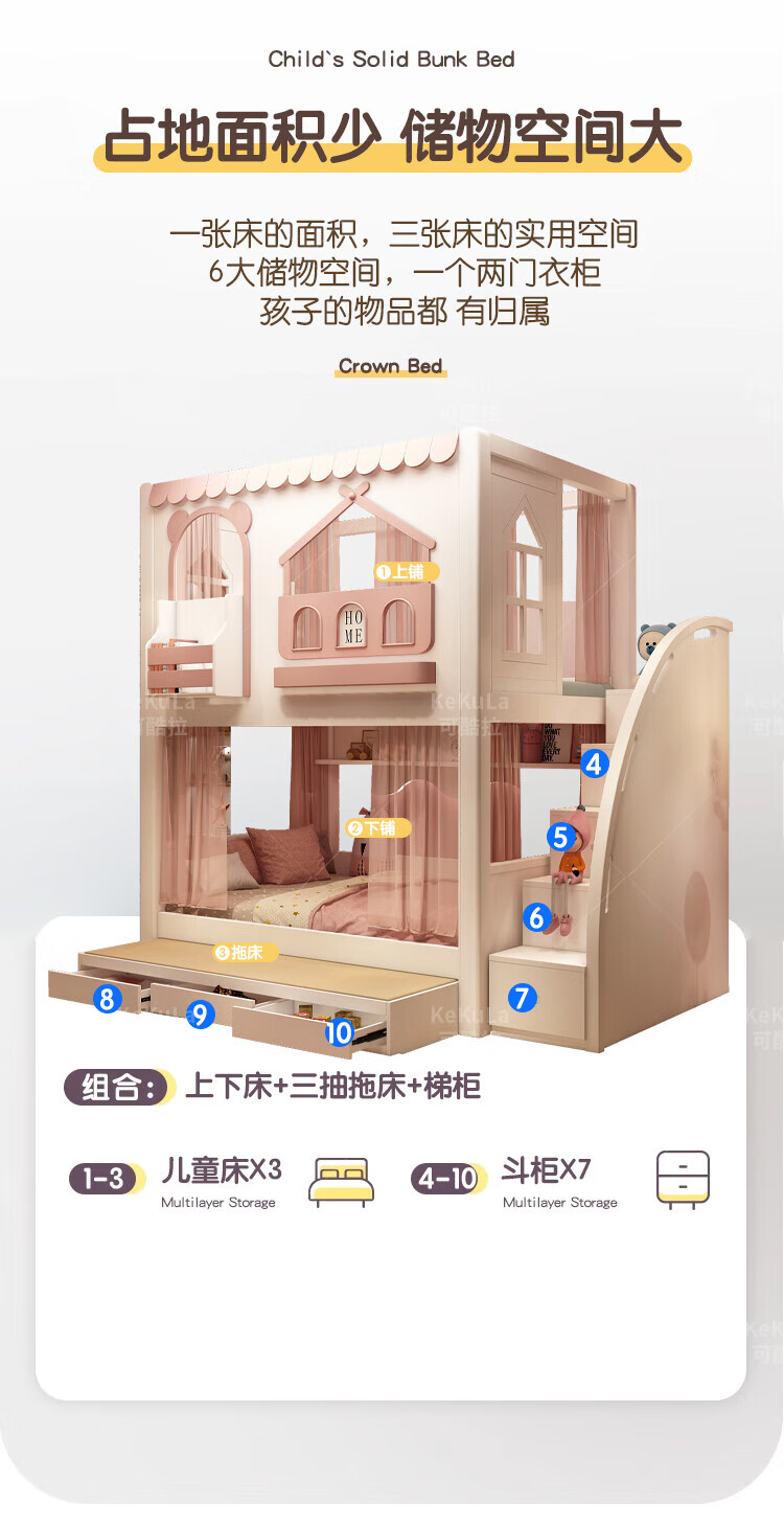 Funager children's bed and bunk bed, two-story tree house, mother bed, same width as upper and lower, princess high guardrail boy and girl bed, high and low bed + ladder cabinet 1.5*1.9 meters (same width as upper and lower)