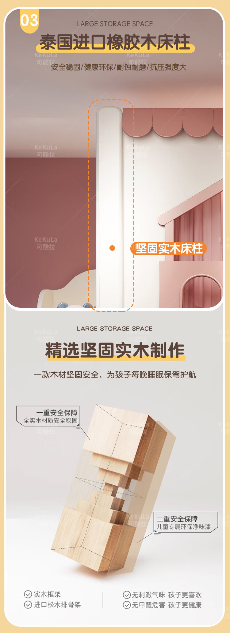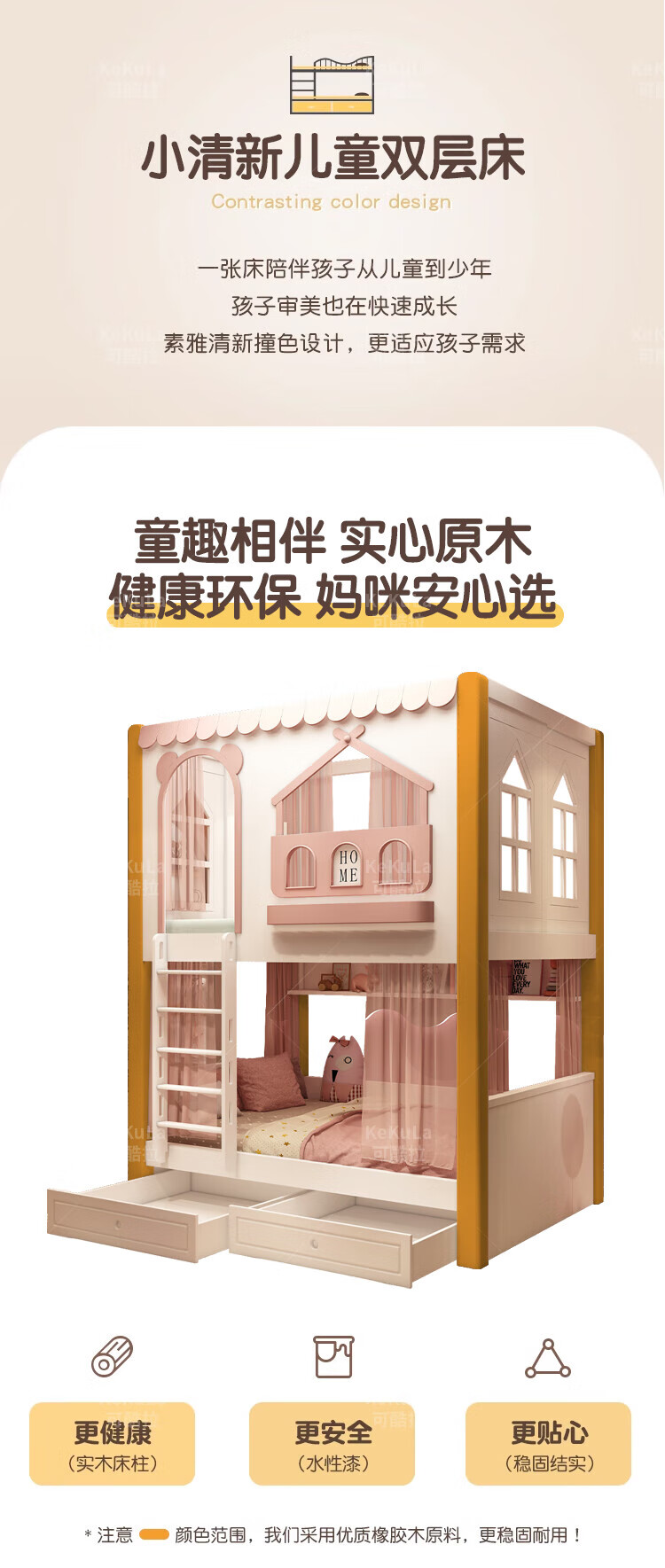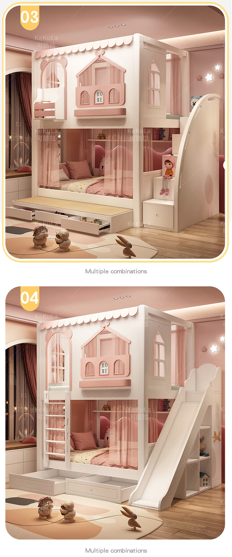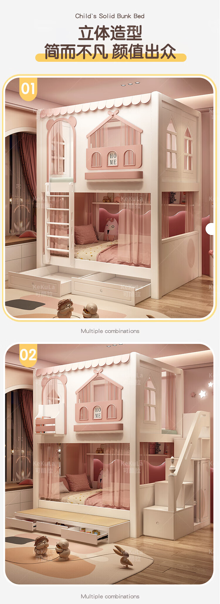 Funager children's bed and bunk bed, two-story tree house, mother bed, same width as upper and lower, princess high guardrail boy and girl bed, high and low bed + ladder cabinet 1.5*1.9 meters (same width as upper and lower)