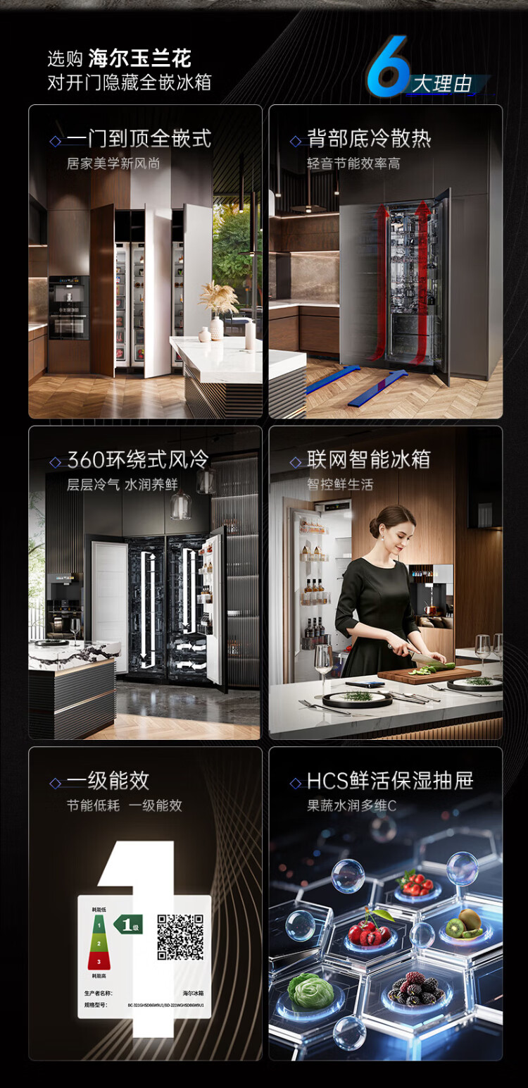 Haier's 25-year new model Magnolia fully embedded refrigerator hidden built-in double-door ultra-thin double door built-in large-capacity refrigerator refrigeration + freezing combination