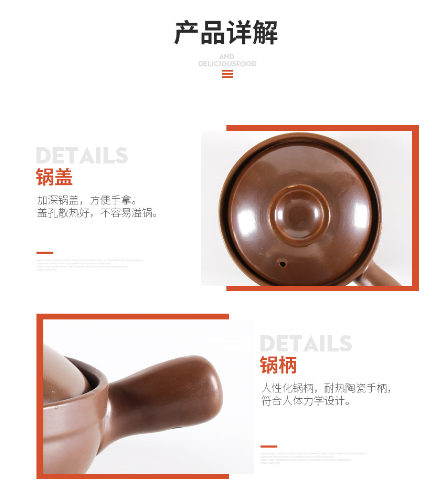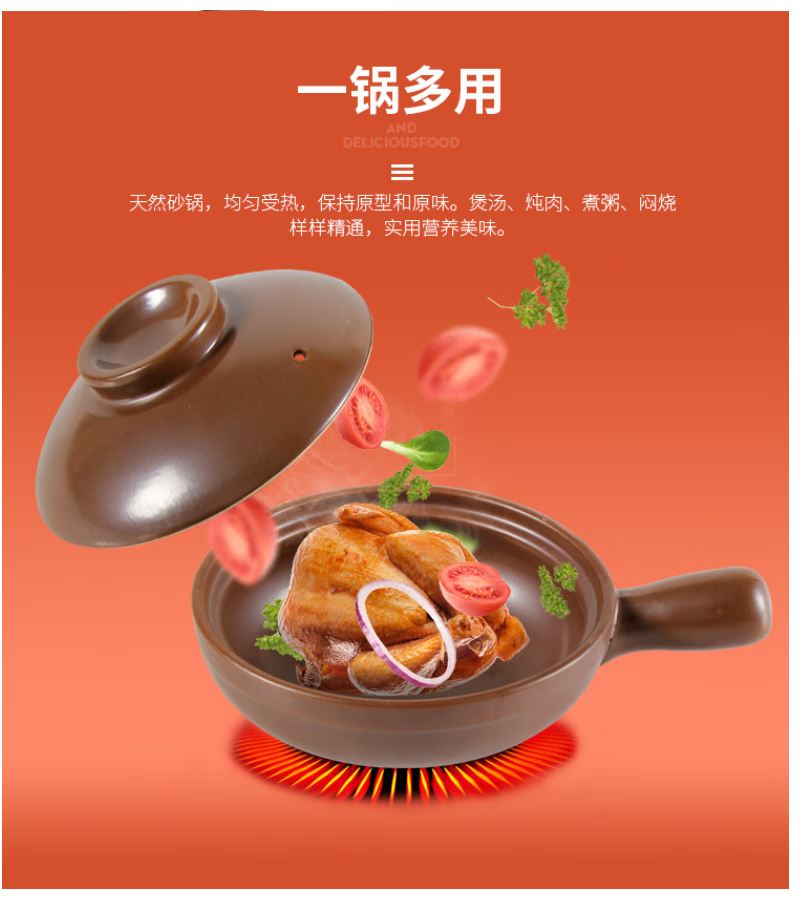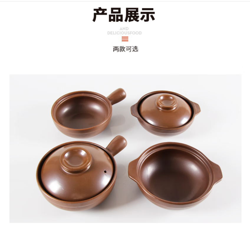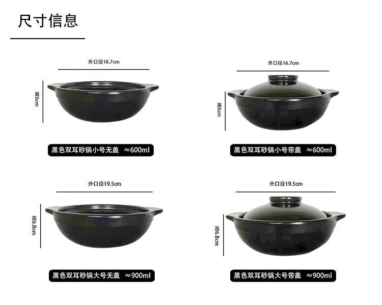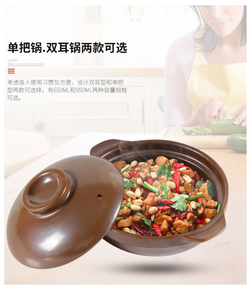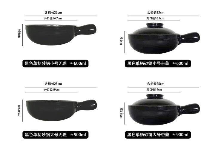 Baichunbao commercial small casserole with handle, open flame gas yellow stewed chicken and rice pot with handle, clay pot for rice noodle, 1ml, side handle, lid, 650 ml, small size, lid is too small