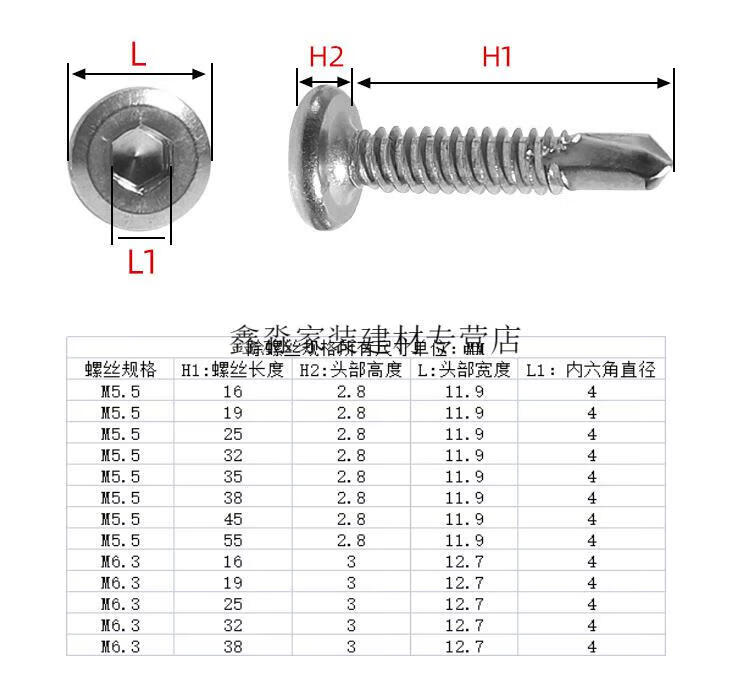 Dixin flat head hexagonal drill tail 410 stainless steel M5M6.3 self-tapping screws self-drilling dovetail screws/guardrail special nails 5*16 1500 pieces in a box