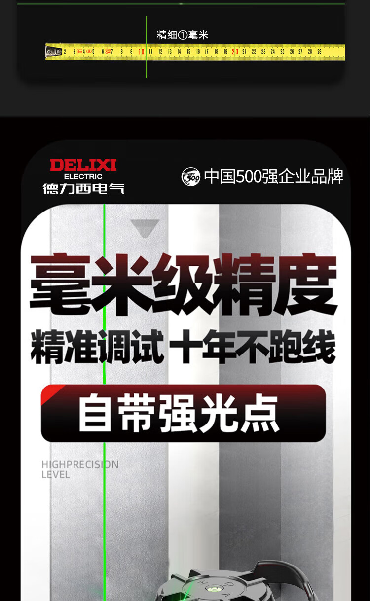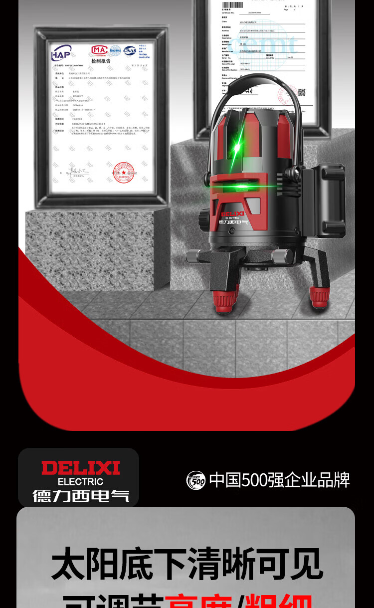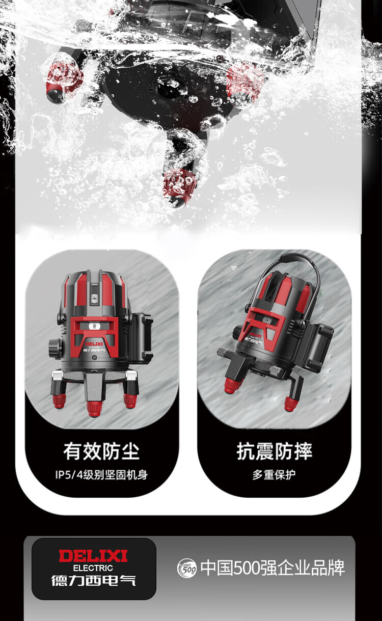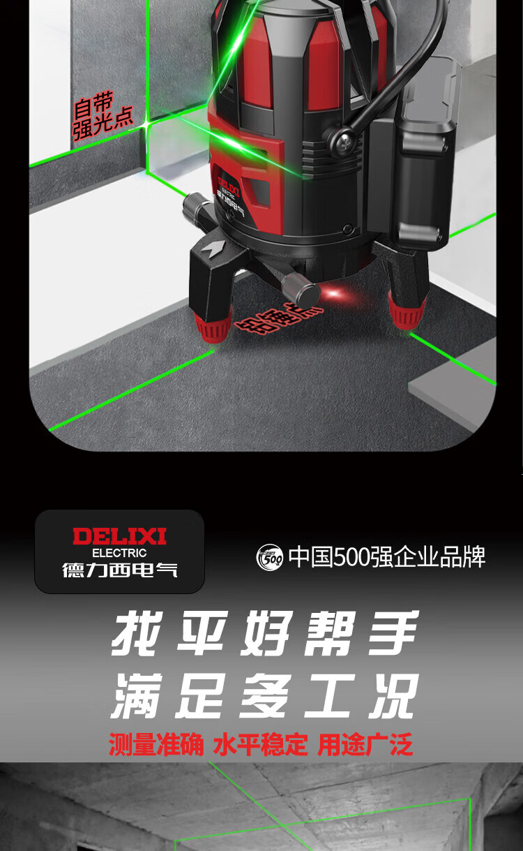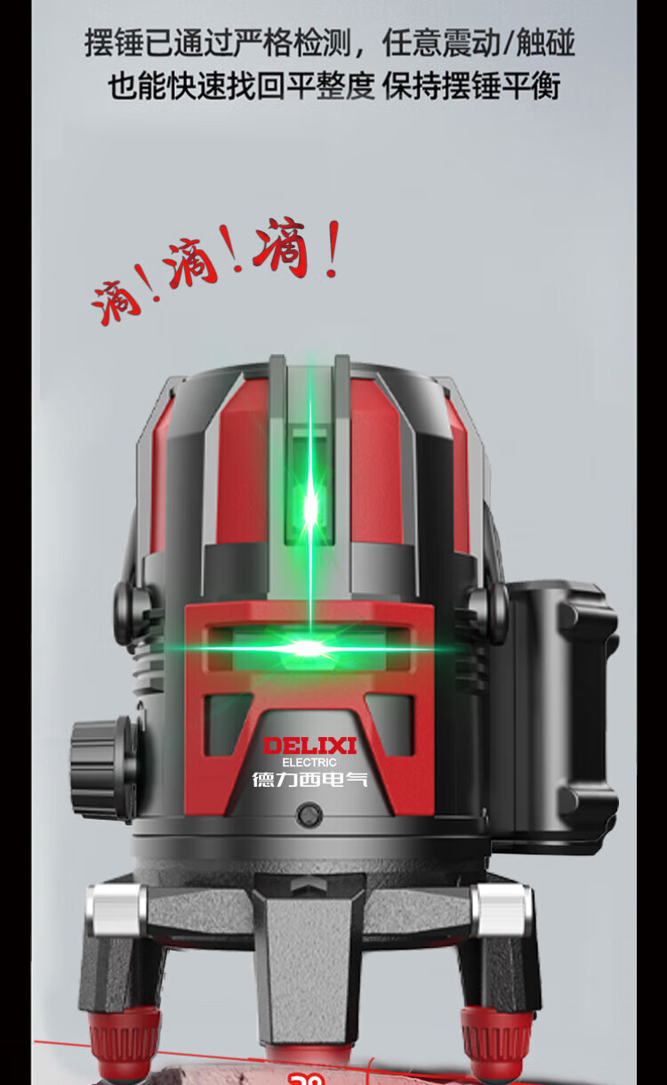 Delixi Electric Infrared Level High-precision Strong Light Thin Line Automatic Leveling Green Light Outdoor Outdoor Building Portable Laser 2-Line Imported Green Light Digital Display Dual Electric