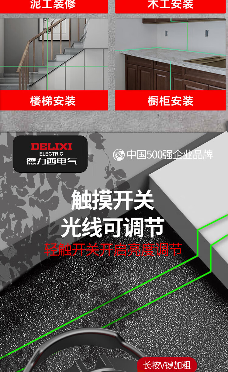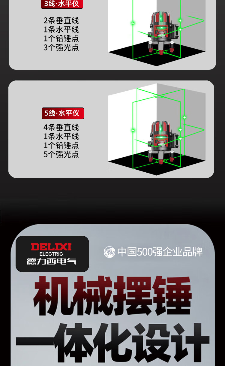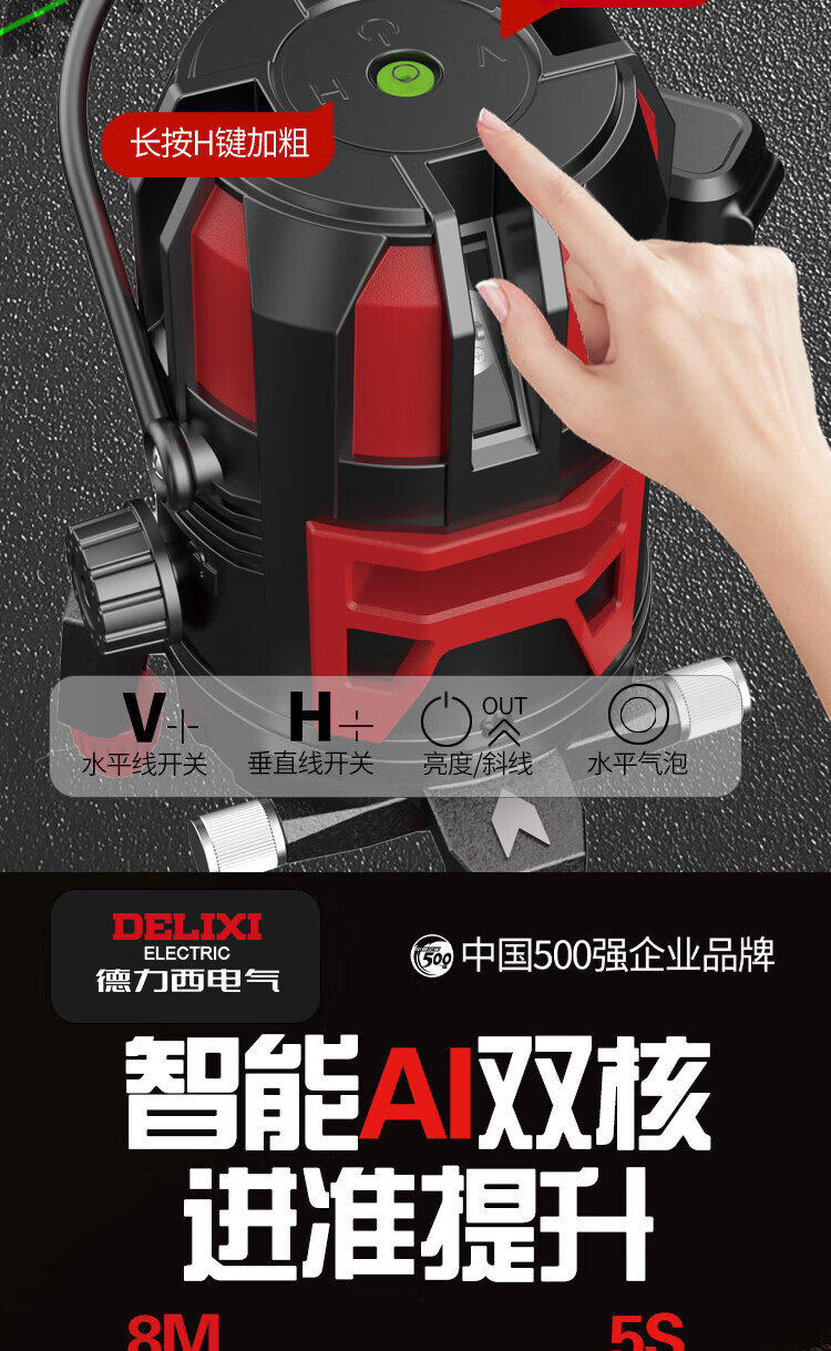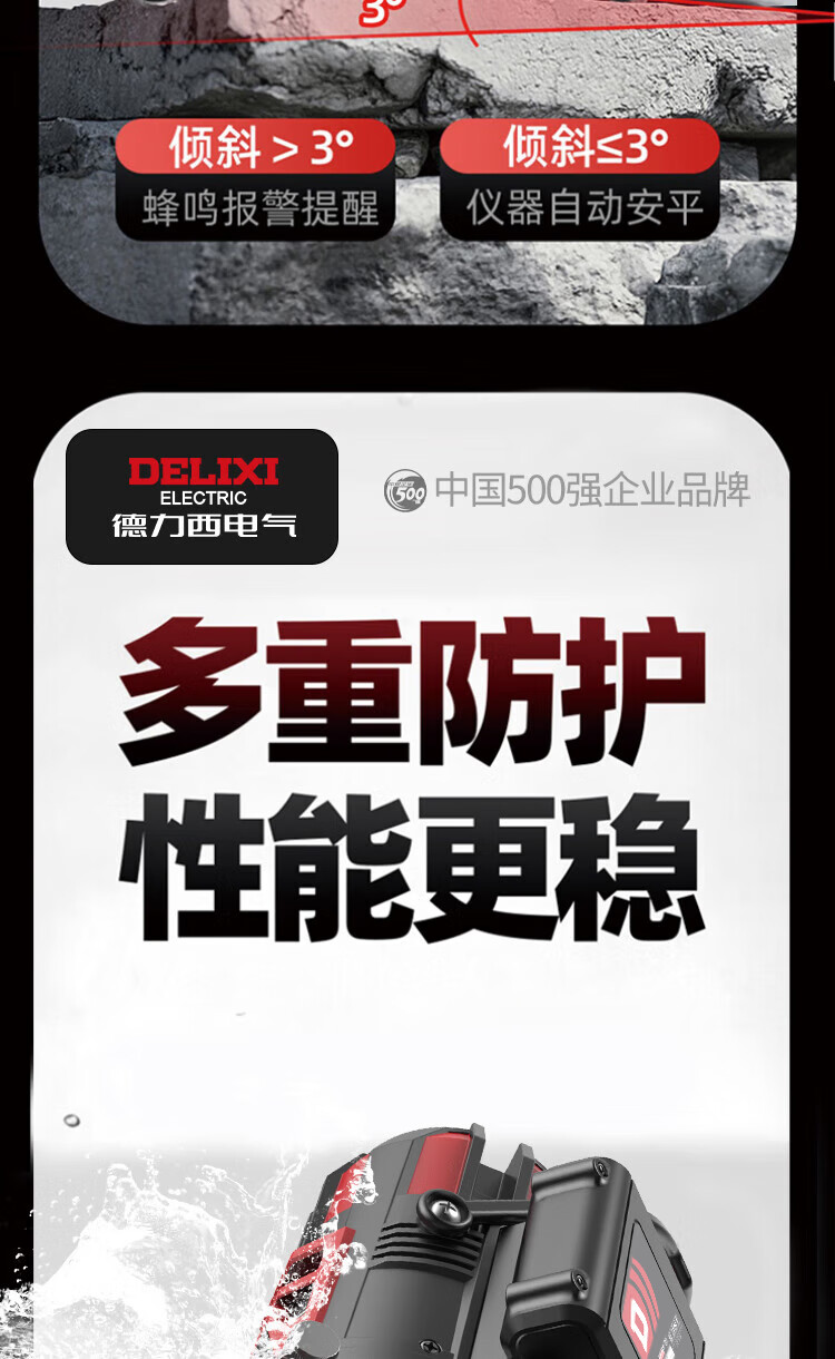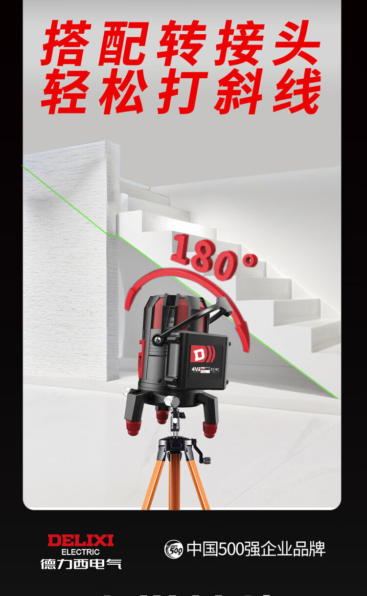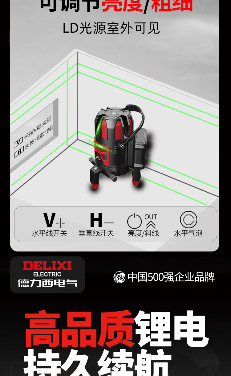 Delixi Electric Infrared Level High-precision Strong Light Thin Line Automatic Leveling Green Light Outdoor Outdoor Building Portable Laser 2-Line Imported Green Light Digital Display Dual Electric