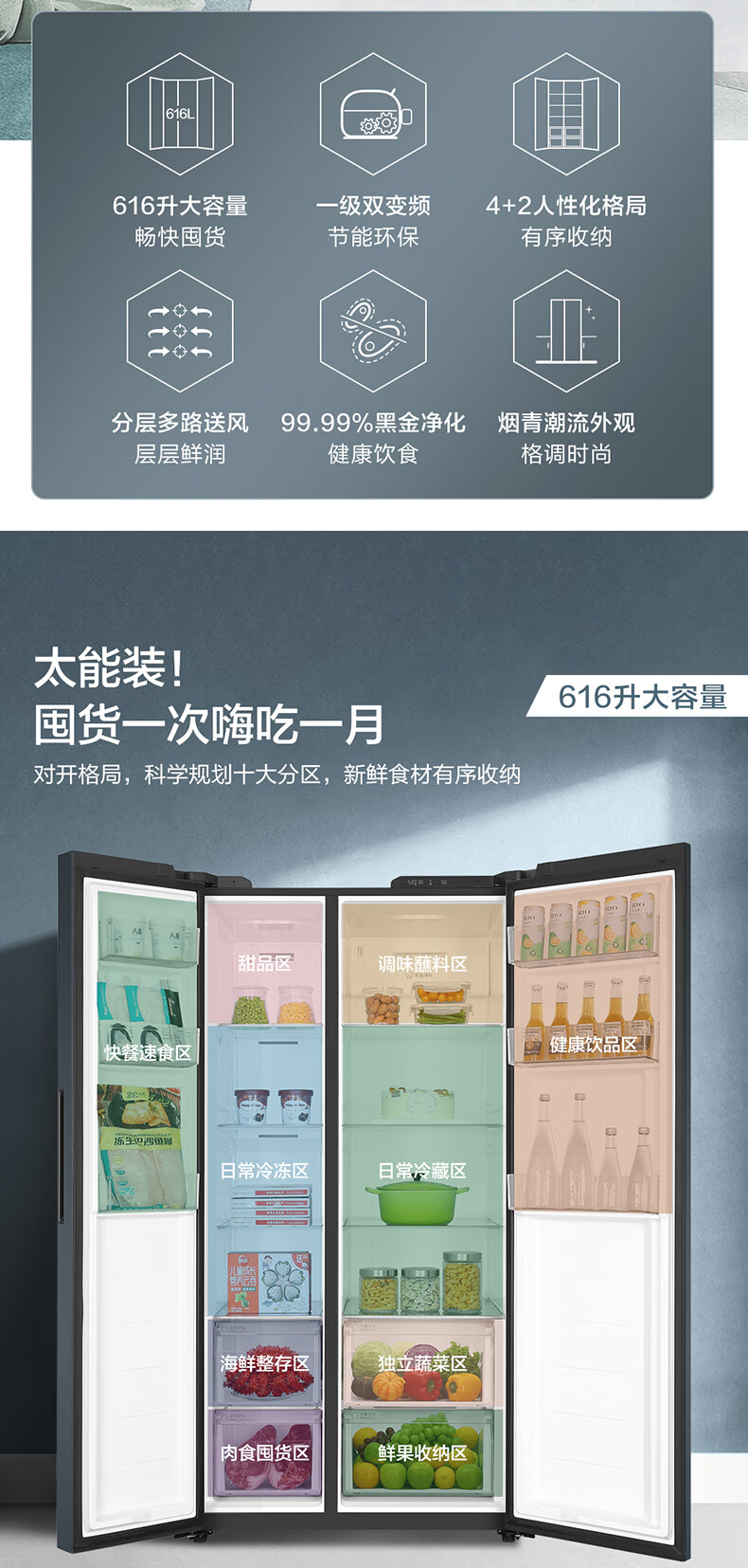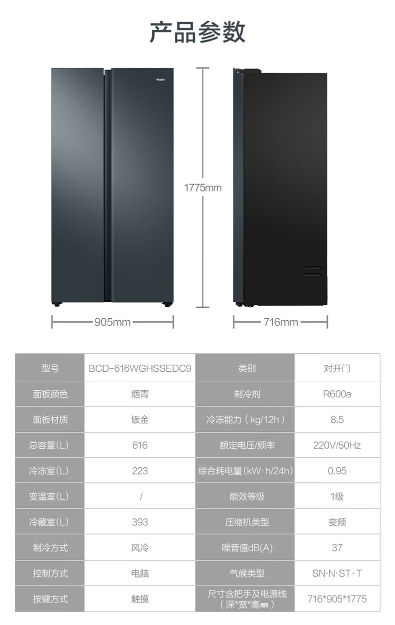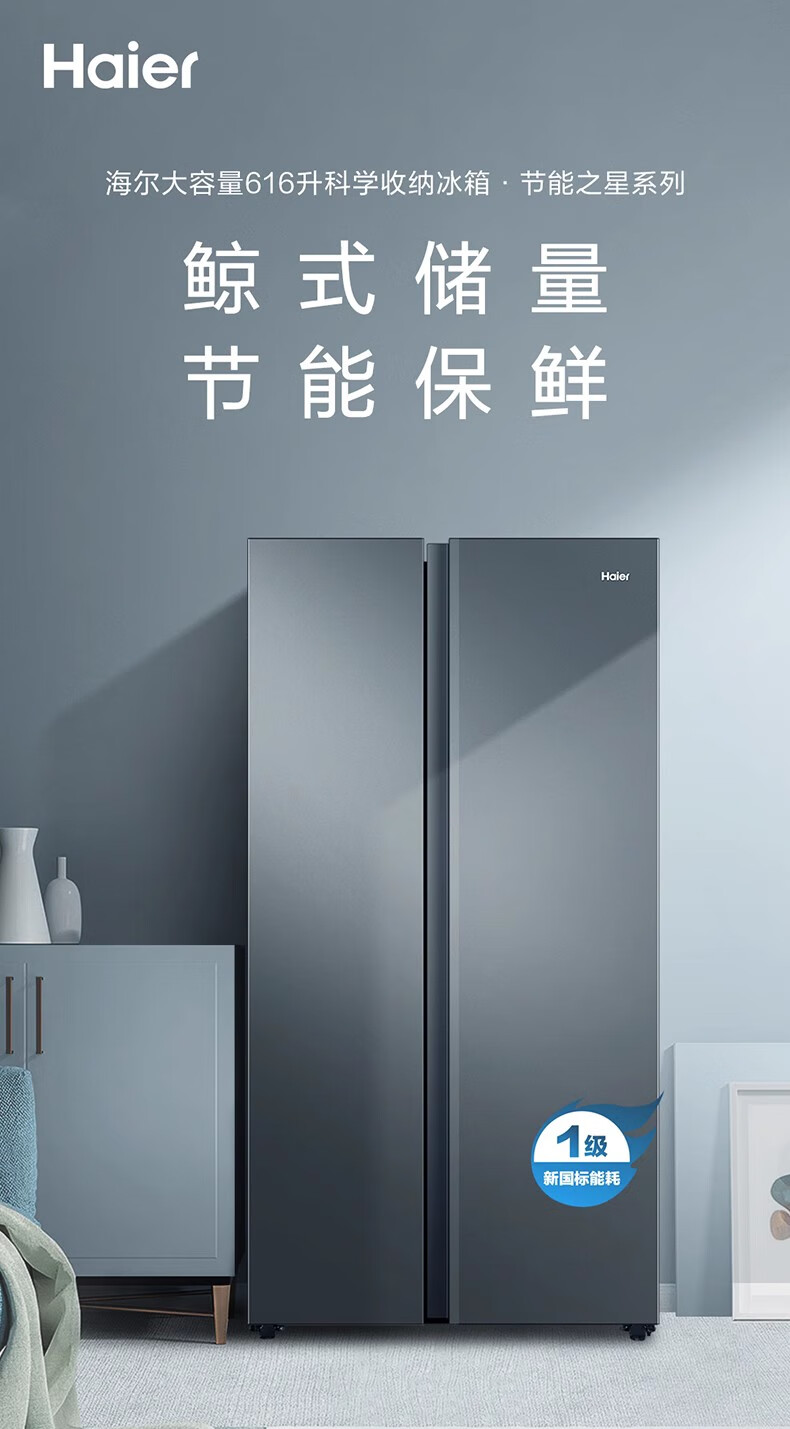 Haier refrigerator 616L double door frequency conversion embedded BCD-616WGHSSEDC9 frost-free first-class double door large capacity 616L multi-channel air supply