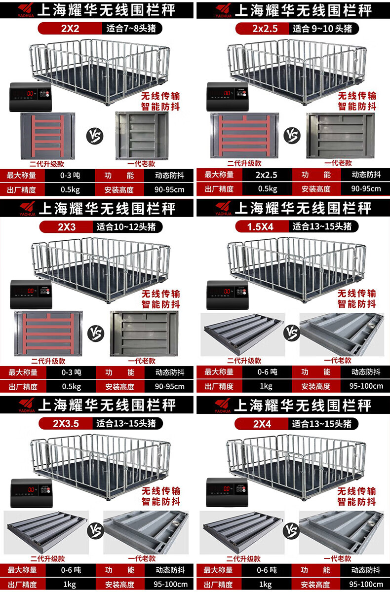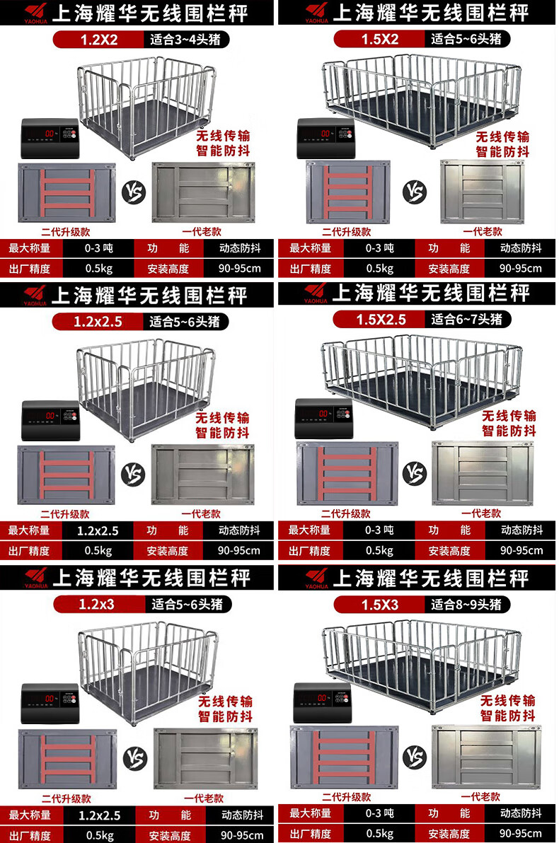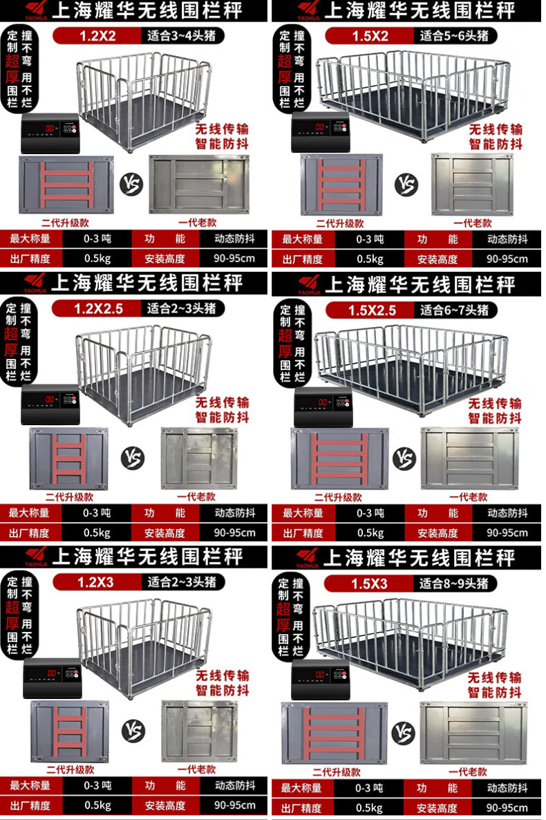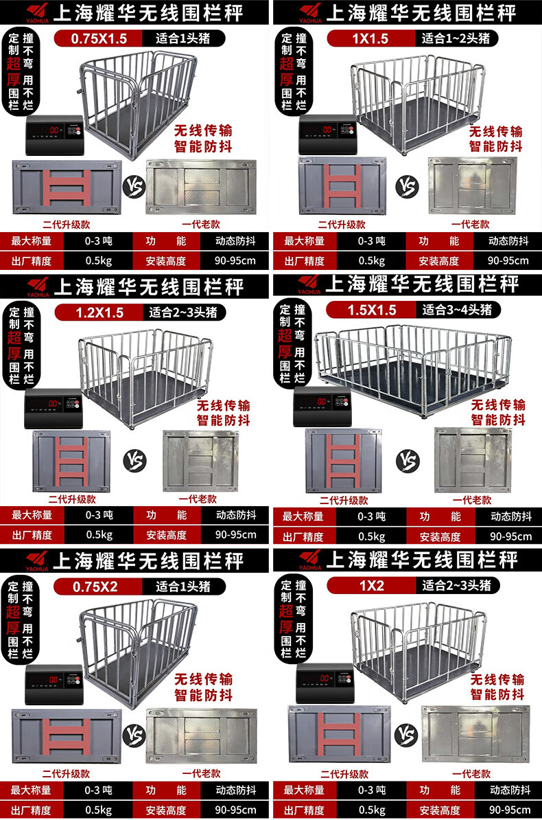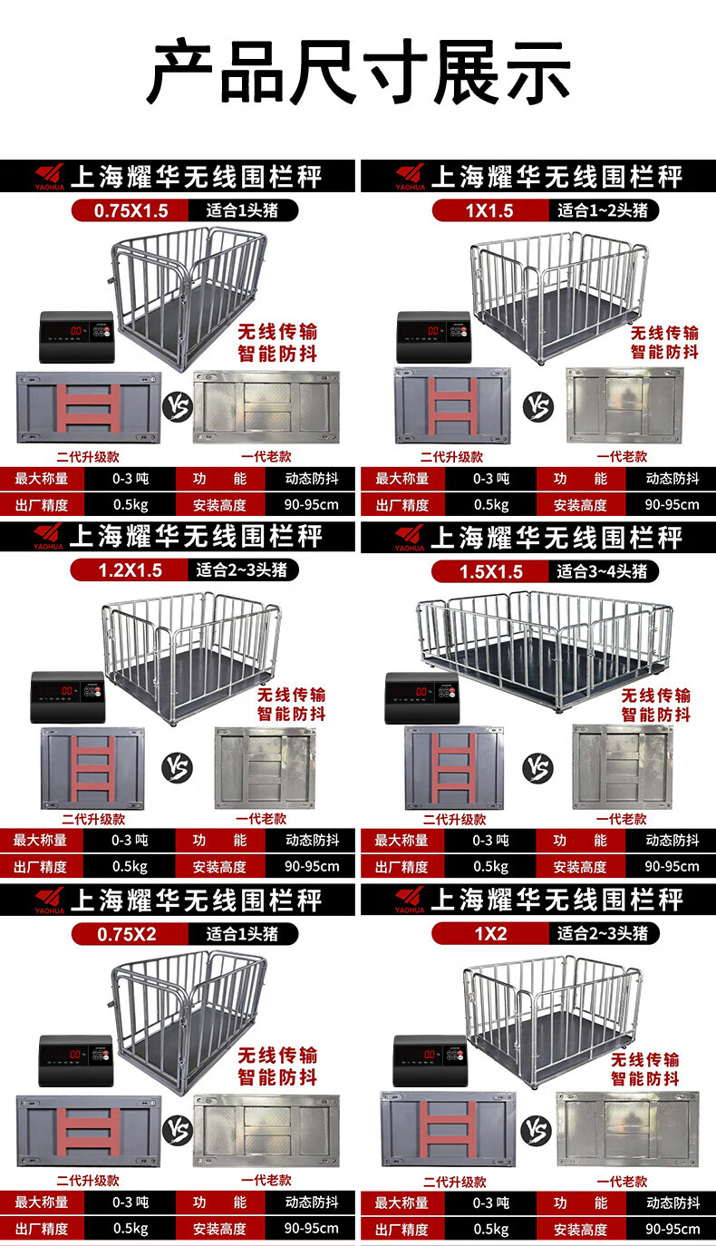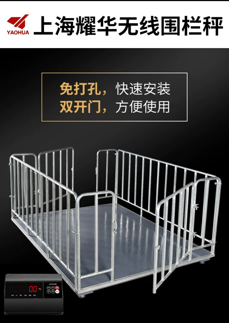 Yaohua (YAOHUA) Shanghai Yaohua floor scale wireless fenced livestock farm small 3-ton pig and cattle dedicated electronic scale high-precision thickened electronic scale wireless 0.75*1.5 meters 3T+fence