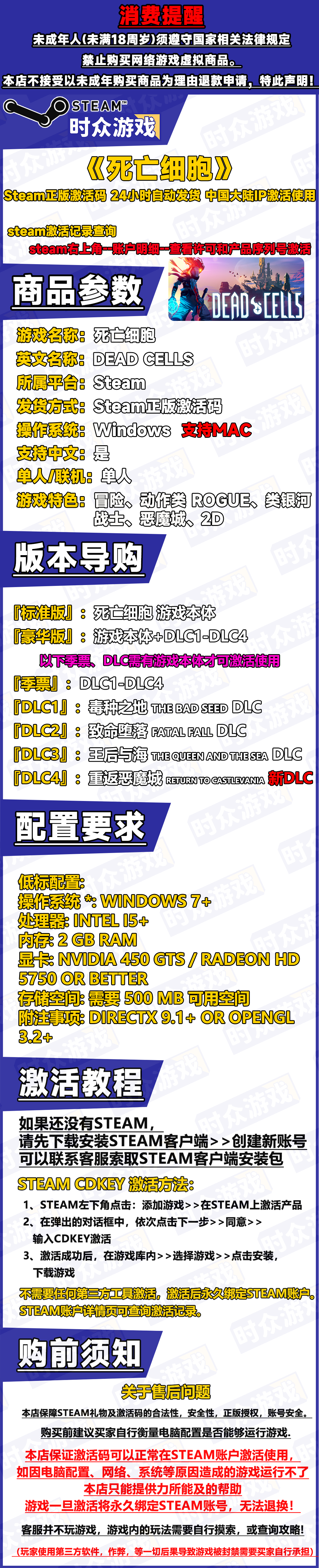 Steam genuine game Dead Cells PC version KEY activation code for Chinese version. All DLC available. Deluxe version of Dead Cells. Game base + DLC 1-DLC 4. Steam Chinese cdkey.