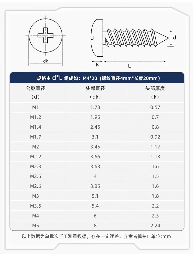 Fengji PA hard iron black zinc hair black cross pan head self-tapping small screw electronic round head screw M1M2M3M4mm M1*8-1000 pieces