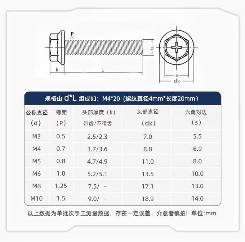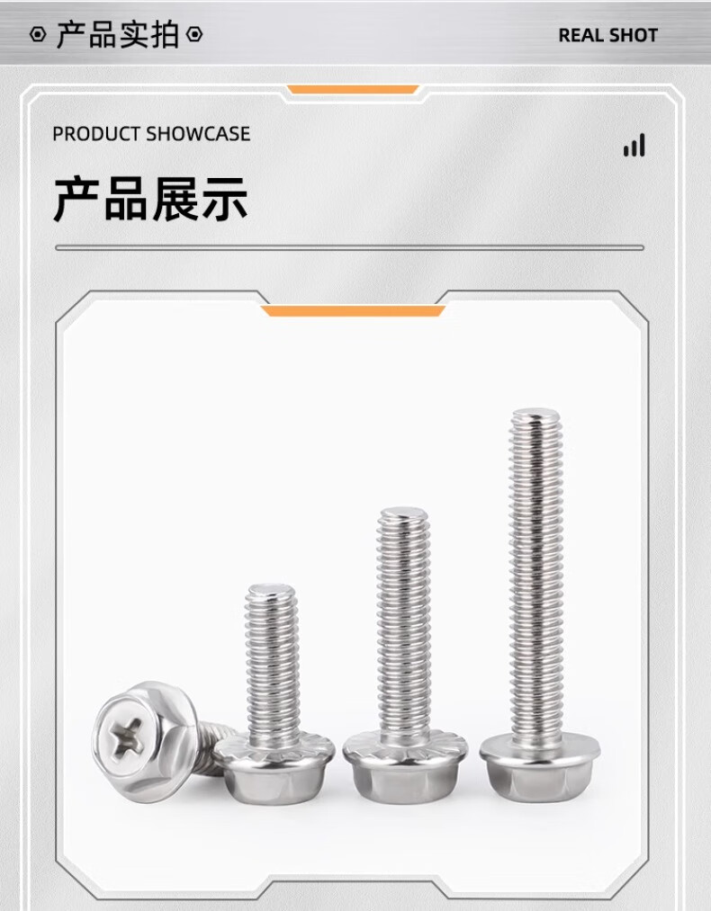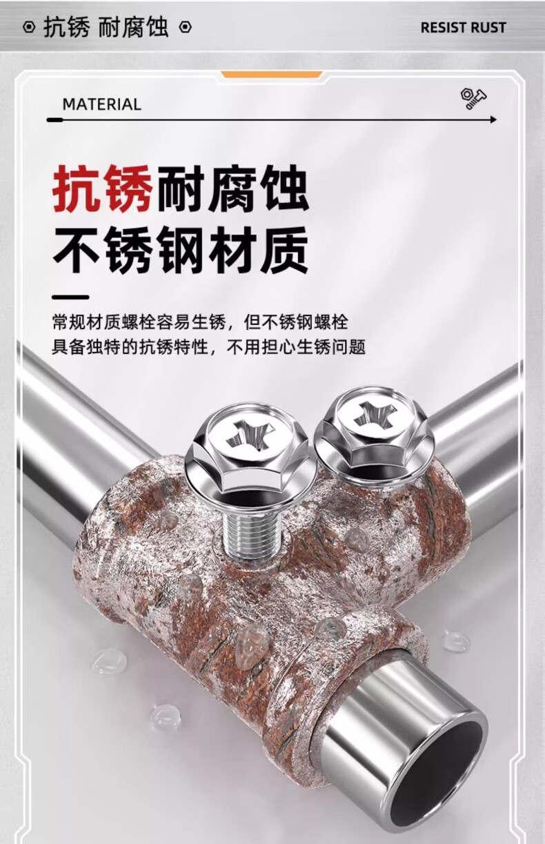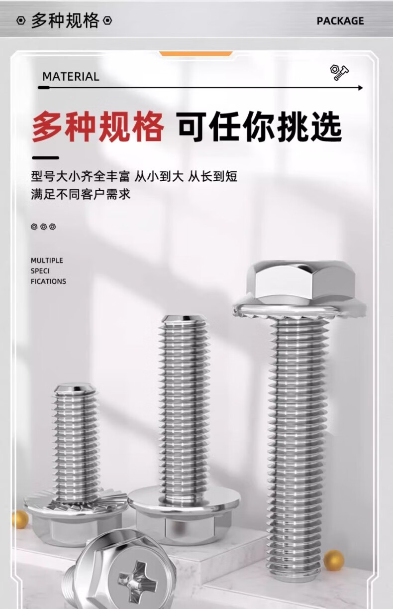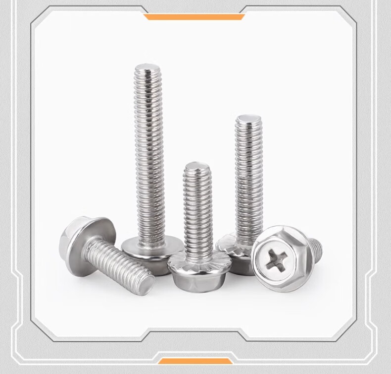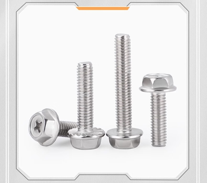 Fengji 201/304 stainless steel cross flange screw external hexagonal flange bolt anti-slip pad screw MM4M5M6 M5*35 10 pieces 304 plane