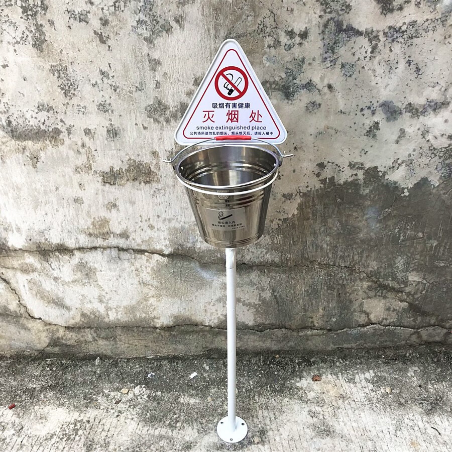 Outdoor vertical smoking area smoke extinguisher ashtray public places large smoke extinguisher column cigarette butt bucket trash can white triangular wall-mounted