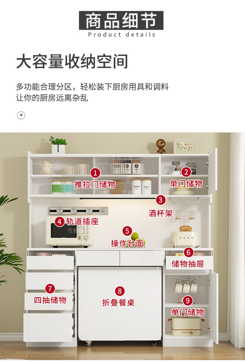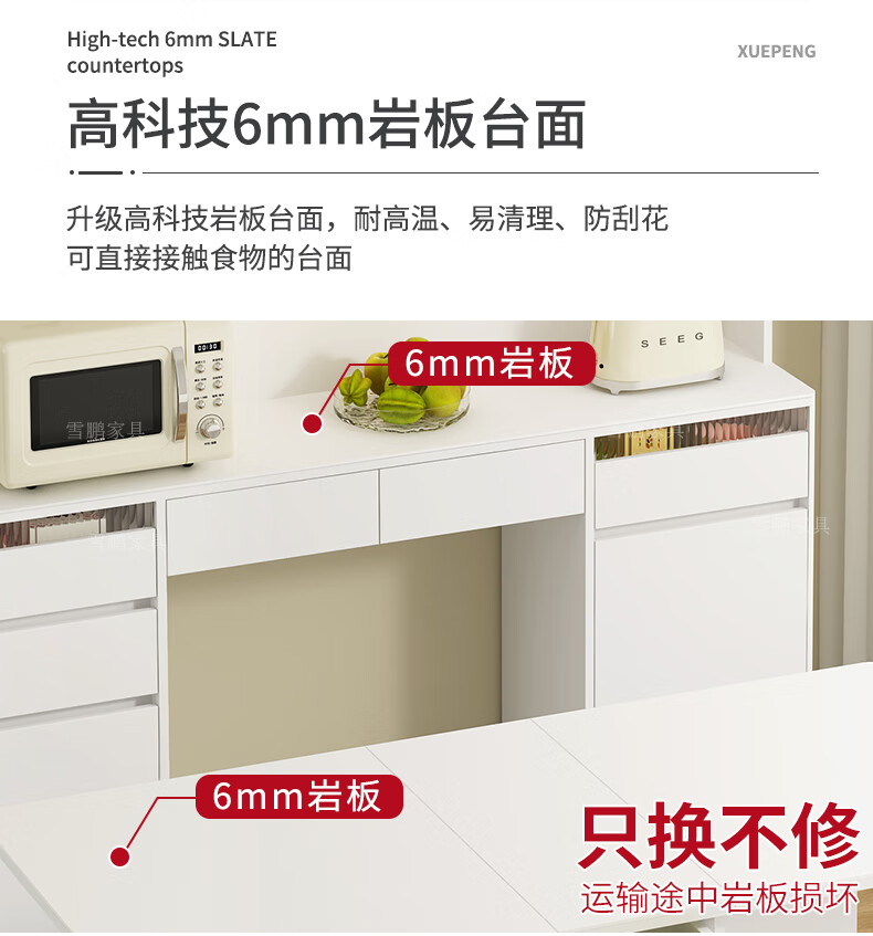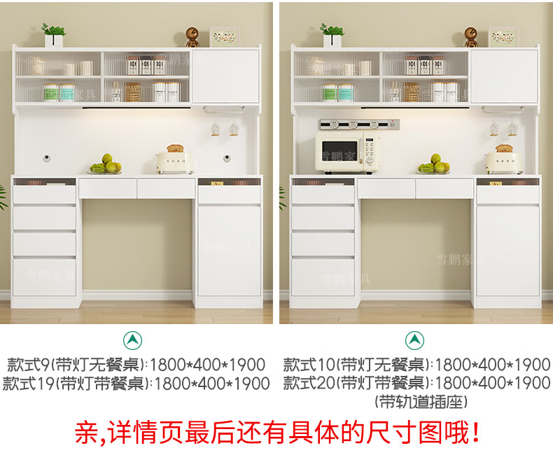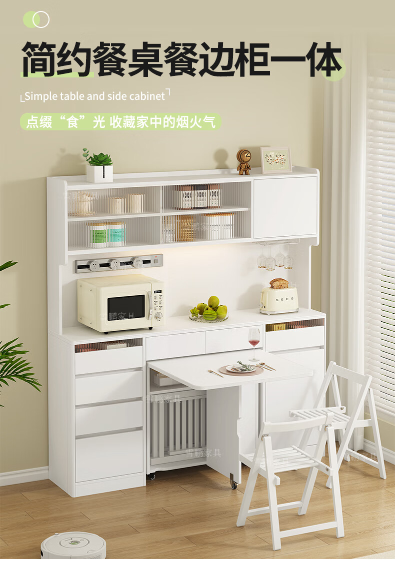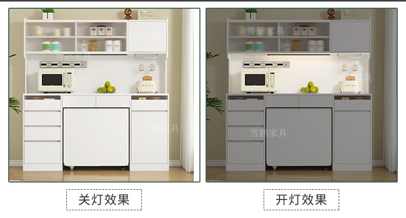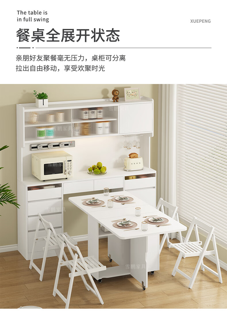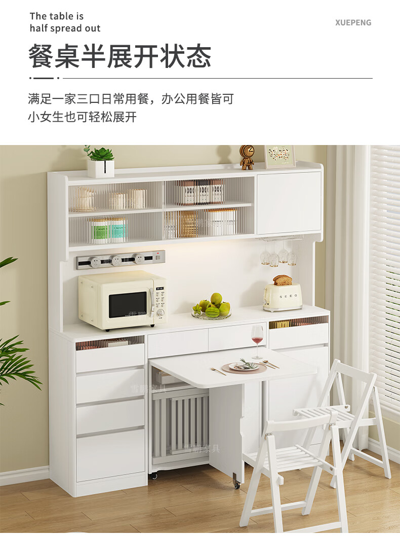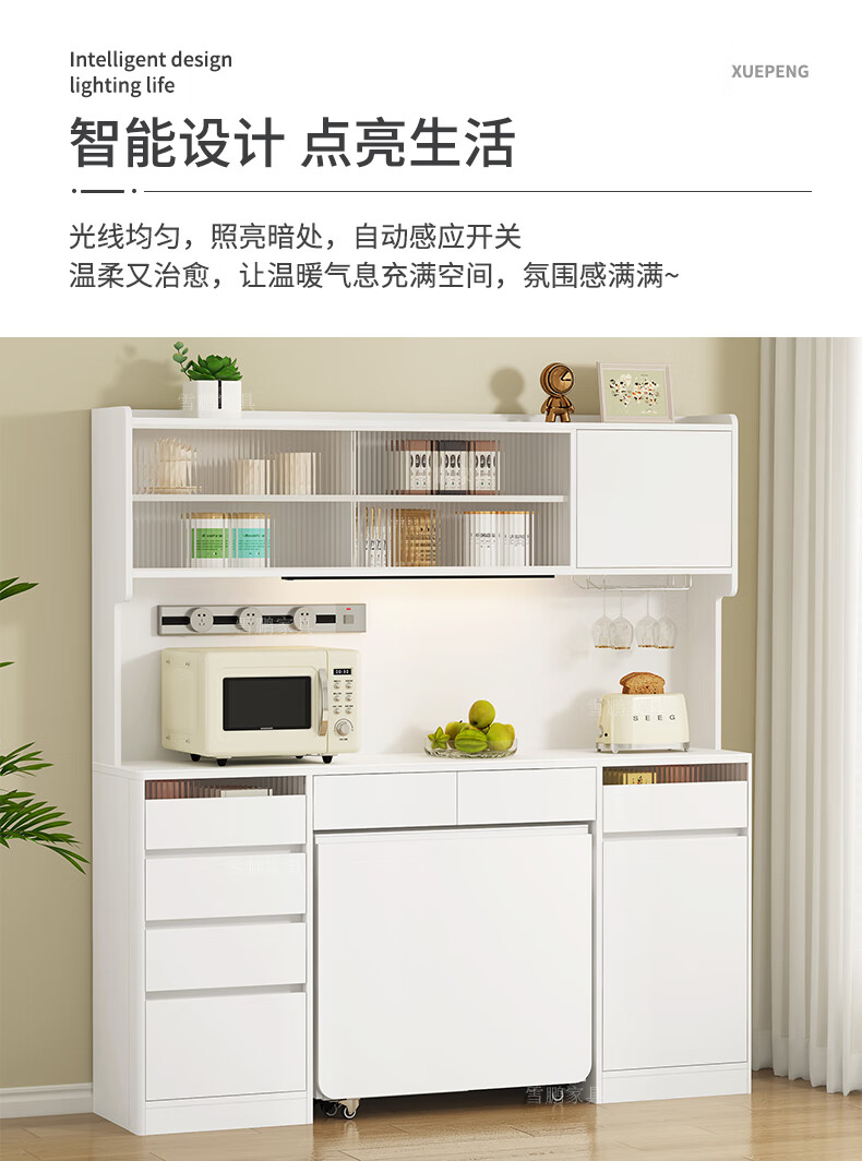 Xuepeng cream style slate sideboard folding dining table integrated wall kitchen high cabinet living room storage storage cabinet style 19 1800*400*1900 (with light)