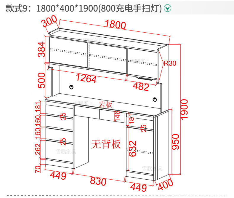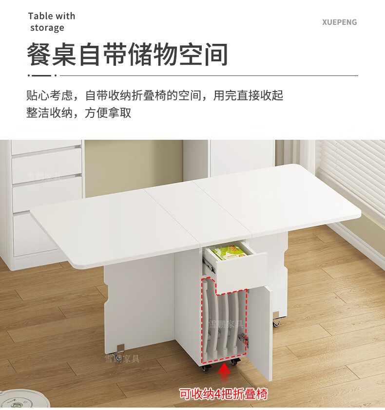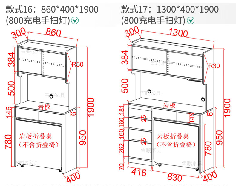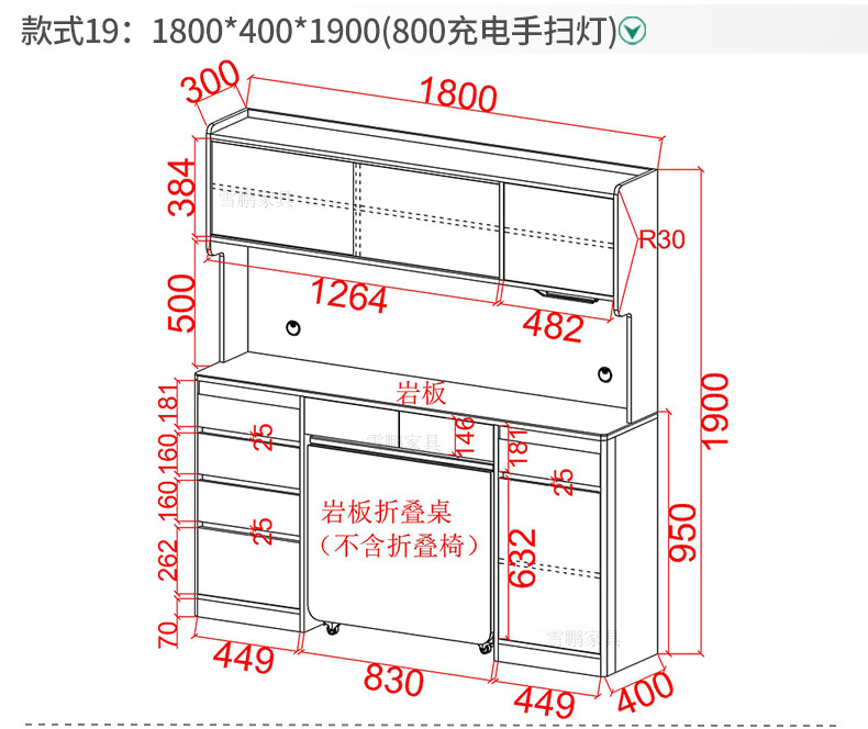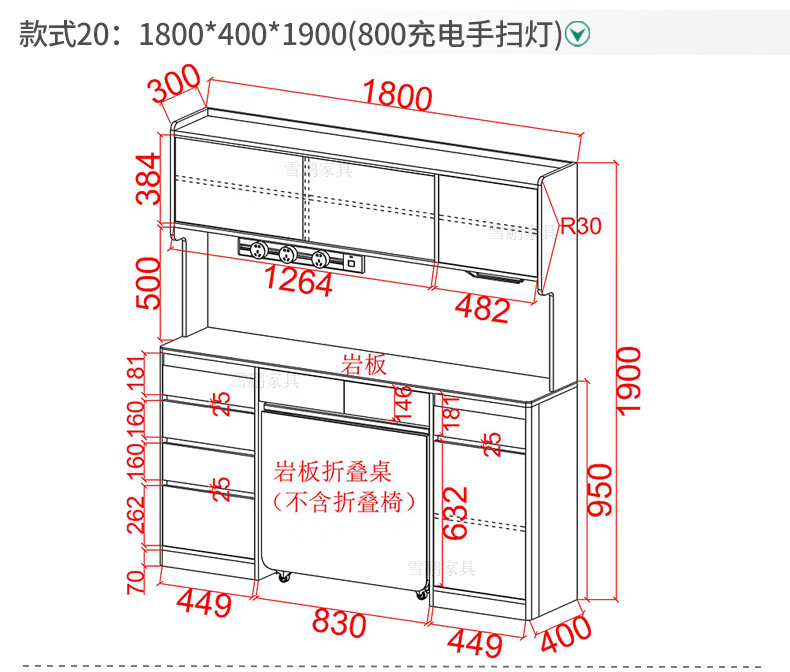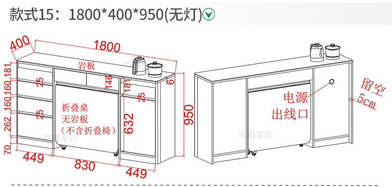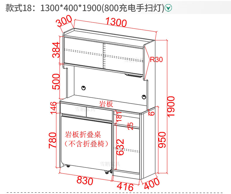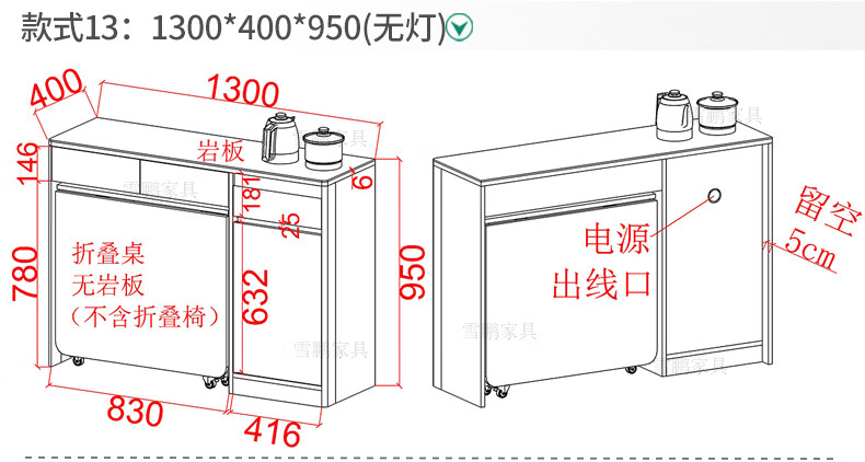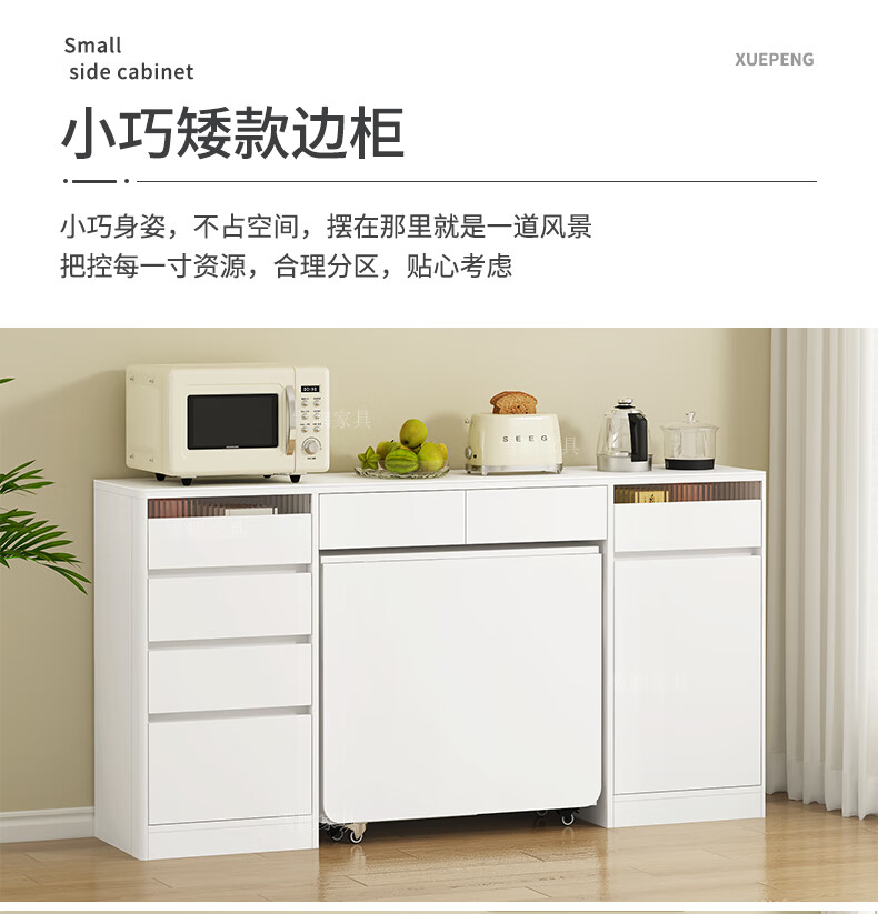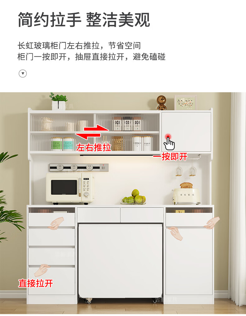 Xuepeng cream style slate sideboard folding dining table integrated wall kitchen high cabinet living room storage storage cabinet style 19 1800*400*1900 (with light)