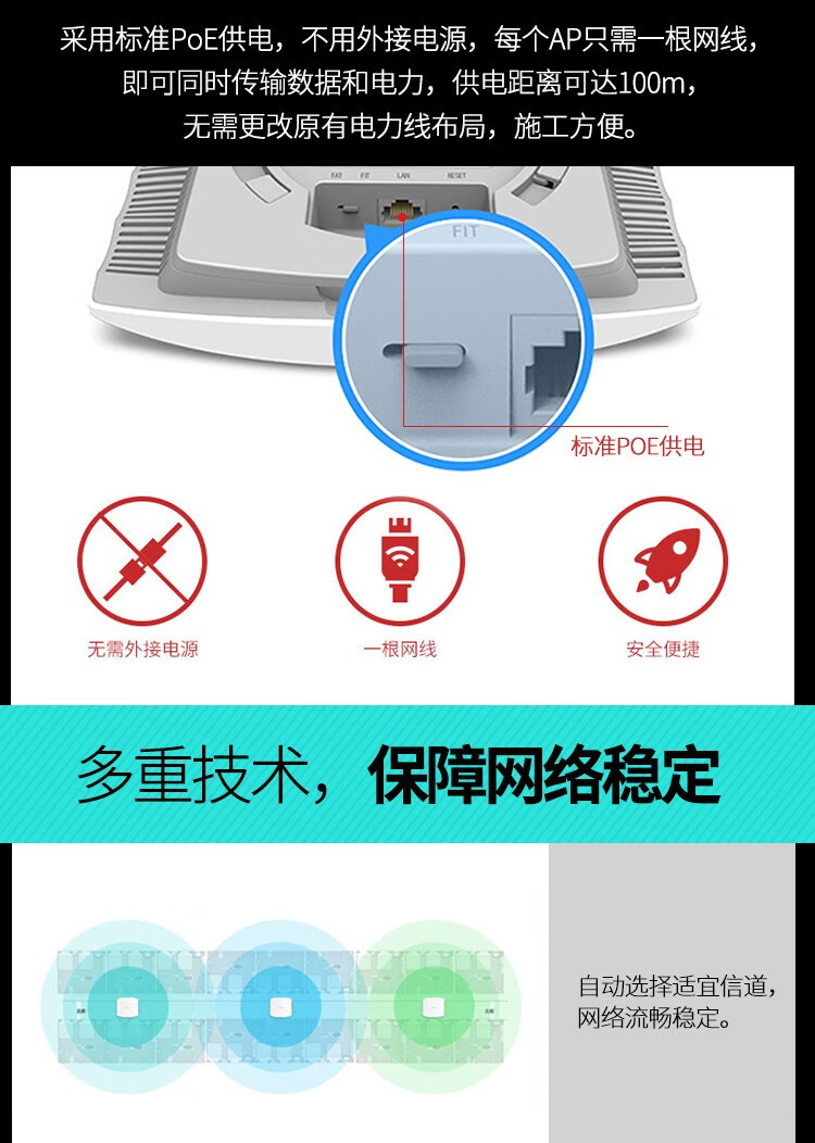 TP-LINK Gigabit Ceiling AP Seamless Roaming Villa Home Network Cable Powered WIFI Router 301C TL-XAP5407GC-POE/DC Easy Exhibition Edition