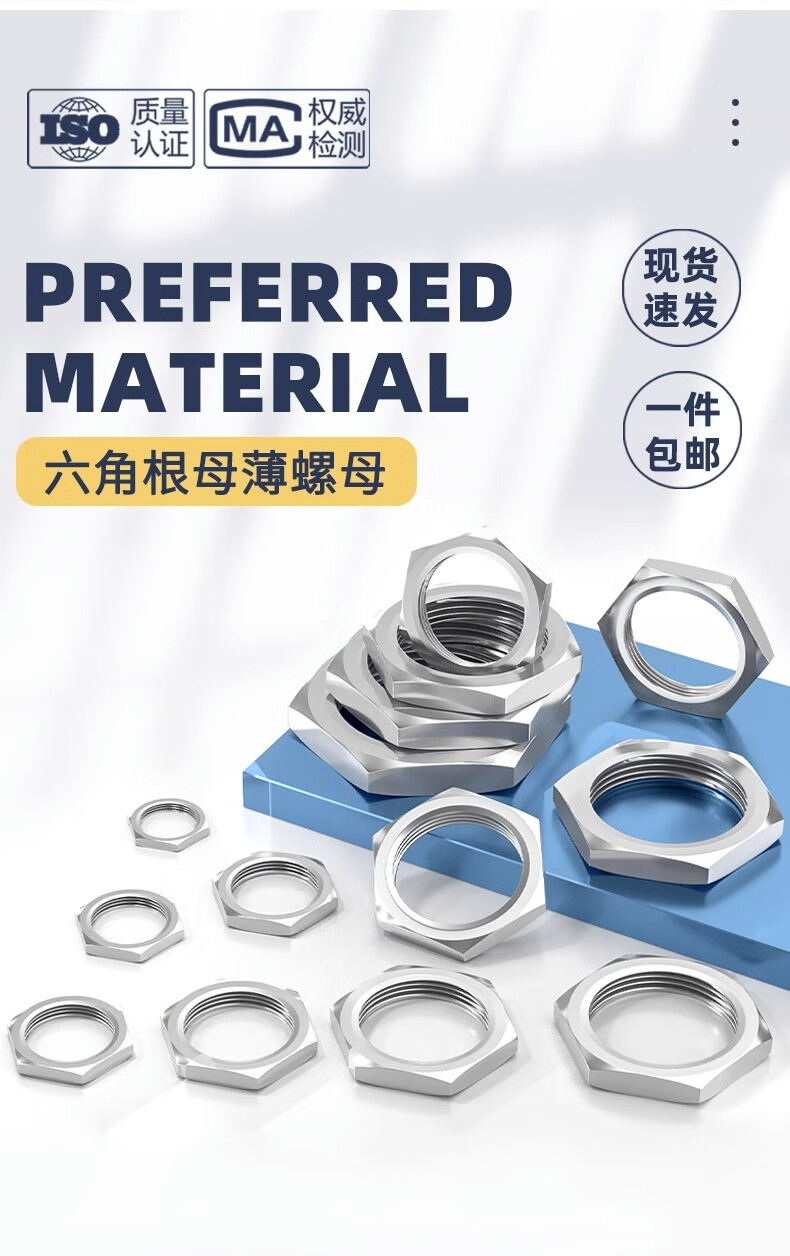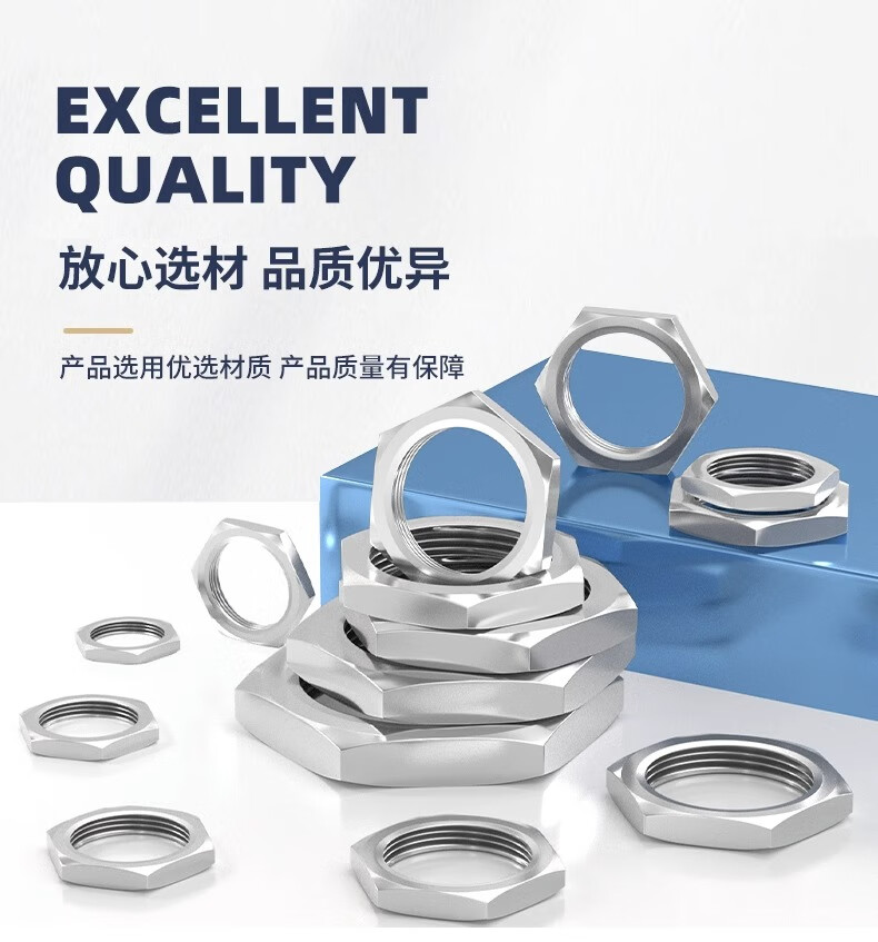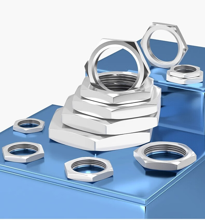 Fengji 304 stainless steel hexagonal thin nut root female water tank joint locking piece faucet lock and cap British pipe thread nut M15*1.5 (opposite side 19, thickness 4) - 2 pcs