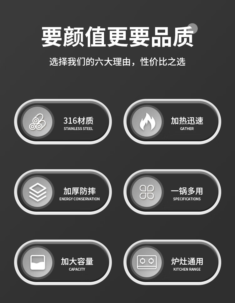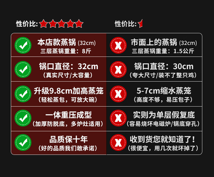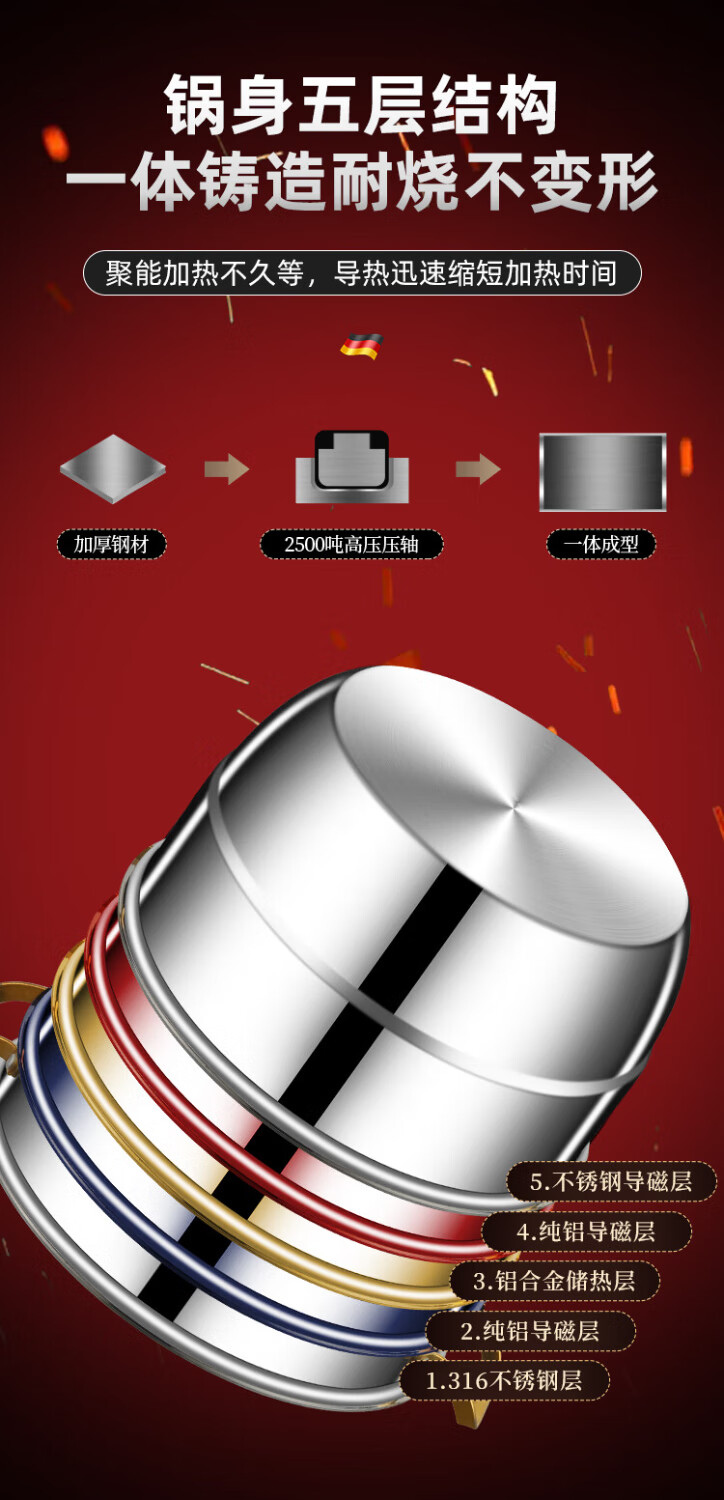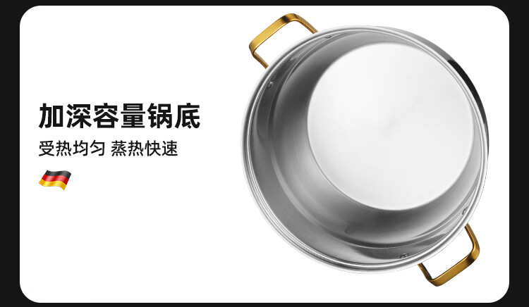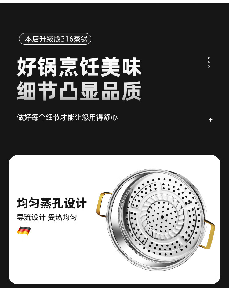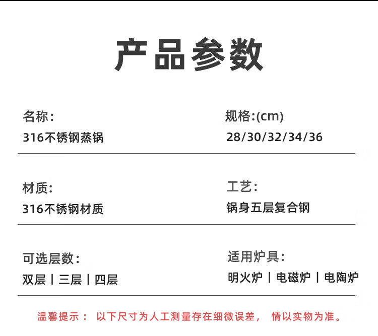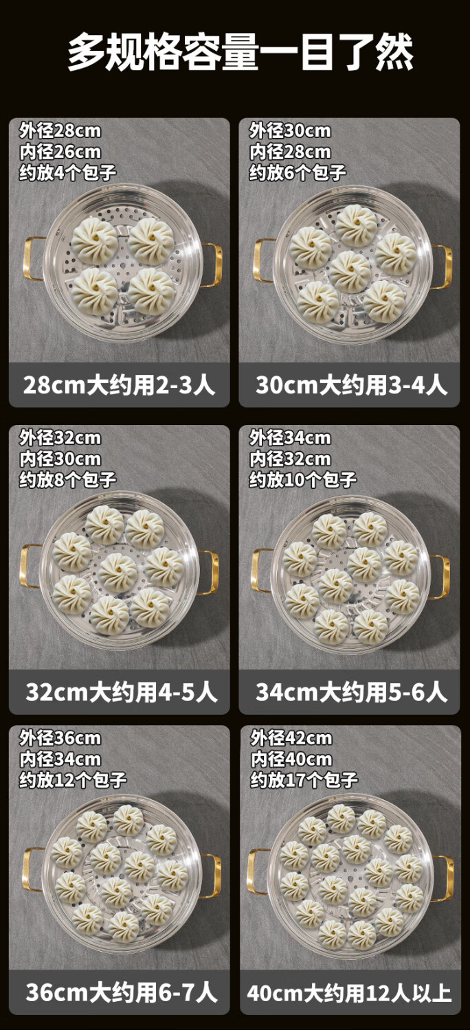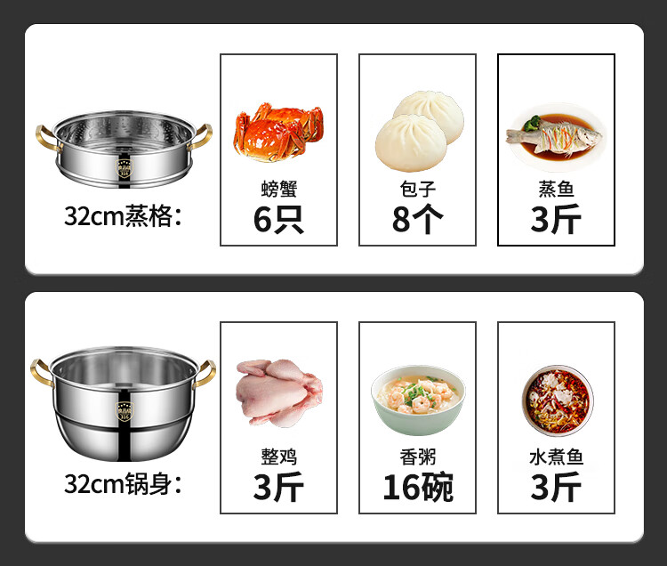 Chef's Extra Thick 316 Stainless Steel Steamer Heightened Household Large Capacity Multi-layer Double-layer Steamer Induction Cooker Gas Stove Universal Three-layer Steamer One-piece 8.1 catties 32cm