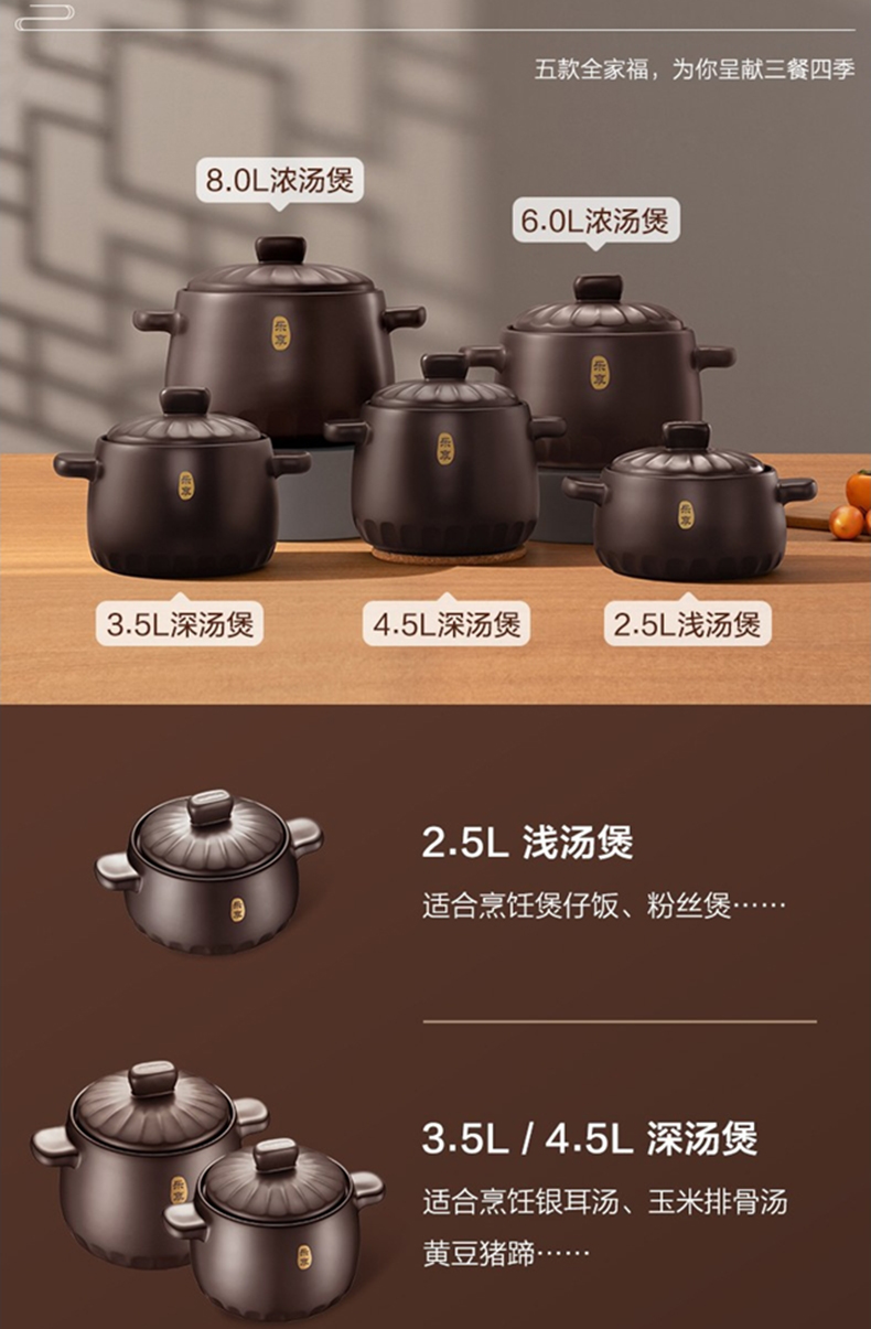 Supor clay pot ceramic soup pot new pottery health deep soup pot household stew clay pot rice stew pot gas special deep soup pot TB35A1- 3.5L
