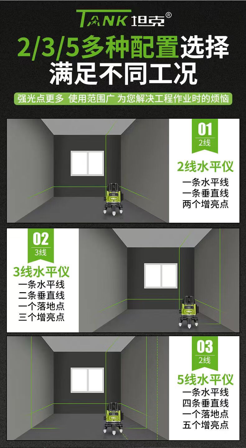 Tank (TANK) infrared level meter high-precision green light 2/3/5 line TK-20235 outdoor strong light level ruler line meter imported from Germany green light 2 line single electric