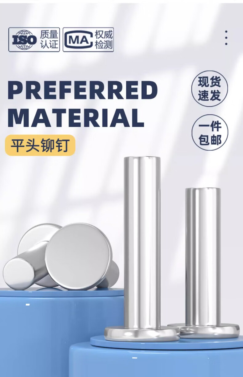 Fengji GB109 304 stainless steel solid flat head rivet percussion hand-made rivet M2M3M4M5M6M8-M20mm M3*24 20 pcs