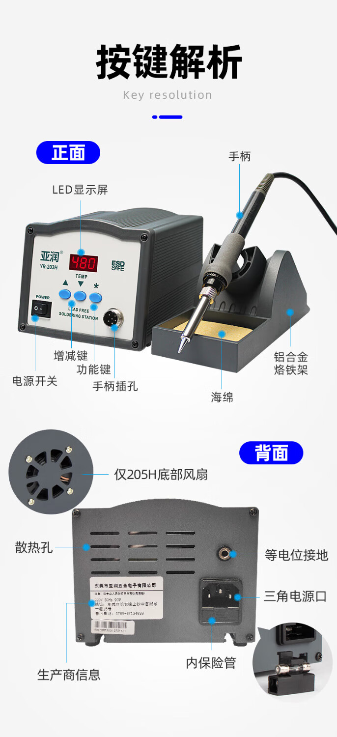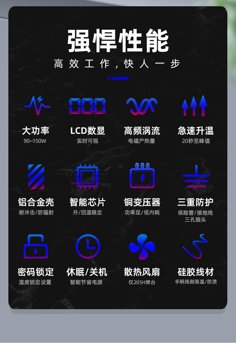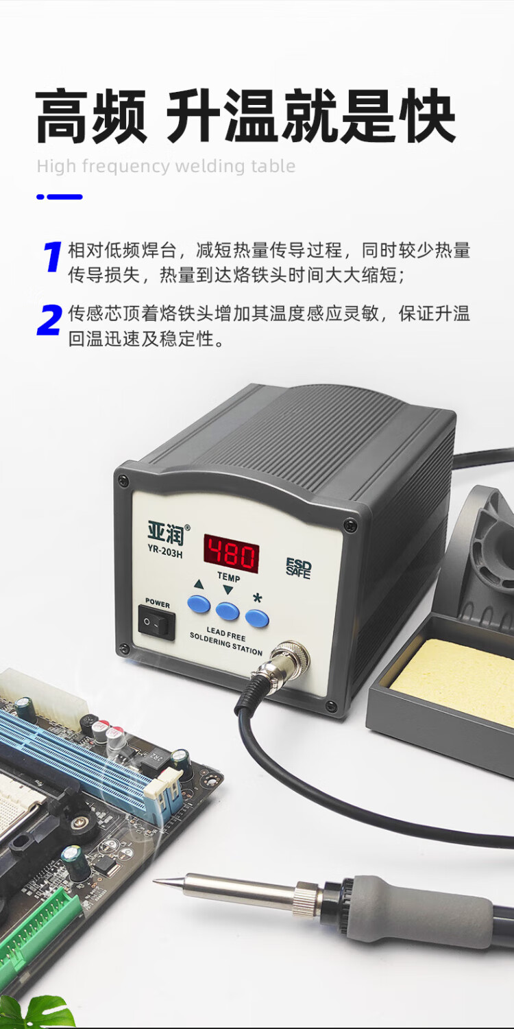Yarun Electric Soldering Iron 205 High Frequency Soldering Station High Power 203 Constant Temperature Luo Iron Industrial Grade Adjustable Temperature Eddy Current Soldering Station YR-203 90W